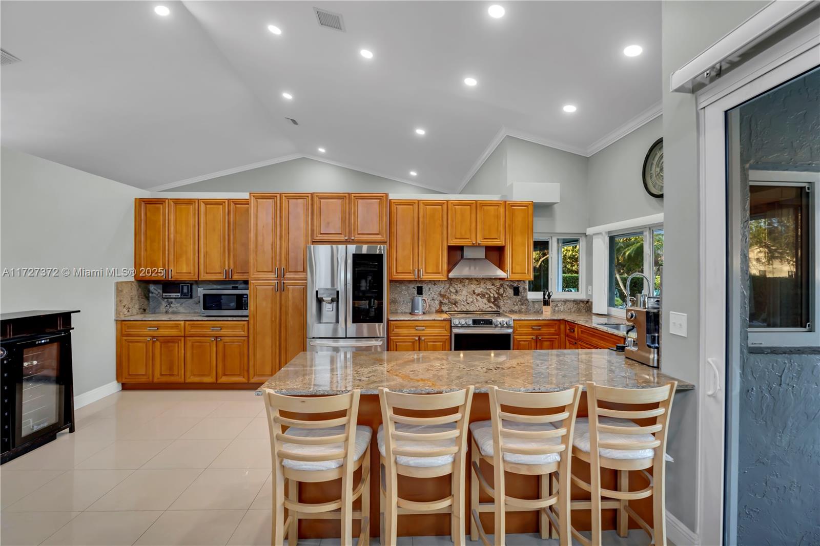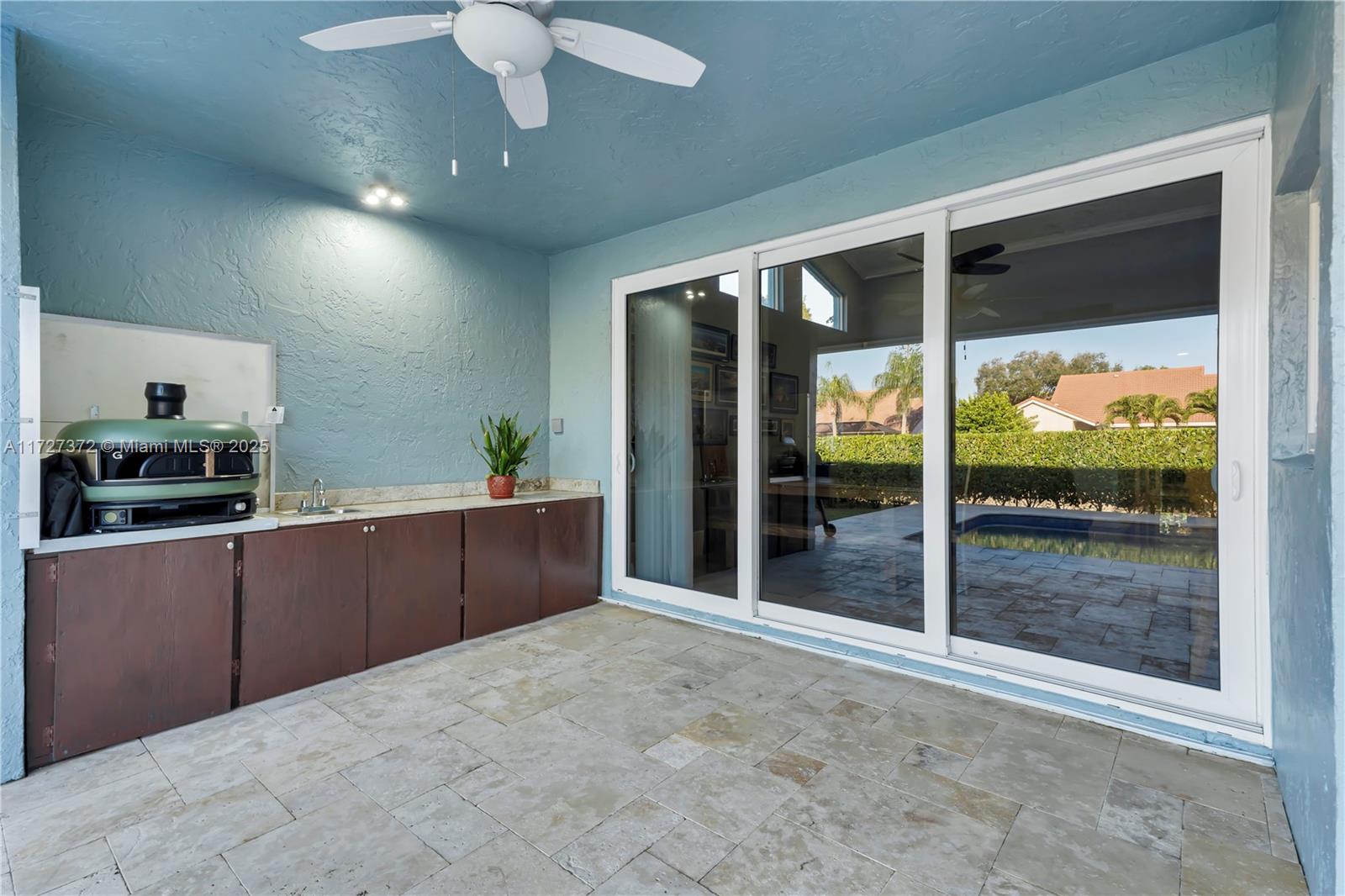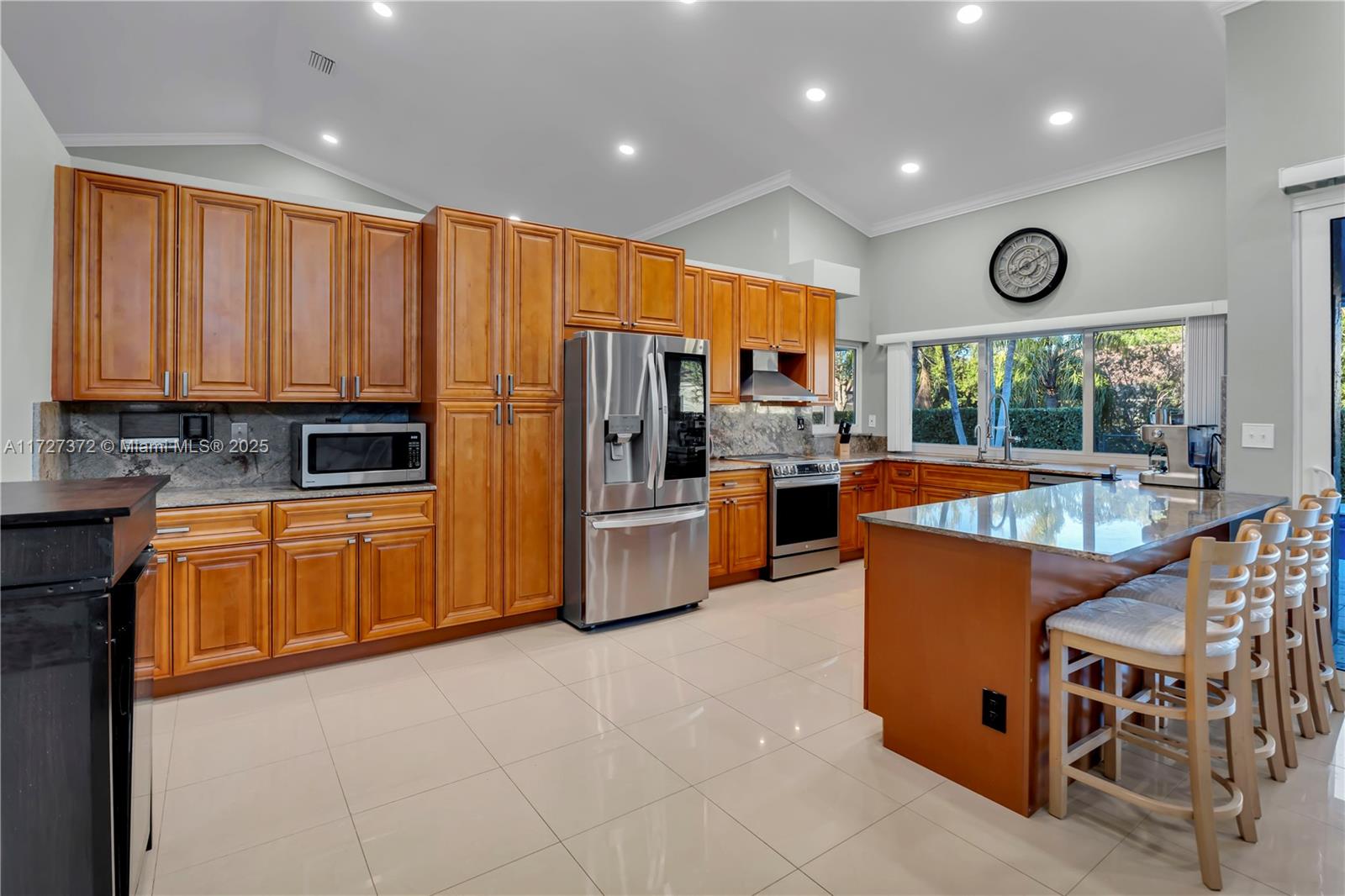 Stunning ranch-style 4bedroom 2.5-bath home with a 2-car garage and heated saltwater pool in the sought out community of Pine Ridge Coral Springs!The kitchen is complete with Granite countertops, SS appliances,lots of storage. Features include Vaulted ceilings,porcelain tile and luxury vinyl flooring,LED lighting,updated bathrooms, built-in closet systems and a circular pavered driveway.Hurricane impact windows & doors, PAID-OFF solar panels, EV charger, and tankless water heater add efficiency and value.Large backyard with grassy areas, covered sitting areas & travertine pavers Outdoor cooking area with sink and Pizza Oven.BRAND NEW Diamond Brite and BRAND NEW high-efficiency pump.Outdoor lighting. Freshly painted indoors and outdoors.Roof has blown-in insulation.Move-in ready!!