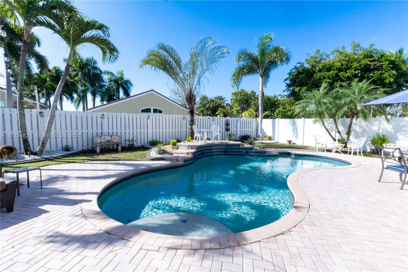 Available in the desired community of Keystone Lake, with 24 hour security. Lovely 3 bedroom, 2 updated bathroom, 2-car garage pool home. Updated kitchen with granite counters & SS electrical appliances. The main bedroom has a walk-in closet, ensuite bathroom with a double sink, garden tub and separate shower. Ceramic tile throughout and a freshly painted exterior. Fenced in landscaped back yard, Pool with waterfall and extended paver patio. An auto sprinkler system for back and front lawns. 2 car garage with attic access, and automatic garage door opener. Home has accordion shutters throughout. The home is conveniently located across the swale and visitor parking area and does not have front neighbors.Walking distance of the community playground with swings, slides and jungle gym.