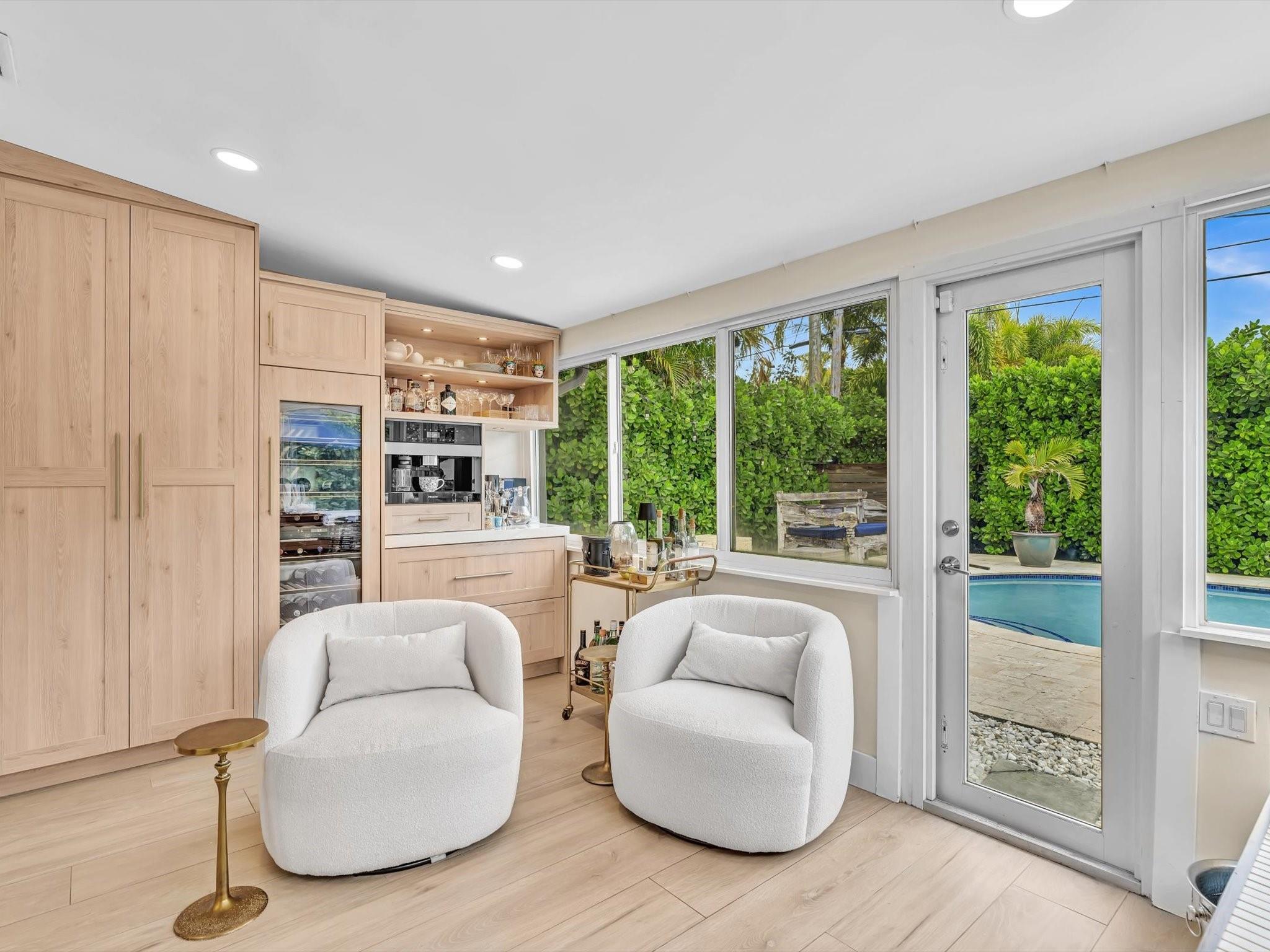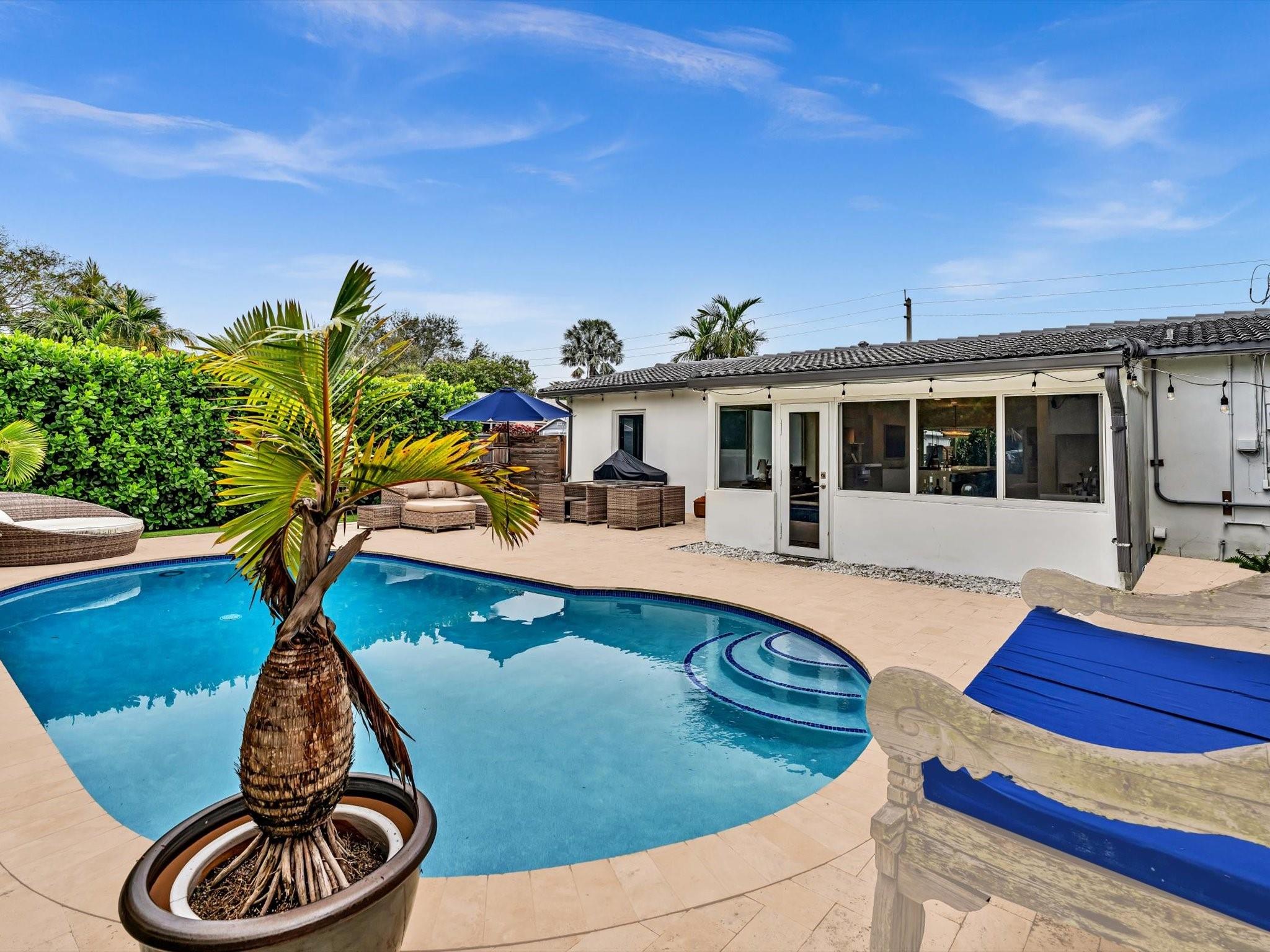 3 Bedroom 2 Bathroom home w/BEAUTIFUL MODERN TOUCHES & COZY VIBES, in the heart of Ft Lauderdale. The fully renovated kitchen boasts high-end Miele appliances, including a built-in refrigerator & gas stove, complimented by an oversized island ideal for culinary creations. With wood-look tile flooring, modern bathrooms, built in coffee machine, wine cooler, tankless instant water heater & hurricane impact windows and doors, this home offers both style and elegance. The backyard is designed for entertaining, featuring a newly finished pool and a heat pump w/chiller for year-round enjoyment. The front yard is professionally landscaped w/lighting and new pavers in the driveway. Located just a short walk from shops, restaurants, and grocery stores, this home provides both convenience and charm.
