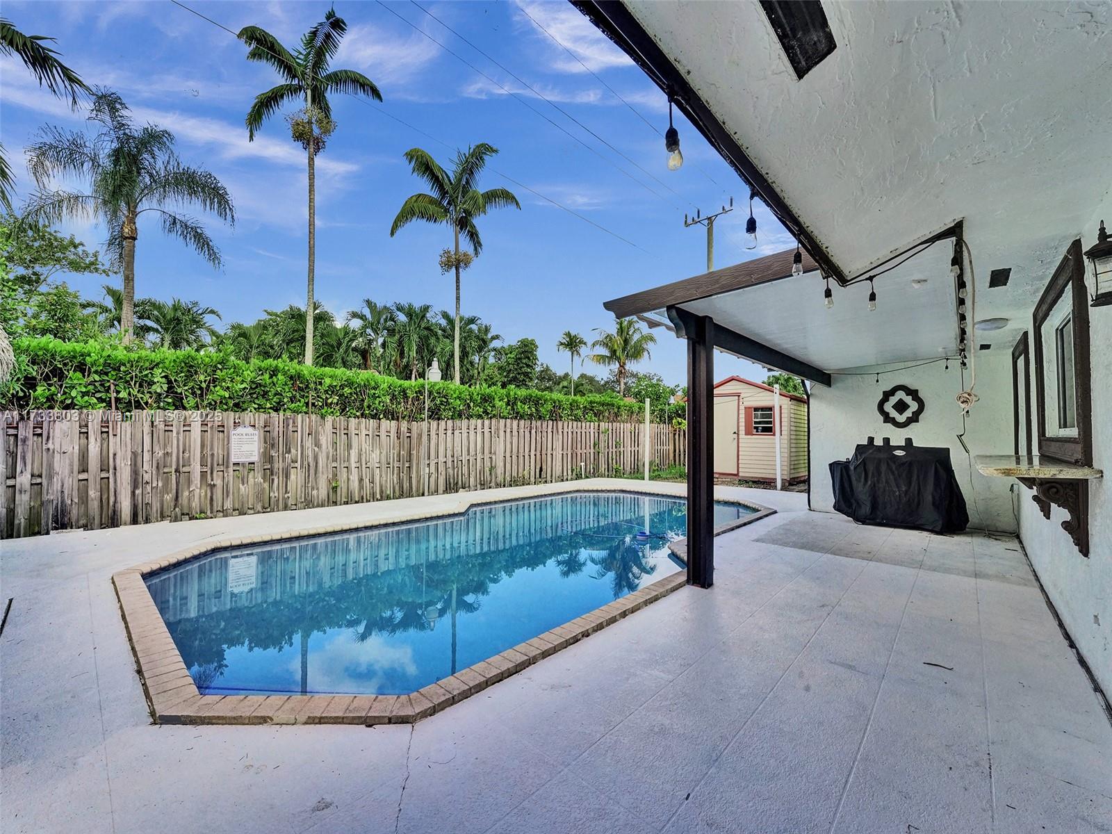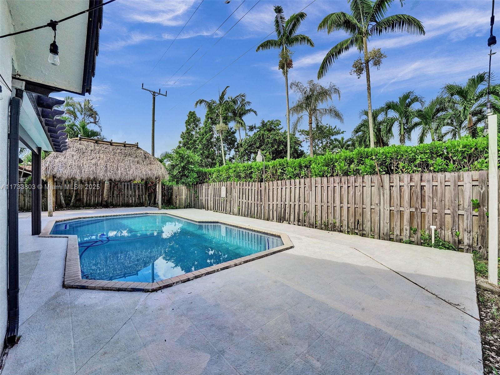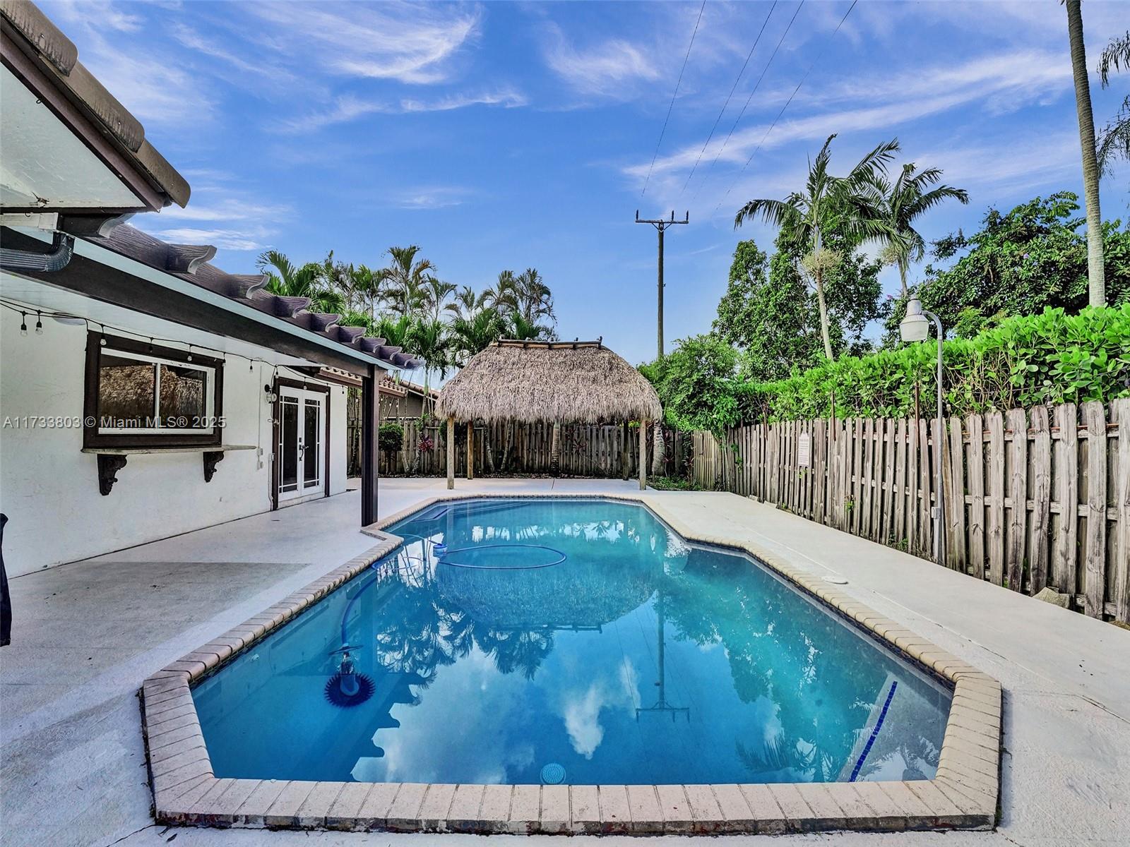 Welcome to this charming 4-bedroom, 2-bathroom POOL home in Cooper City. The home features a modernized kitchen with sleek white shaker cabinets, bright countertops and newer stainless steel appliances. The yard boasts a refreshing pool and tiki hut, perfect for relaxing or entertaining. The *tile roof, installed in 2017*, and hurricane panels provide peace of mind and added protection. The garage has been converted to add a 4th bedroom and there is a shed in the yard for additional storage. Recent updates include a remodeled laundry room with newer washer and dryer, adding convenience to your daily routine. This home offers a wonderful living experience with both functional and aesthetic upgrades. 1,786 UNDER AIR. A-Rated school district. Bonus....NO HOA!!
