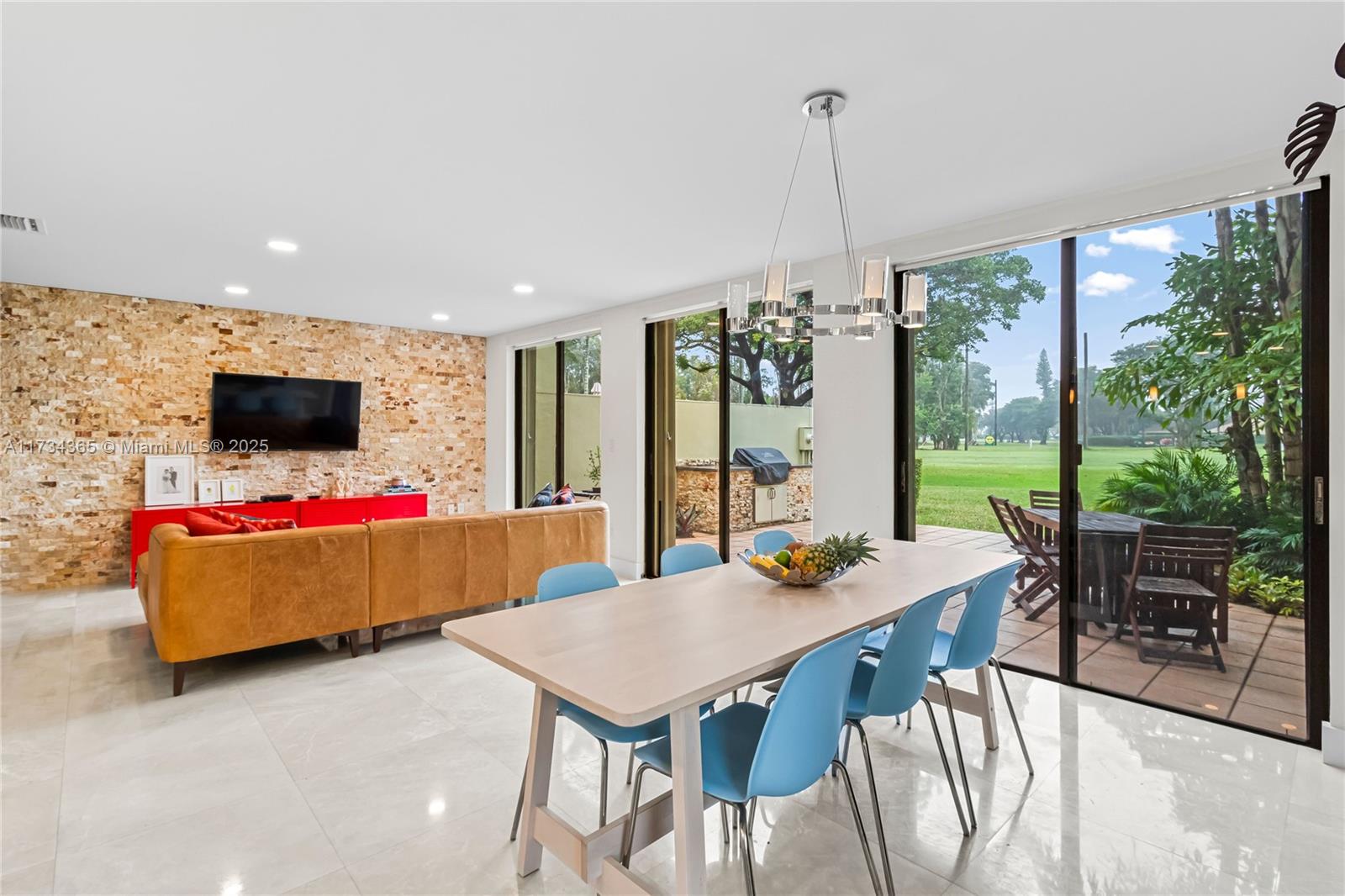 Beautiful, renovated, corner townhouse with 3 beds and 2 1/2 baths located in the desired Costa del Sol Doral. Large kitchen with quartz counter and stainless appliances. Open and spacious living and dining room with electric blinds and view to patio and golf course. Marble on first floor and laminate on second. Wood stairs. Modern bathrooms. Blackout in all bedrooms. Custom closets. Paved patio with custom-built barbecue area. Designer landscaping. Tons of light in all rooms and views to golf course/garden. Accordion Shutters. Tankless water heater and new water purifier. Plenty of parking (garage, front, and side for guests). Electric car charger. Gated community, security, golf course, clubhouse. Closed to MIA airport, A schools, Publix, Whole Foods, 826,Turnpike, City Place, and more.