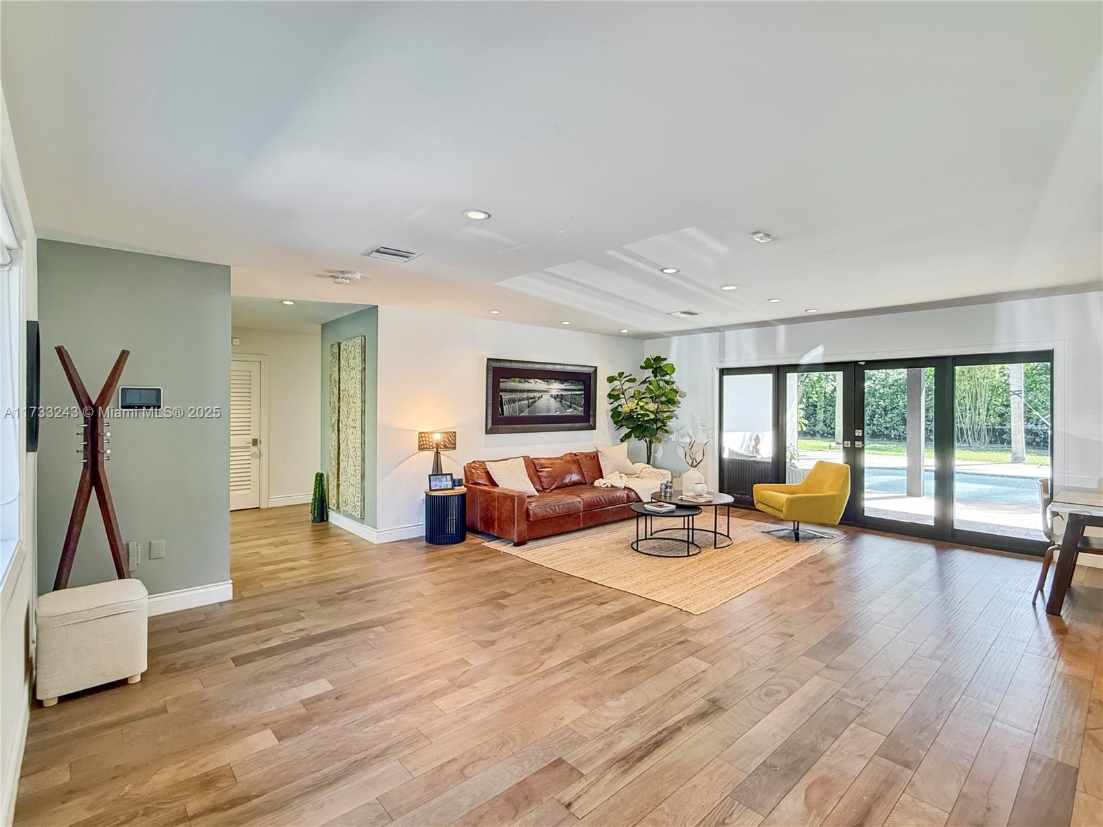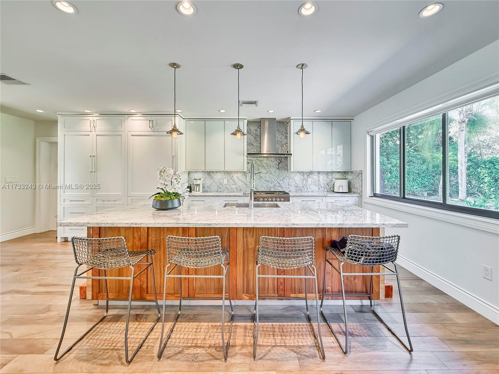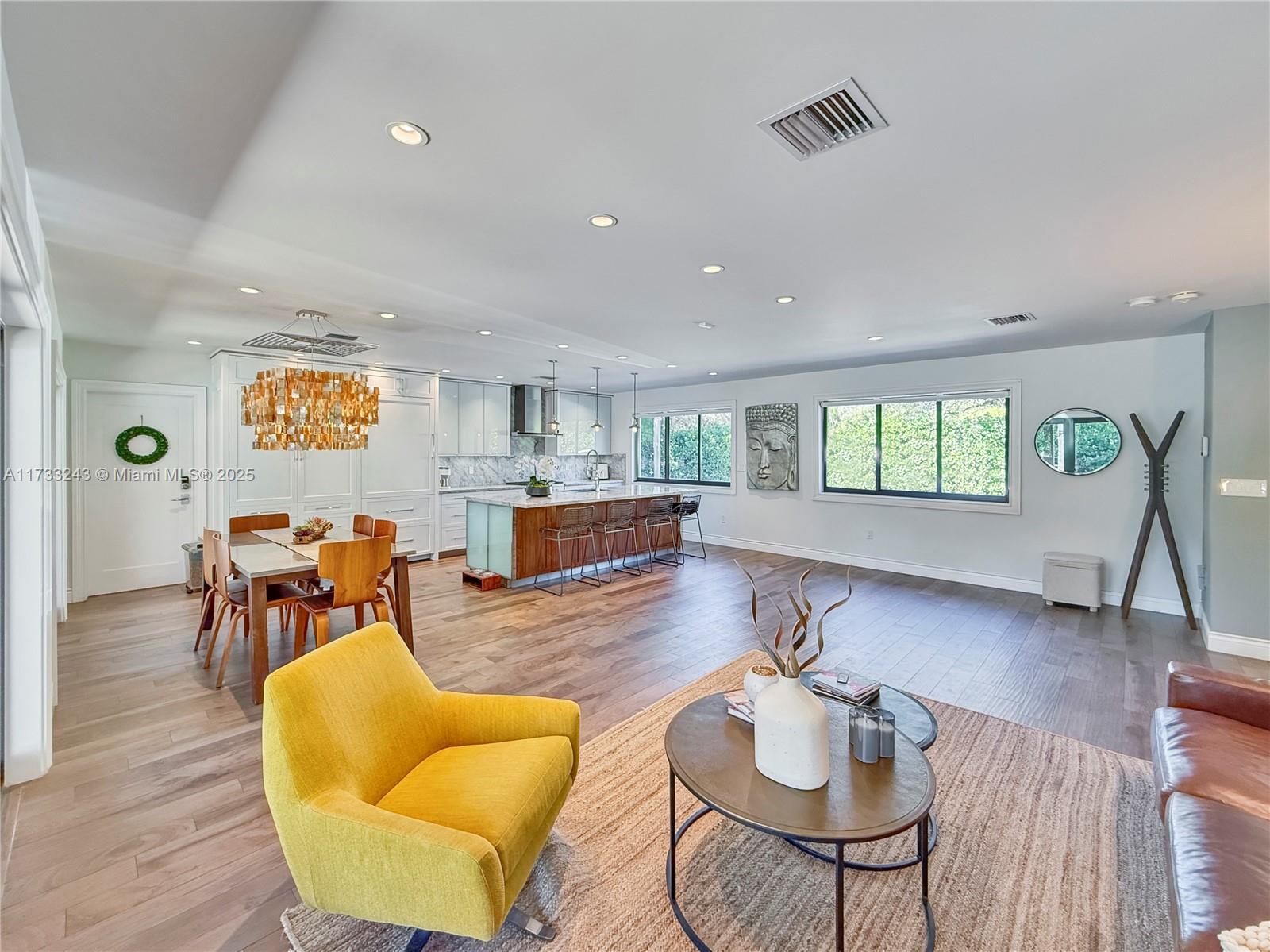 Completely rebuilt in 2017, this stunning 3-bedroom, 3-bathroom home in Pinecrest showcases exceptional design and luxurious finishes. Italian porcelain floors, custom wood detailing, and high-end craftsmanship are featured throughout. The chef’s kitchen is a showstopper with commercial-grade appliances, a 9-foot walnut island, custom cabinetry, and Venatino countertops. The open floor plan seamlessly flows to private outdoor areas with a fire pit, fruit trees, and a BBQ zone. Updates include new plumbing, electrical, insulation, a metal roof, and pool with equipment. The exterior is finished with Resysta siding, offering durability and resistance to rain, ensuring long-term beauty and low maintenance.