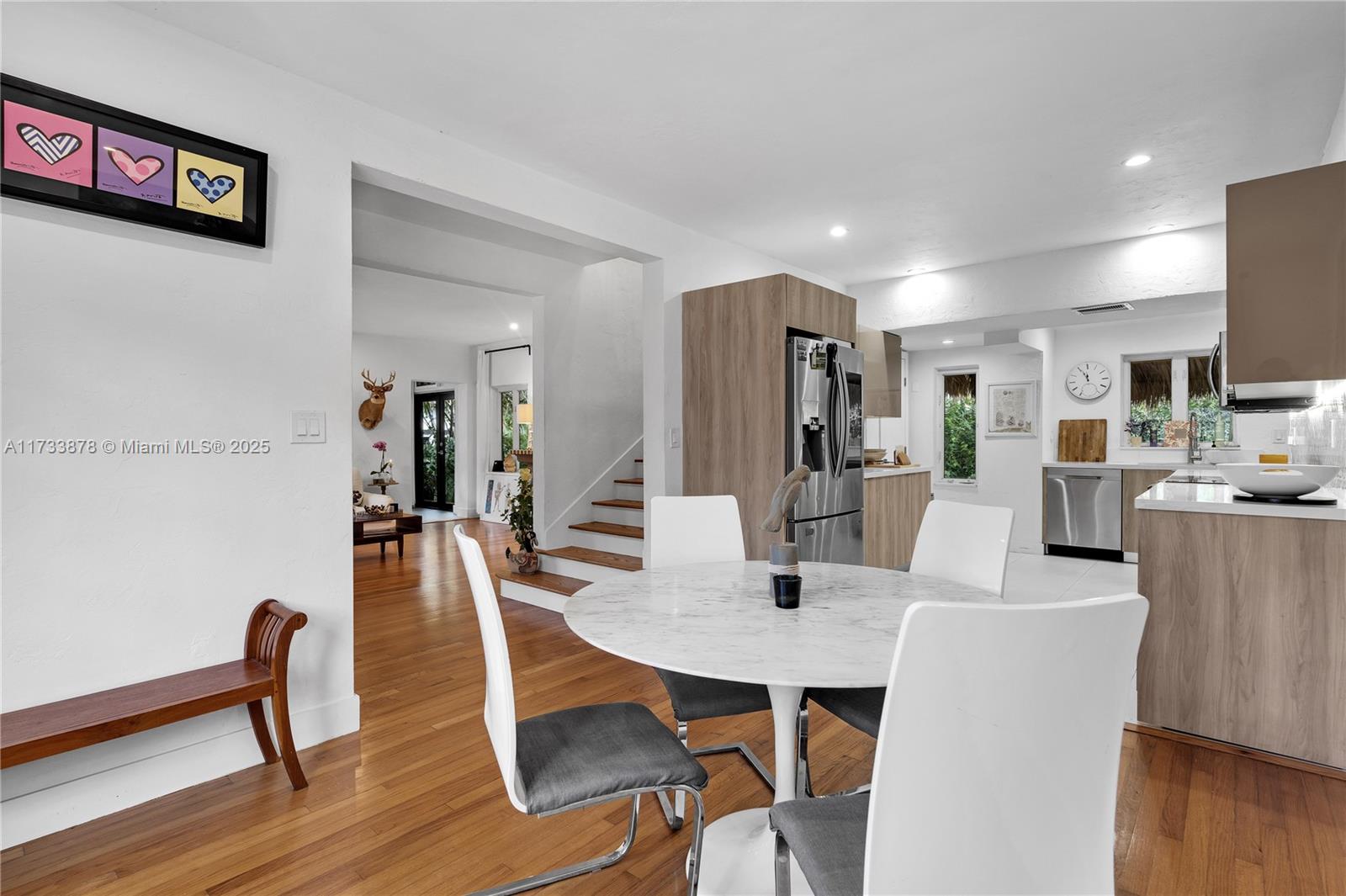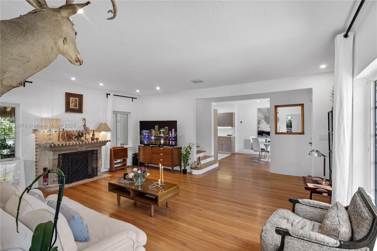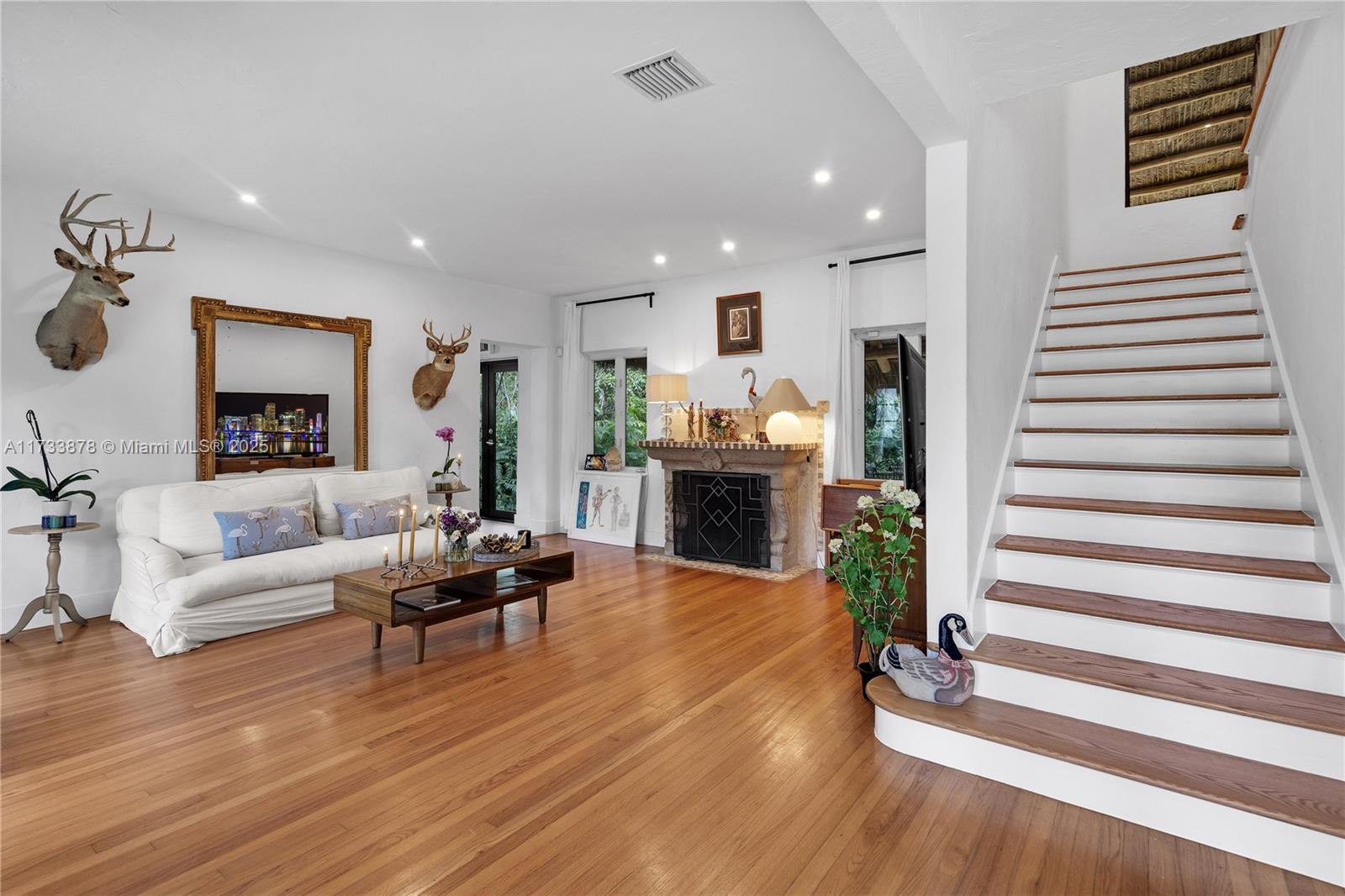 Welcome to this charming European style cosy home located in the heart of Morning Side Gem. This historical home with its wood floors, fire place and Open-kitchen is Ideal for a family looking for 3 bedrooms on the same floor. This Elevated 2 floors home , in a no flood zone, offers various rooms of multiple functions with a backyard perfect for entertaining and room for a pool.( with possible building addition of almost 2,000 SF). The Lushly landscaped oversized 8,250 SF lot with mature specimen trees both in front and in the back of the house. Plenty of parking and located in the best street (the largest and no traffic street ) of Morning Side , the Guard gated community of 40+ Acre park with Tennis , walking trails ,playgrounds, basketball courts ,sports fields, Boat ramps & more.