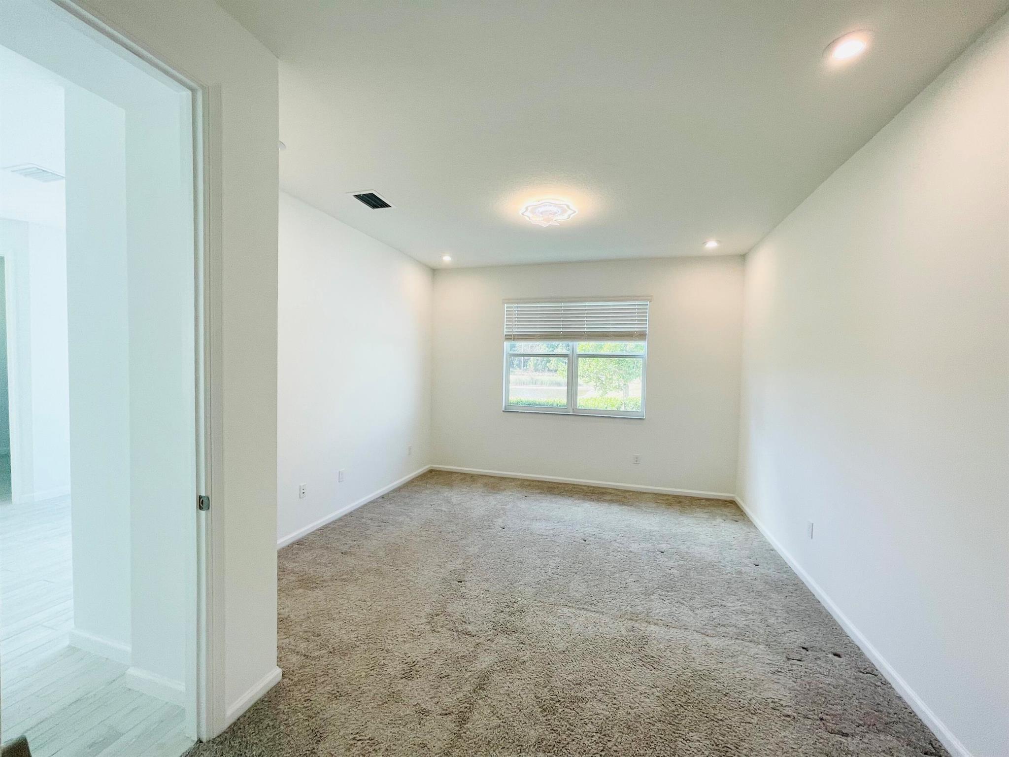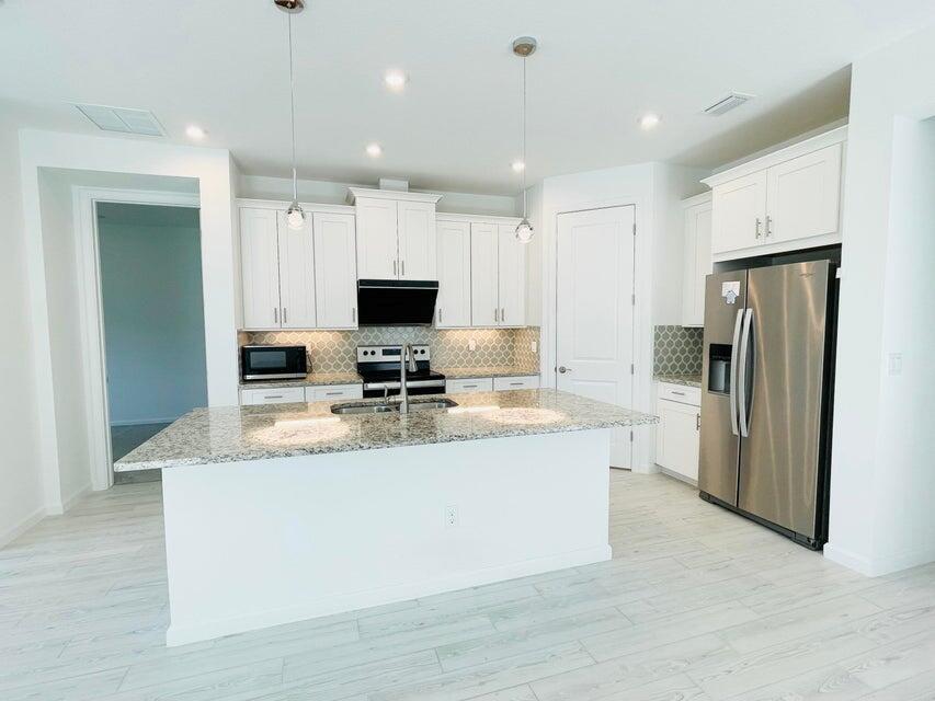 Seller motivated! This stunning 3-bed + den, 2-bath home is perfectly situated near Palm Beach Airport, hospitals, shops, restaurants, and major highways for ultimate convenience. Set on a premium corner lot with a serene water-view pond, this home boasts upgrades throughout. The gourmet kitchen is a chef's dream, featuring upgraded cabinetry with crown molding, a stylish backsplash, upgraded counters, and a range hood vented outdoors. The open-concept layout is enhanced by upgraded tile flooring.Additional highlights include: Drop zone with custom cabinetry; Upgraded laundry room with cabinets and a folding counter;A spacious 2-car garage prepped with drainage for a future utility sink; Pet-friendly community with no restrictions; Located in a gated community for added secur