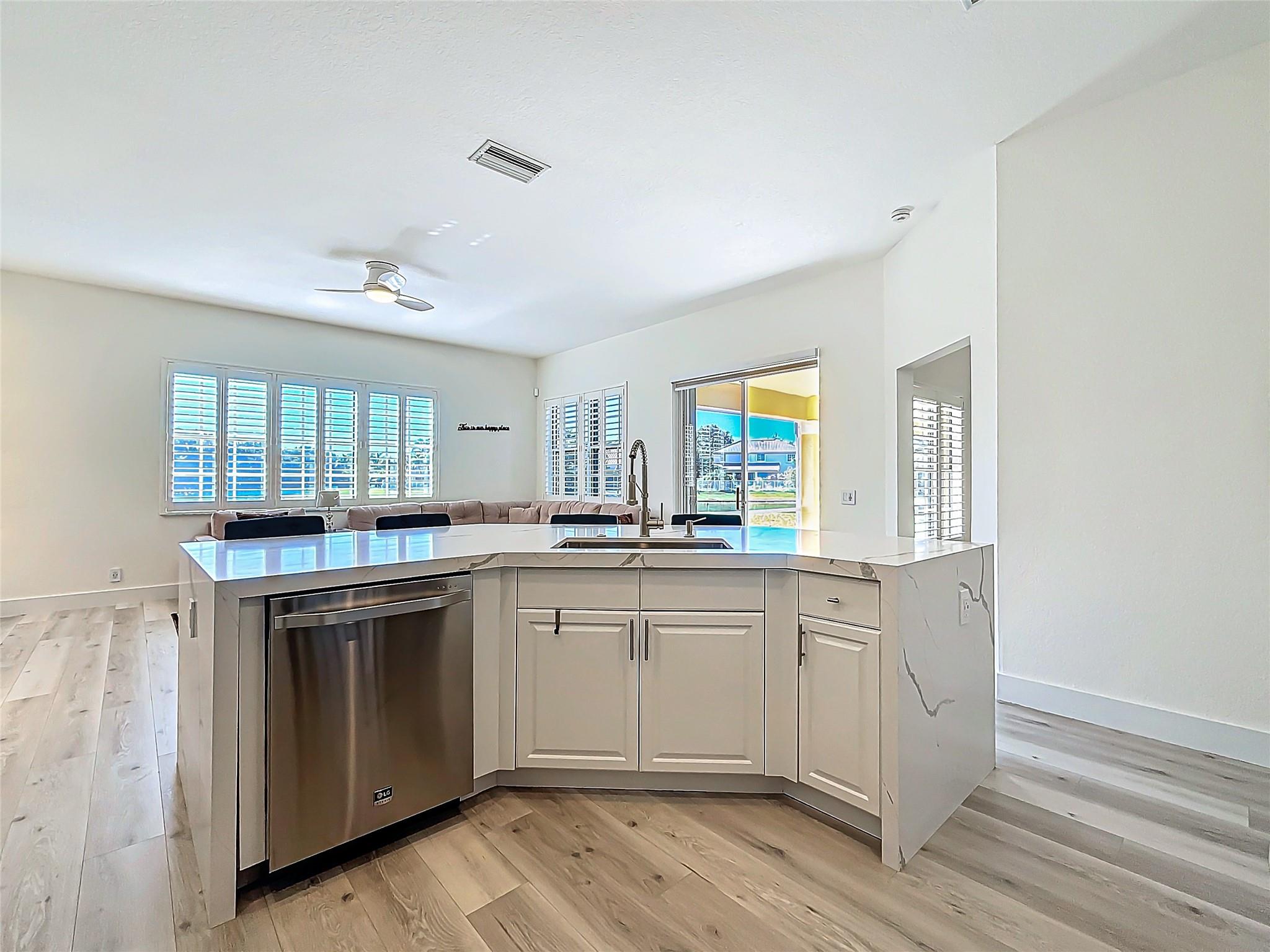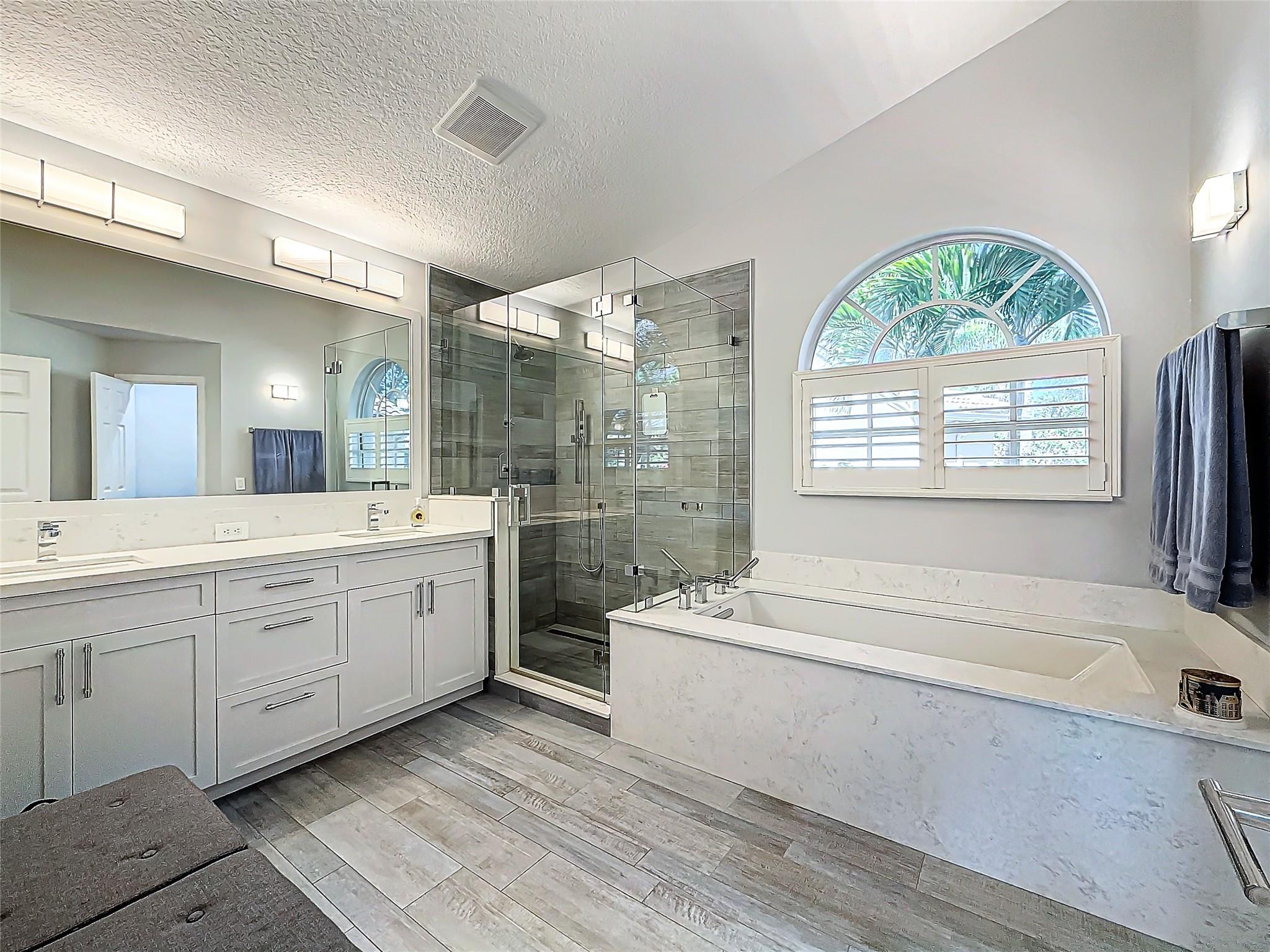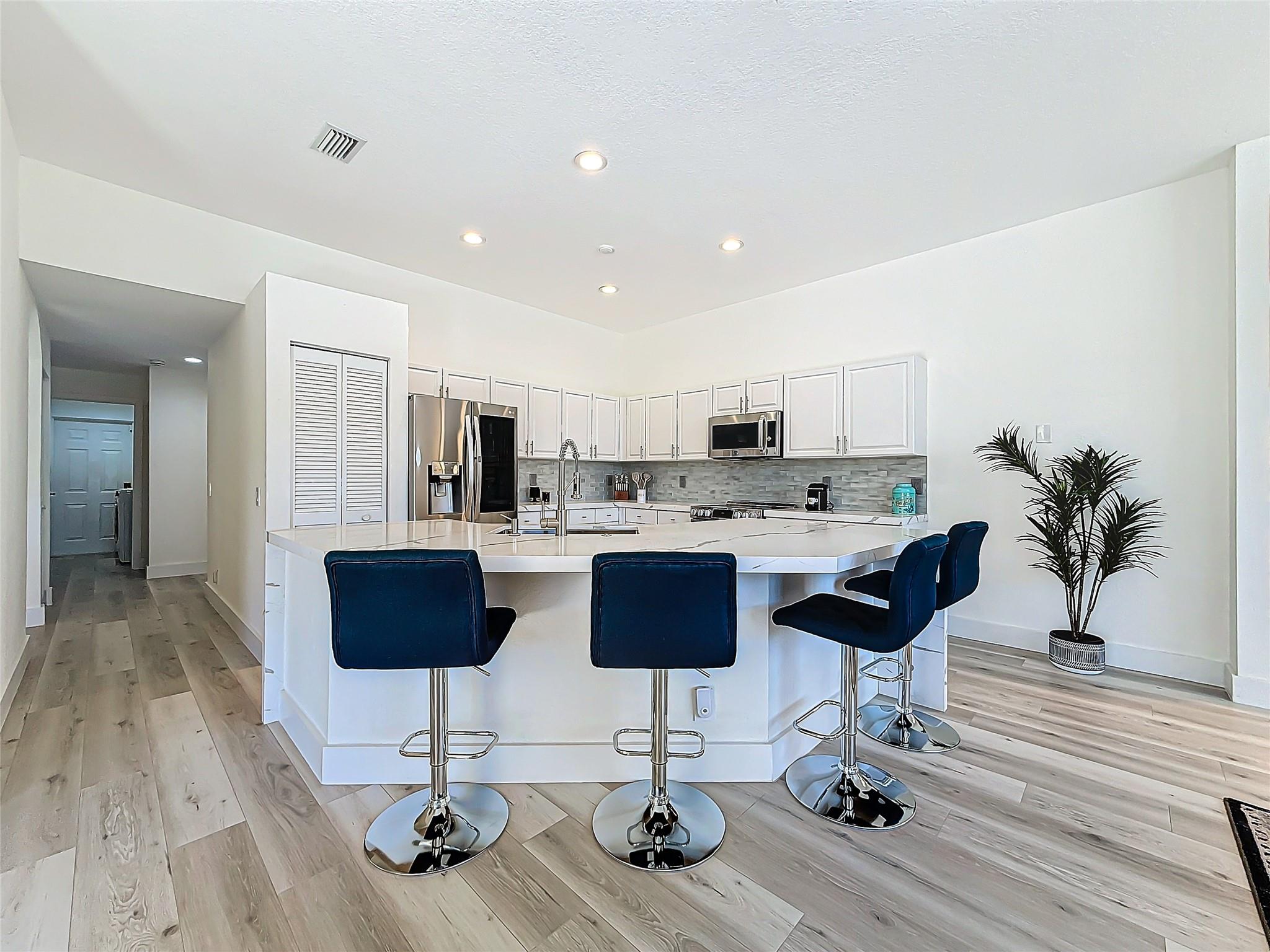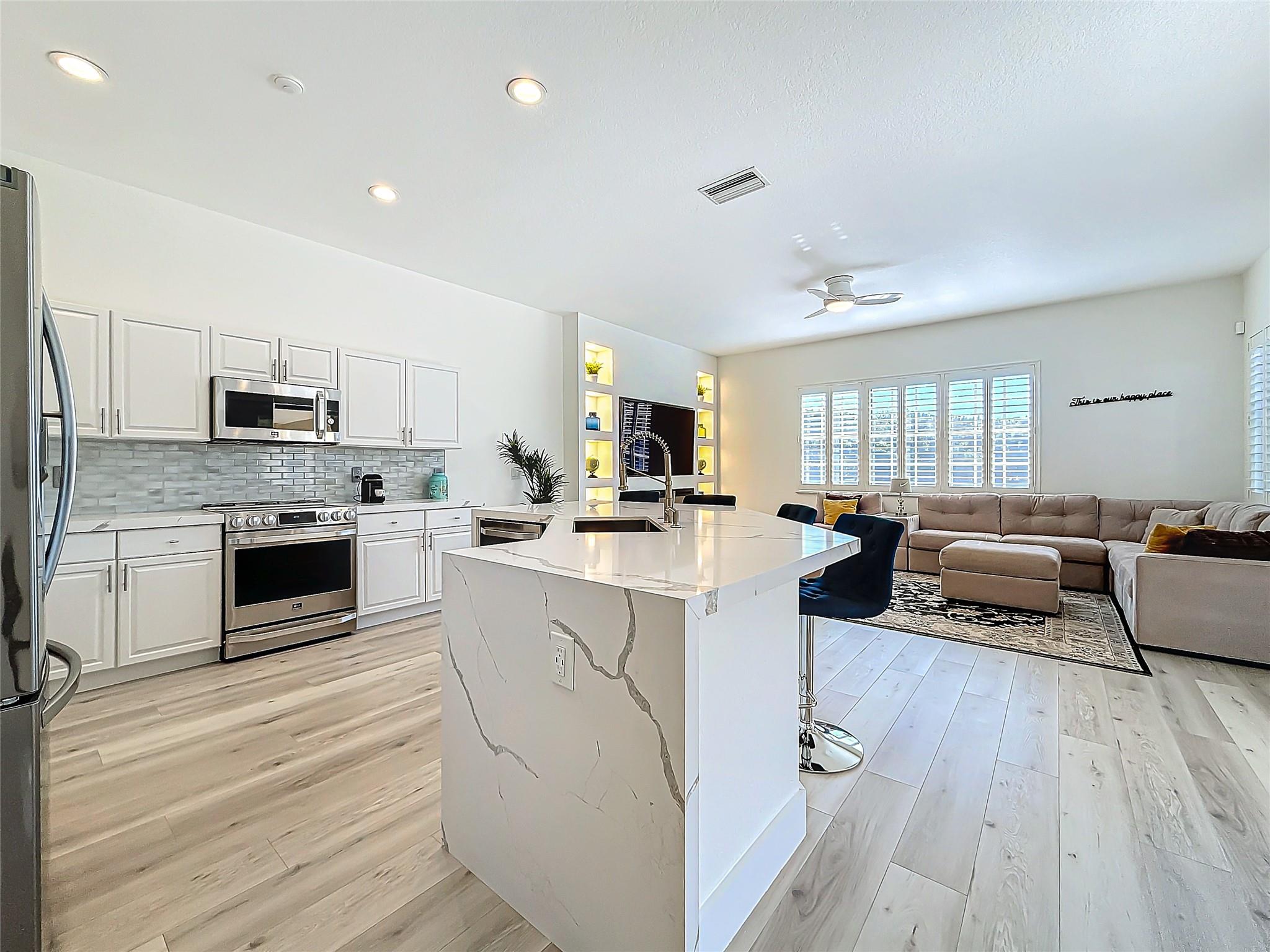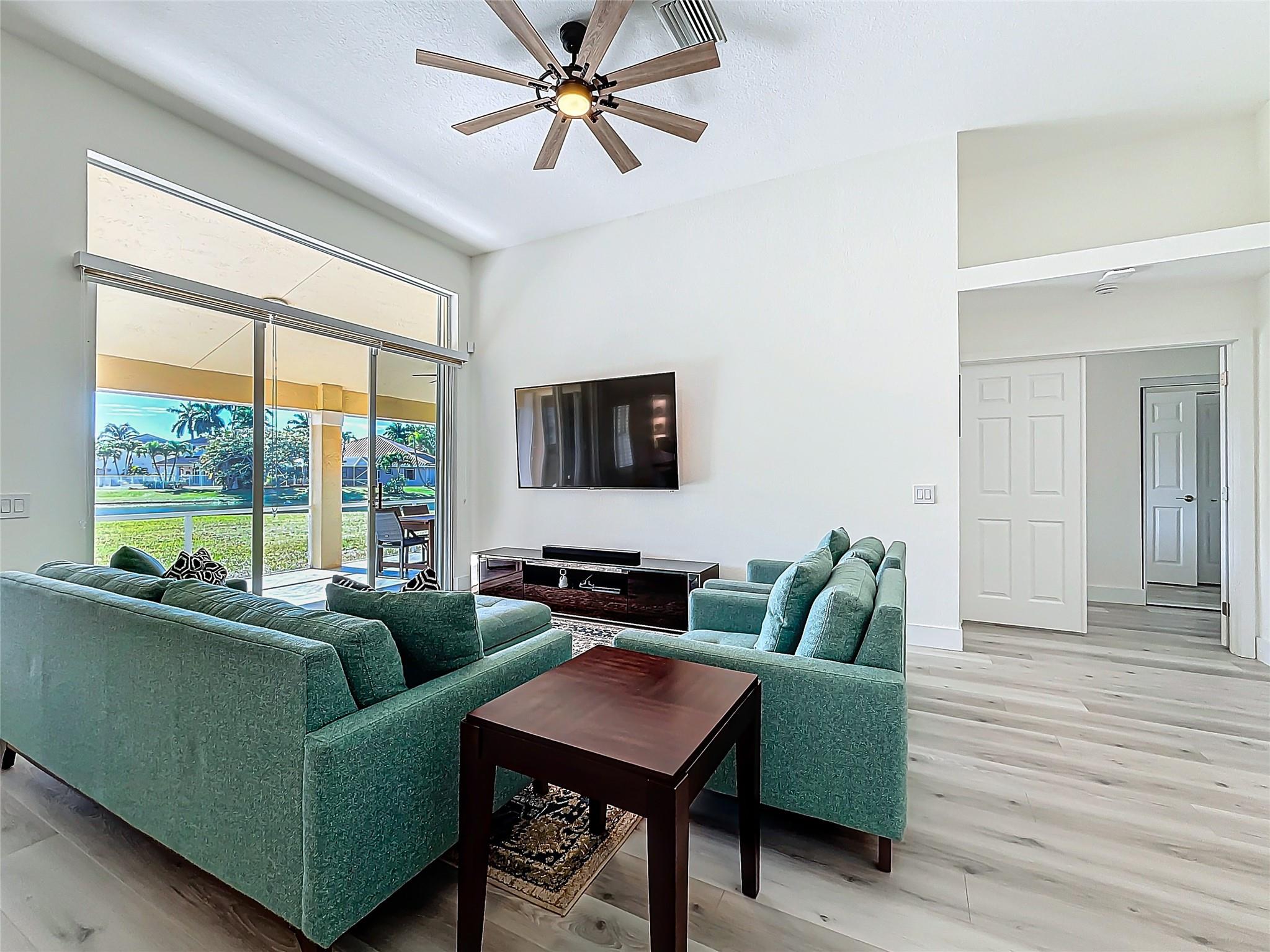 One of a kind! Beautifully Renovated Home in The Lakes offers expansive backyard space, stunning water views of intersecting lakes w tropical surroundings. This waterfront property is located on a 1/3-acre pie lot in a cul-de-sac with a south-facing back w screened tile patio. The modern kitchen boasts white cabinetry, quartz countertops, stainless steel appliances, island seating open to the family room, which features a custom entertainment center w TV and lighted fireplace. The spacious primary suite enjoys water views, w seating/desk area, walk-in closets, a separate shower & tub, and dual sinks. The home is protected w impact garage/front door, storm/screen shutters, newer roof. Large 2nd and 3rd bedroom w newly remodeled bath. Amenities-pool, playground, guard-gated,A+ Weston Schools