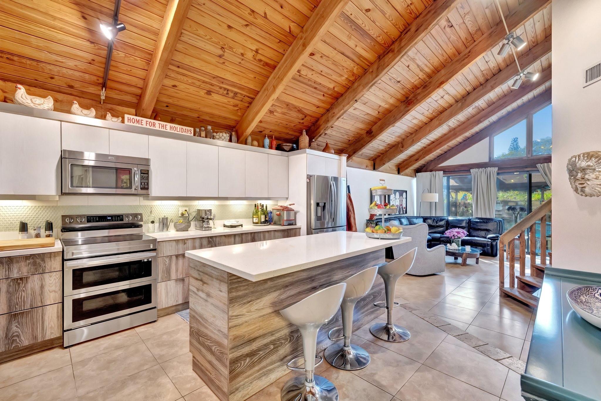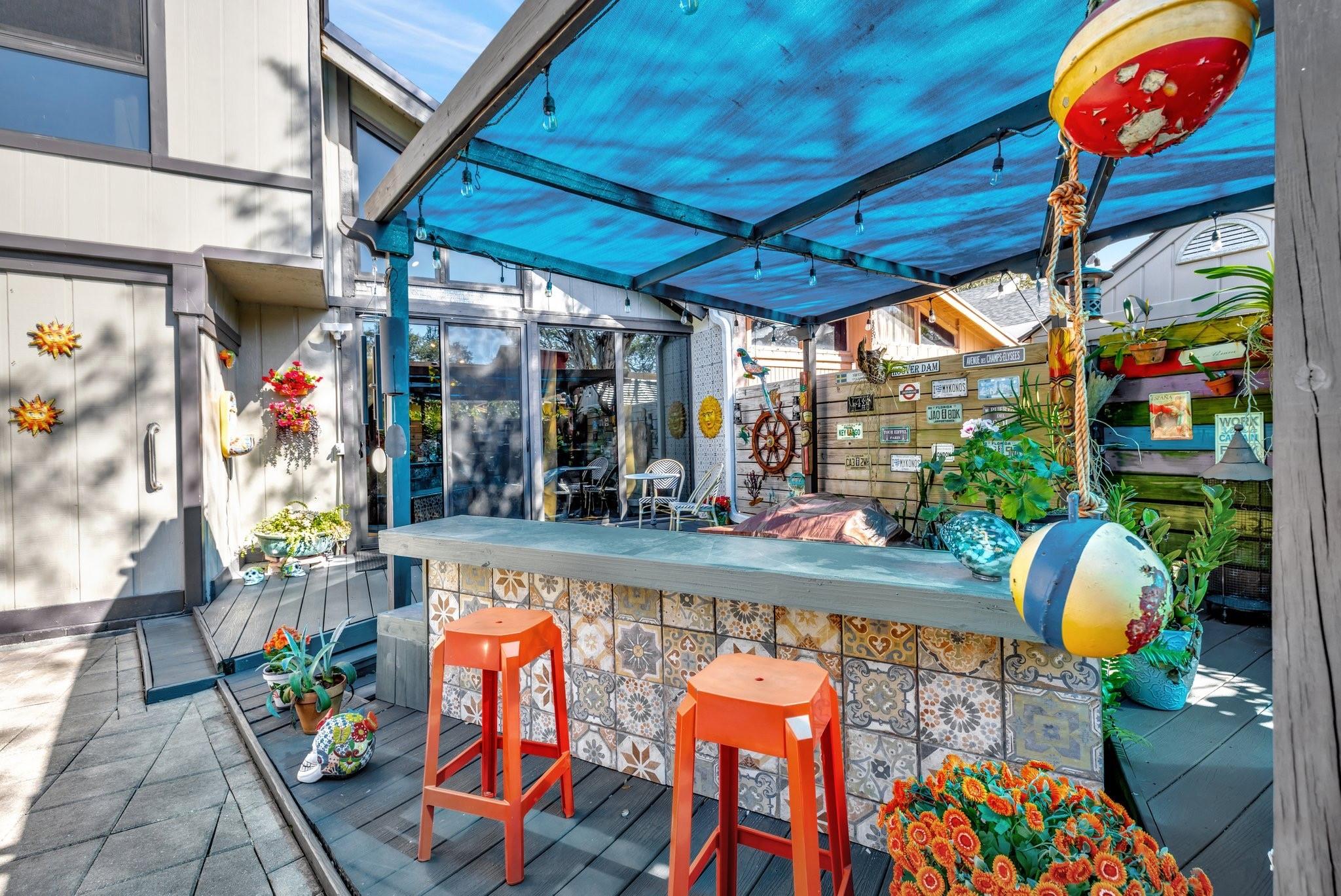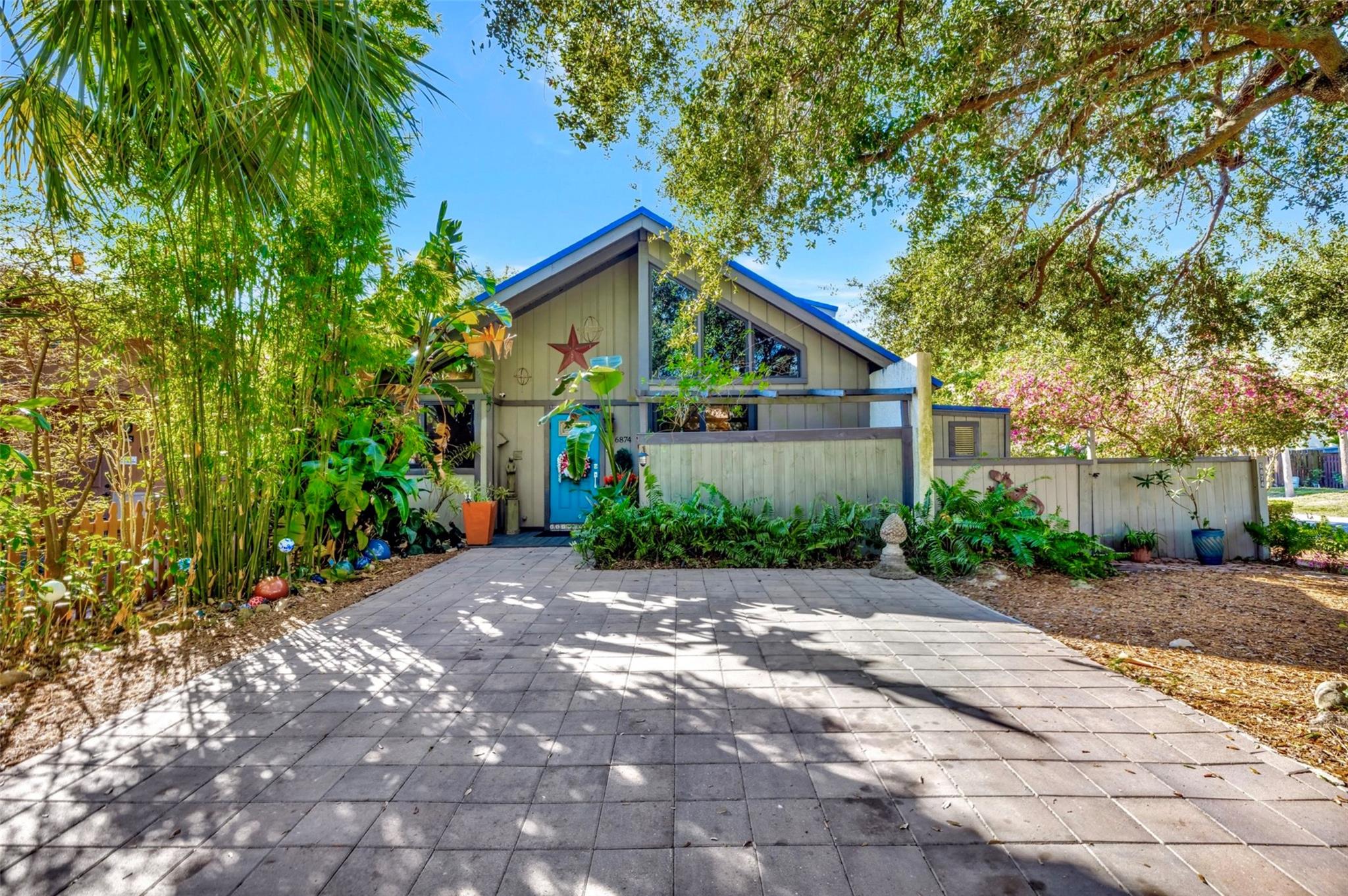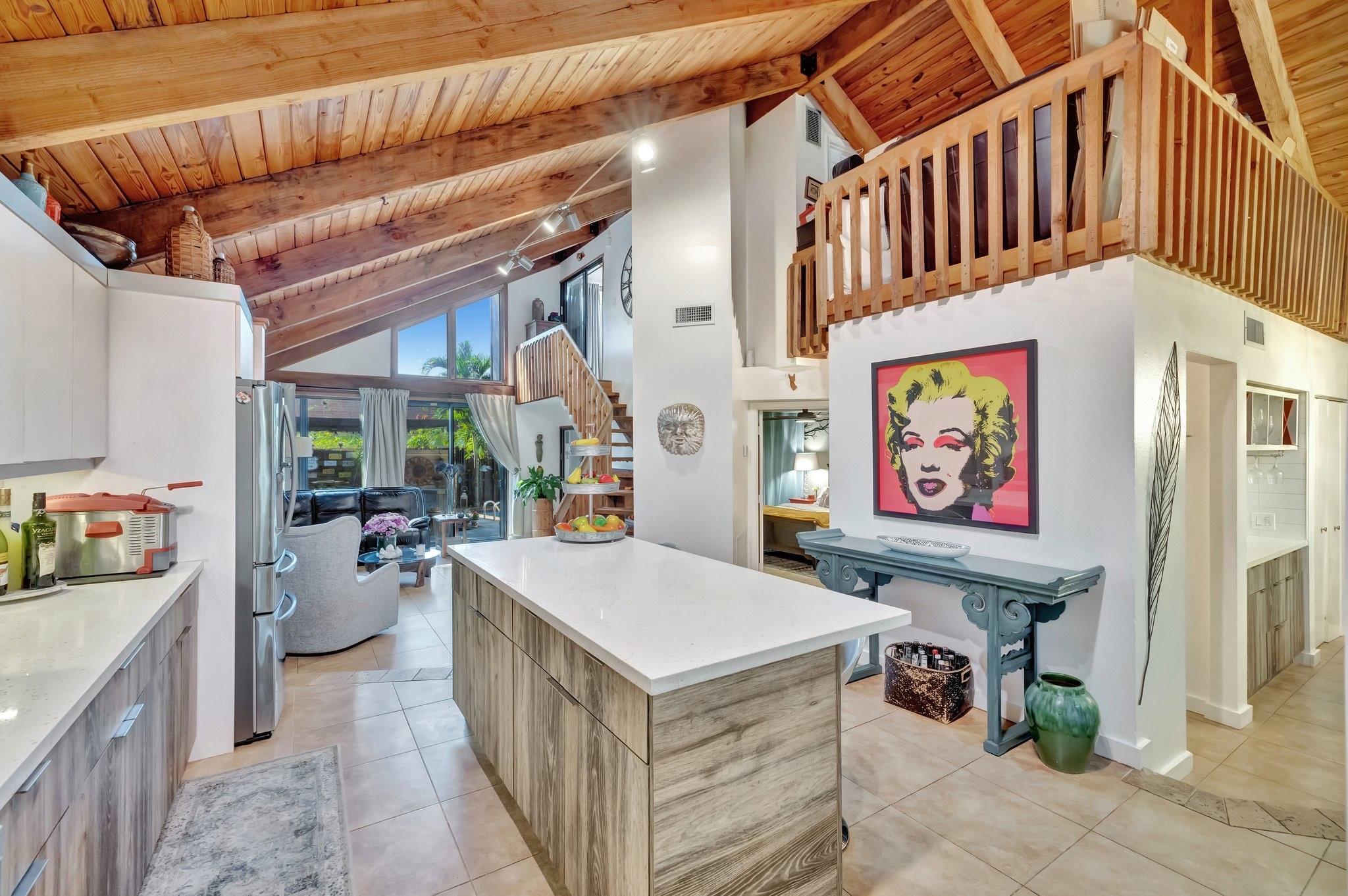 Welcome to Your Private Paradise Resort! This corner townhome is an entertainer’s dream! Move-in ready with modern updates, fresh paint, and stylish finishes, this home offers effortless comfort from day 1. The contemporary kitchen features beautiful quartz countertops, impressive custom cabinets, and stainless appliances. Soaring cedar ceilings invite relaxation in the living area overlooking the pool. The primary suite upstairs offers privacy. 2 bdrms downstairs for family or guests. Secured with impact windows & doors. Florida room is 3rd bedroom/office, plus loft for 4th room or study. Relax in your private pool, enjoy outdoor dining, and entertain at the summer kitchen/bar, all surrounded by a lush garden with a shed for extra storage. Very low HOA —schedule your tour today!