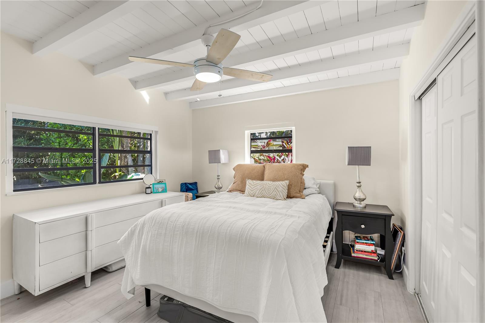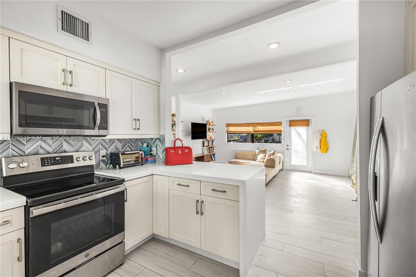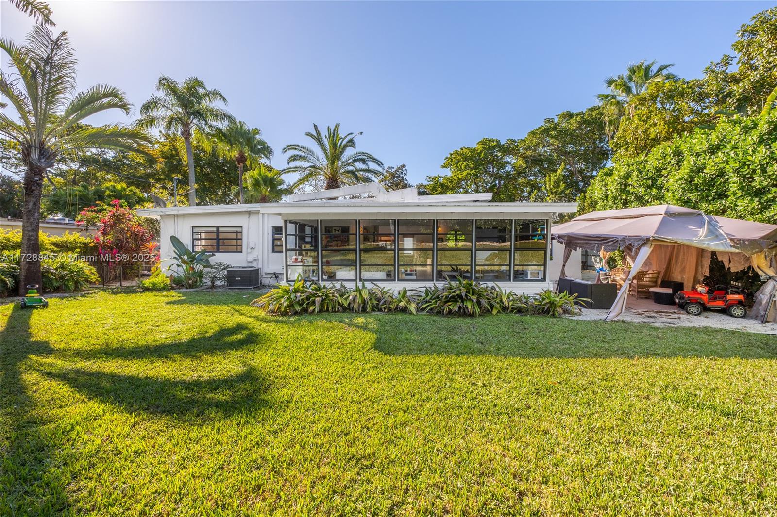 A perfect starter home situated in the exclusive Keystone Point neighborhood, a gated community tucked away in serenity, yet conveniently located minutes from Aventura & Bal Harbour. This updated mid-century modern home features natural lighting throughout, an open floor plan, a double island eat-in kitchen, and a captivating glass-enclosed great room filled with natural light, perfect for dining, media, and entertainment. The garage has been turned into the third bedroom, adding to the home's versatility. Its expansive, lushly landscaped backyard is an ideal setting for entertainment and peaceful moments. It is surrounded by grand privacy hedges, creating a secluded oasis for you and your loved ones to enjoy.