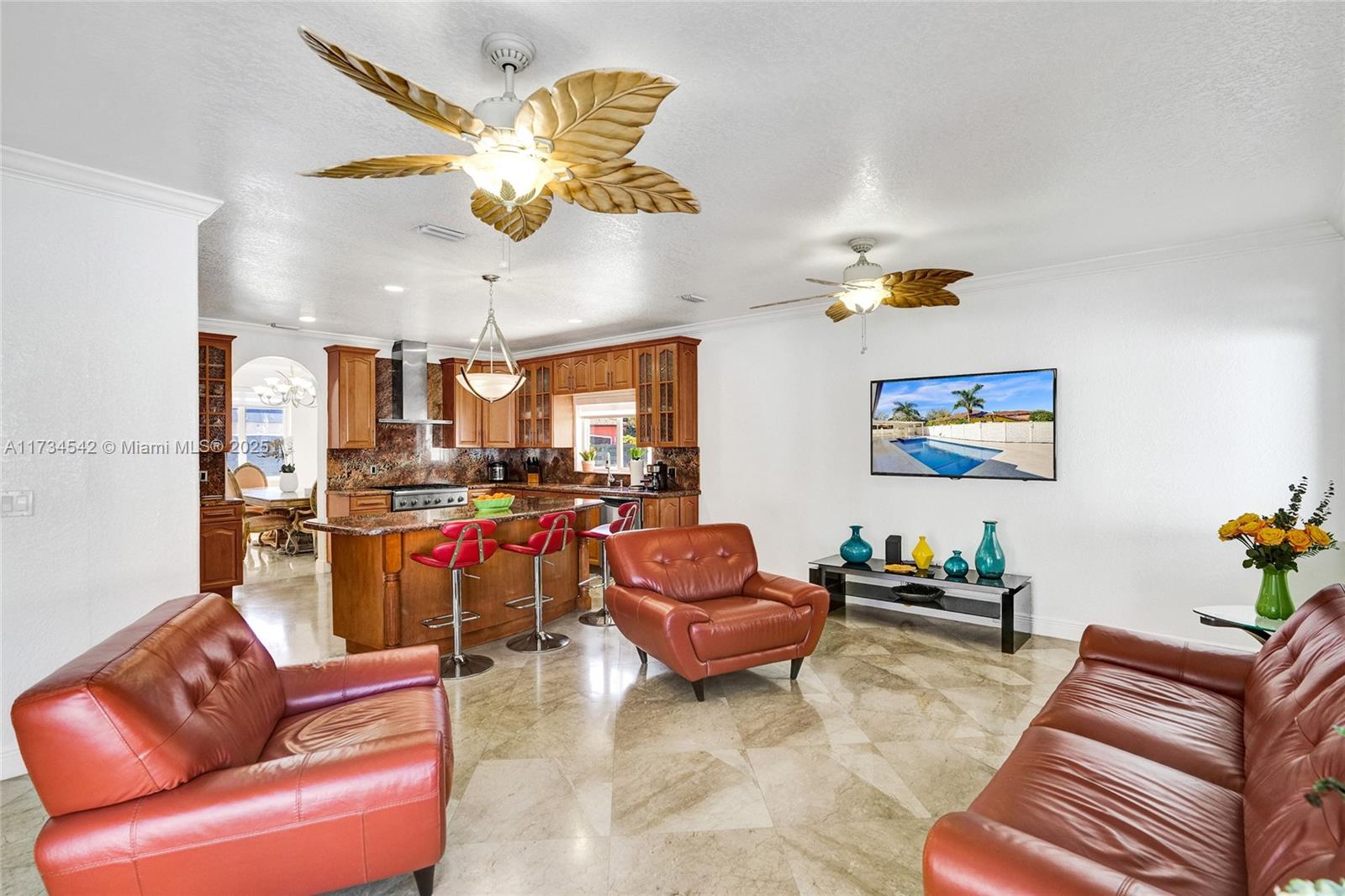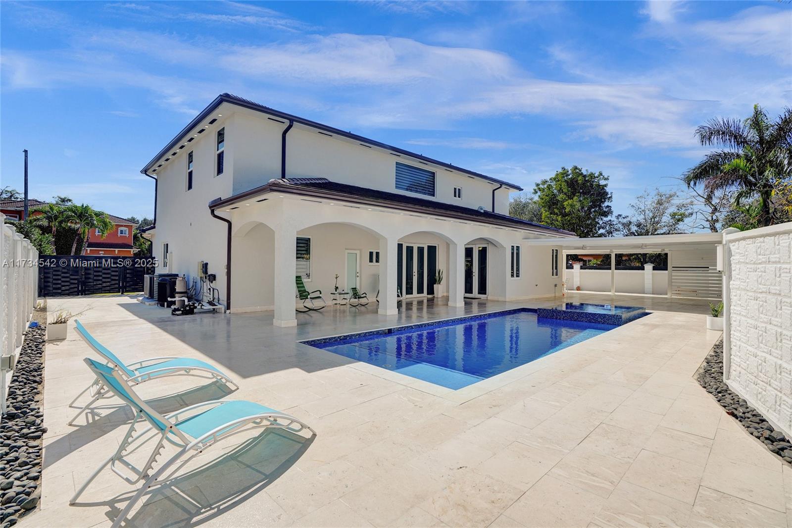 Stunning 4-Bedroom Home with Lake View & Luxury Features! This beautifully updated home boasts a new roof, 4 fully renovated bathrooms, and breathtaking lake views. Enjoy the comfort of impact windows, a new pool and jacuzzi with a Yandi heater, and a charming outdoor gazebo. The backyard is enhanced with elegant travertine throughout, creating a luxurious outdoor living space. Inside, you'll find marble floors throughout, and outside, a sprinkler system for easy lawn maintenance. A brand new cement fence surrounds the property for added privacy and security. Situated on a spacious corner lot with ample room on both sides for boat or RV parking, this property offers convenience, luxury, and a perfect outdoor retreat.