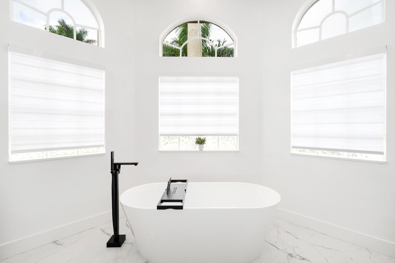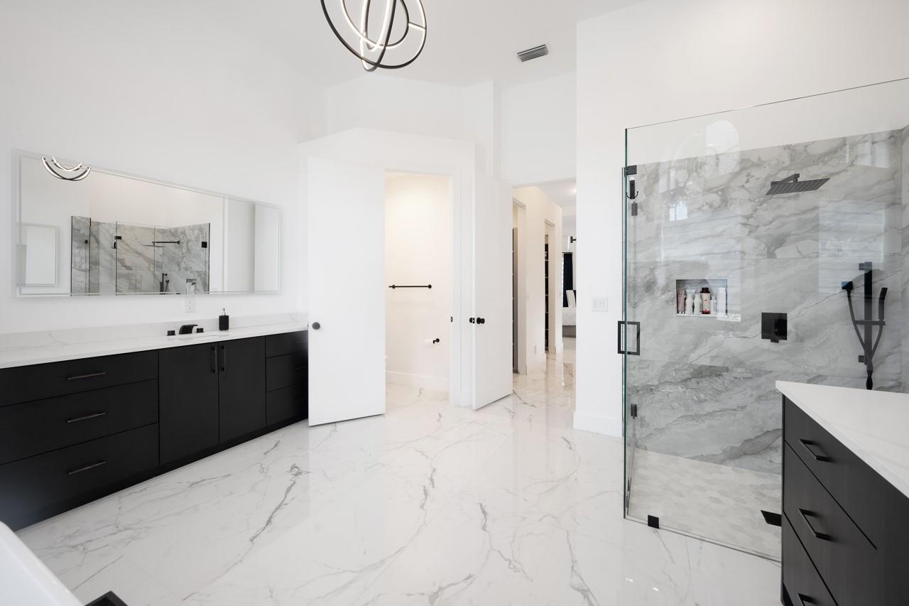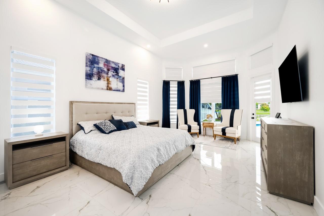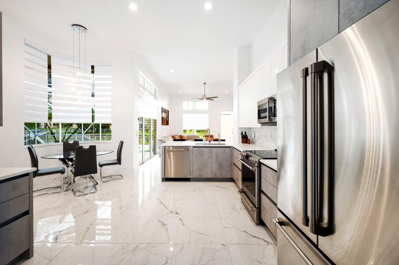 Sparkling 4 Bedroom plus Den Lakefront Pool Home, beautiful Finishes, Everything NEW, A Rare Find! NEW Roof 2022, NEW Floors throughout, Gourmet Kitchen w/Modern Gray/White Cabinets, Reverse Osmosis Water system, Beautiful White Quartz Countertops, Kitchen opens to VERY Spacious Family Room, Triple Split Bedroom Plan, All Bedrooms X-Large Big Walk in Closets, LED Lighting Fixtures. Gorgeous NEW Baths (3.5). Modern Gray/White themed Finishes / Bronze Fixtures throughout this home. Spectacular Private Screened Lakefront Pool, DAZZLES! NEW Exterior lighting. Expansive Lake View from All Living areas. Pretty Pool Patio for Entertaining Day or Night. Lake w/Boat Access. Huge 3 Car Garage with Paver Driveway, Parking for 6 Cars. Nothing to do but Enjoy! A beautiful home you will be Proud to Own!