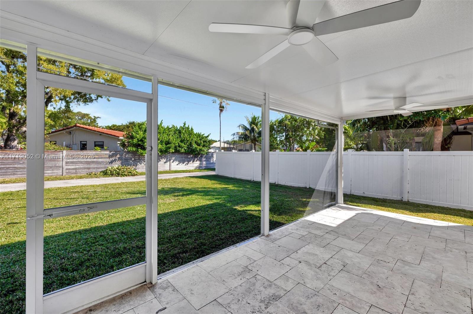 Modern bohemian 3-bed, 2-bath home w/ 2022 Tile ROOF by Paletz, Hurricane IMPACT windows & doors, '22 ELECTRIC PANEL, updated plumbing, '19 SCREENED PATIO & newer AC. Open concept w/ gorgeous white kitchen, quartz counters & newer stainless appliances w/ gas stove! Bright living room, dining area & den overlooking backyard + spacious laundry rm w/ washer & dryer. Piles started for a new pool - Seller invested over $49k toward project - now's your chance to customize & complete your backyard. Large, covered screened patio w/ travertine marble overlooks backyard. No HOA or Rental Restrictions. Alley behind home for garbage. Ideally located near houses of worship, lakes, intracoastal, beaches, schools, parks, shopping, dining & major highways.