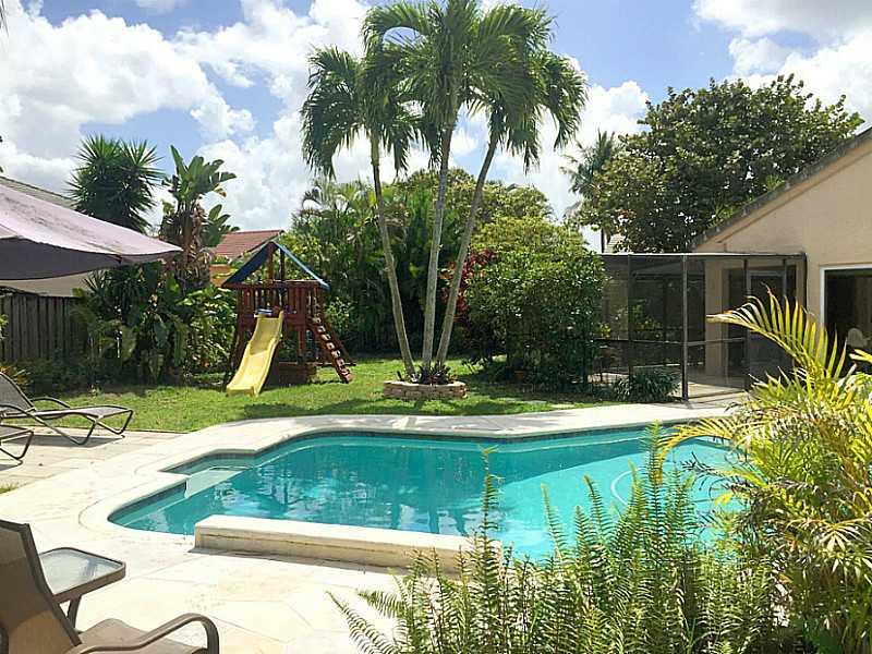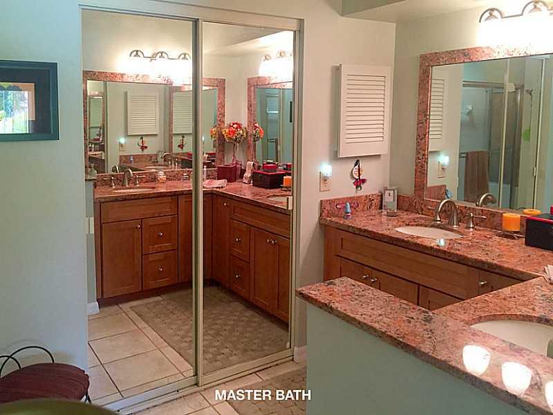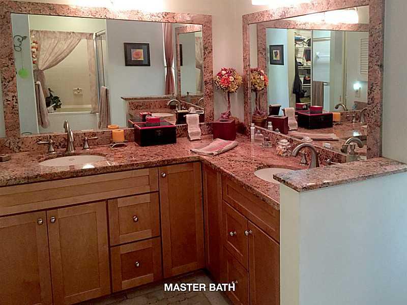 Great family oriented neighborhood, Custom kitchen cabinets with elegant granite countertops, Stainless steel appliances, tastefully renovated bathrooms with granite all over, , ceramic tile in kitchen, living areas and master bath. Masterbedroom downstai rs. Berber carpeting through out on stairs and second floor. Tropical garden setting, fenced in oversize back yard with pool and deck. Screened in covered patio great for entertaining. For showings please see broker remarks.