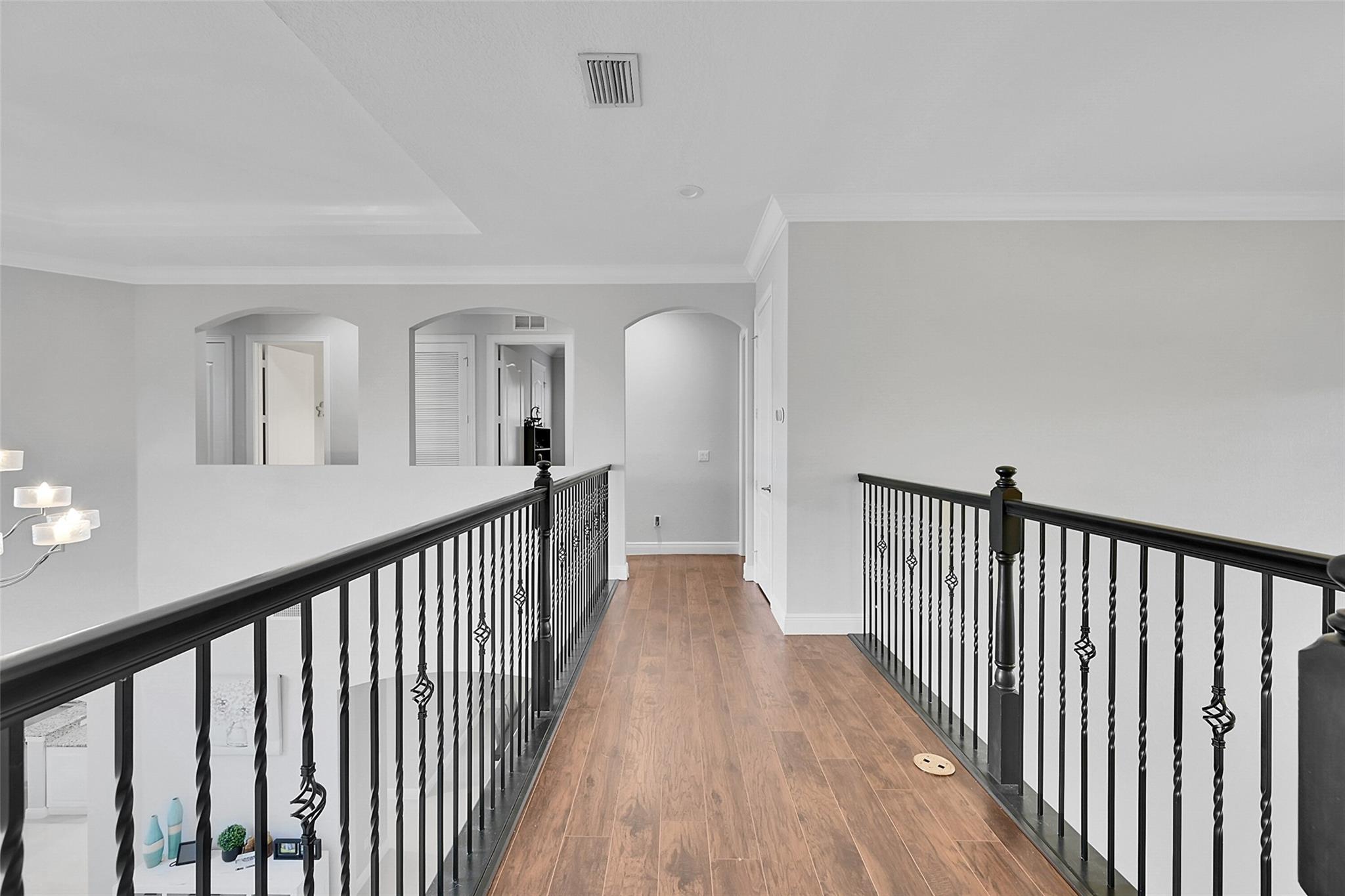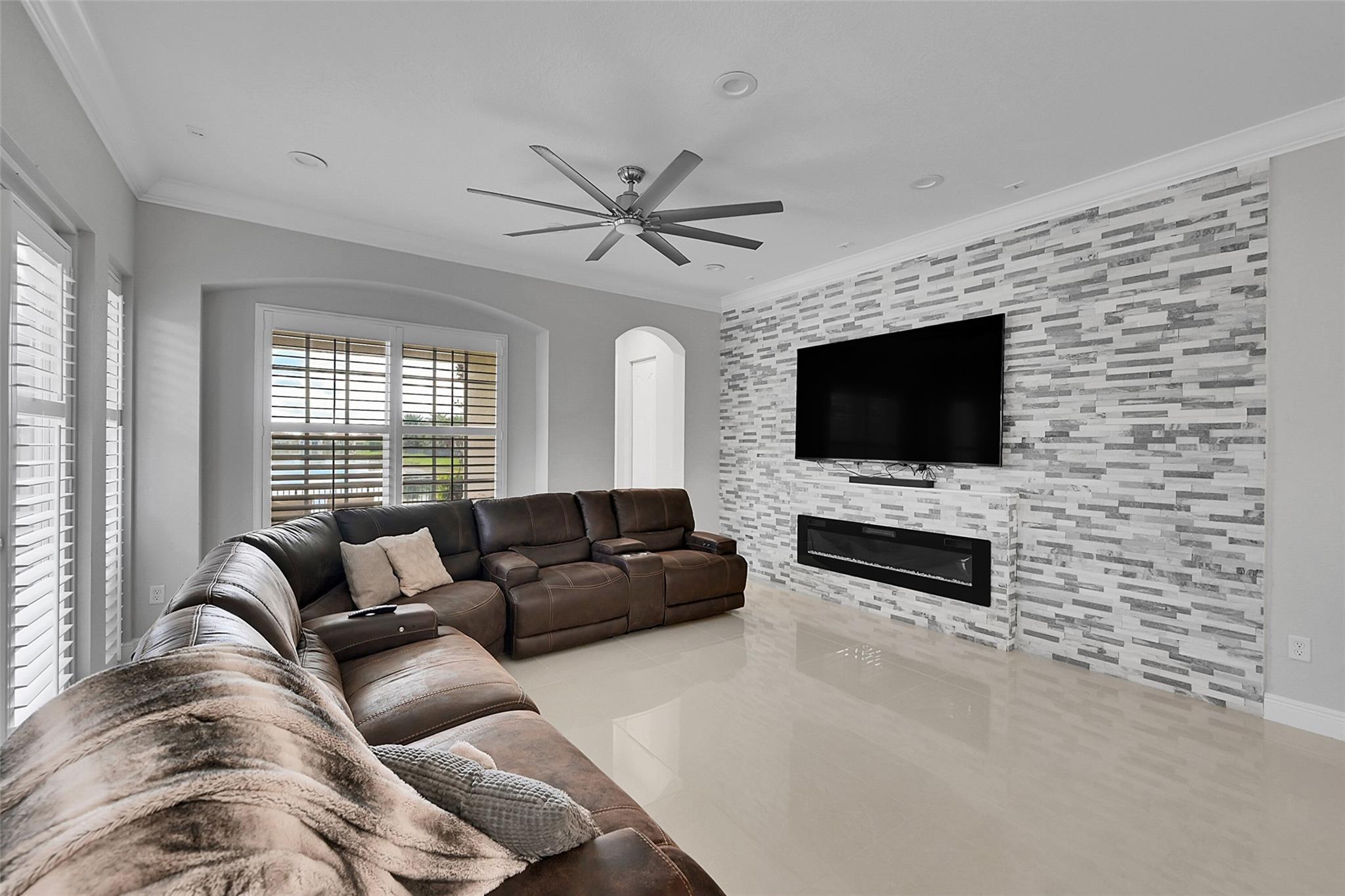 Welcome to this stunning estate home in the highly coveted Mira Lago, situated in the desirable Parkland area. This beautiful Wentworth model showcases a direct waterfront view w/ plenty of room for a pool. It offers six bedrooms, 6.5 Baths, an office, and a spacious loft that can easily be converted into an additional bedroom. The home features an updated white kitchen, Impact windows, Primary on the 1st floor w/ a sitting area & huge walk-in closet. The first-floor office can also serve as a room with a full bathroom nearby. Enjoy a stylist brick wall with a fireplace. You will also benefit from lawn care included in the low maintenance fee. Plus, enjoy access to 2 amazing clubhouses w/ tons of amenities. If you seek a beautiful home w/ en-suite convenience, this is your dream retreat!