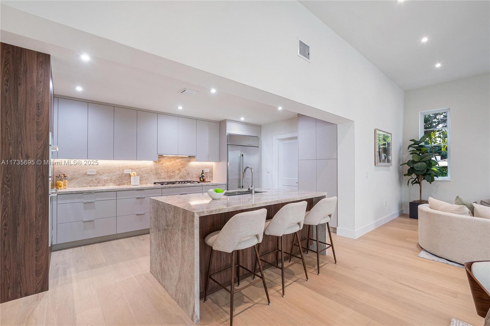 Stunning residence in one of Coral Gables' most sought-after neighborhoods on Jeronimo Drive. This exceptional home features four bedrooms, three bathrooms, a dedicated office, and a large covered patio on an elevated 10,400-square-foot lot. Recently updated with new kitchens and bathrooms, it boasts impact windows and doors throughout. Enjoy a flawless layout with soaring 14-foot ceilings in the main living area and master suite, complemented by a gorgeous master suite and spacious walk-in closet. Additionally, the property has plans to build a pool, making it the perfect oasis.