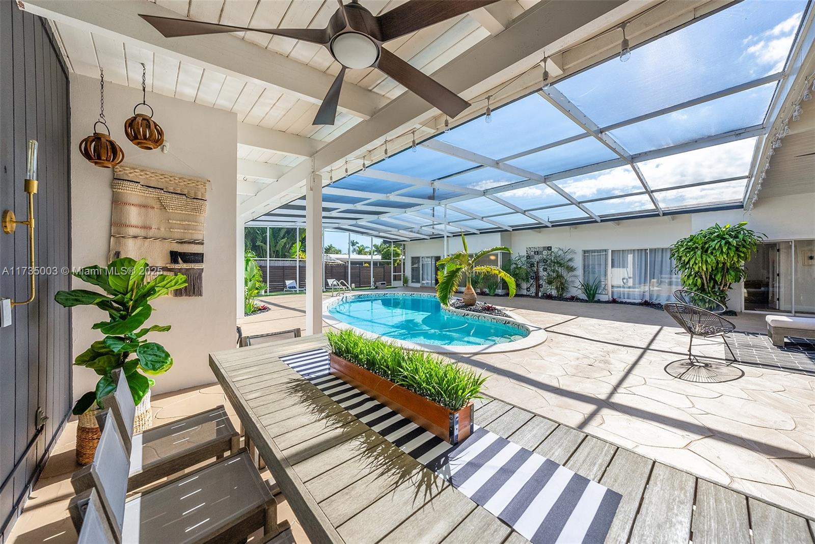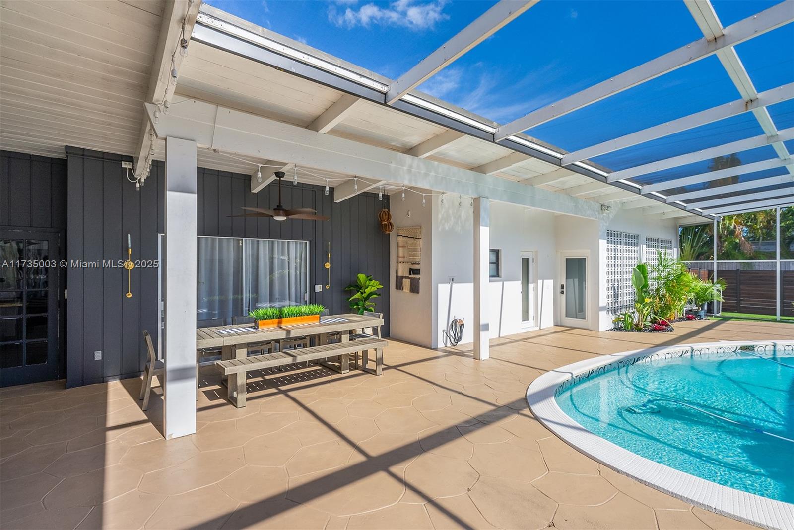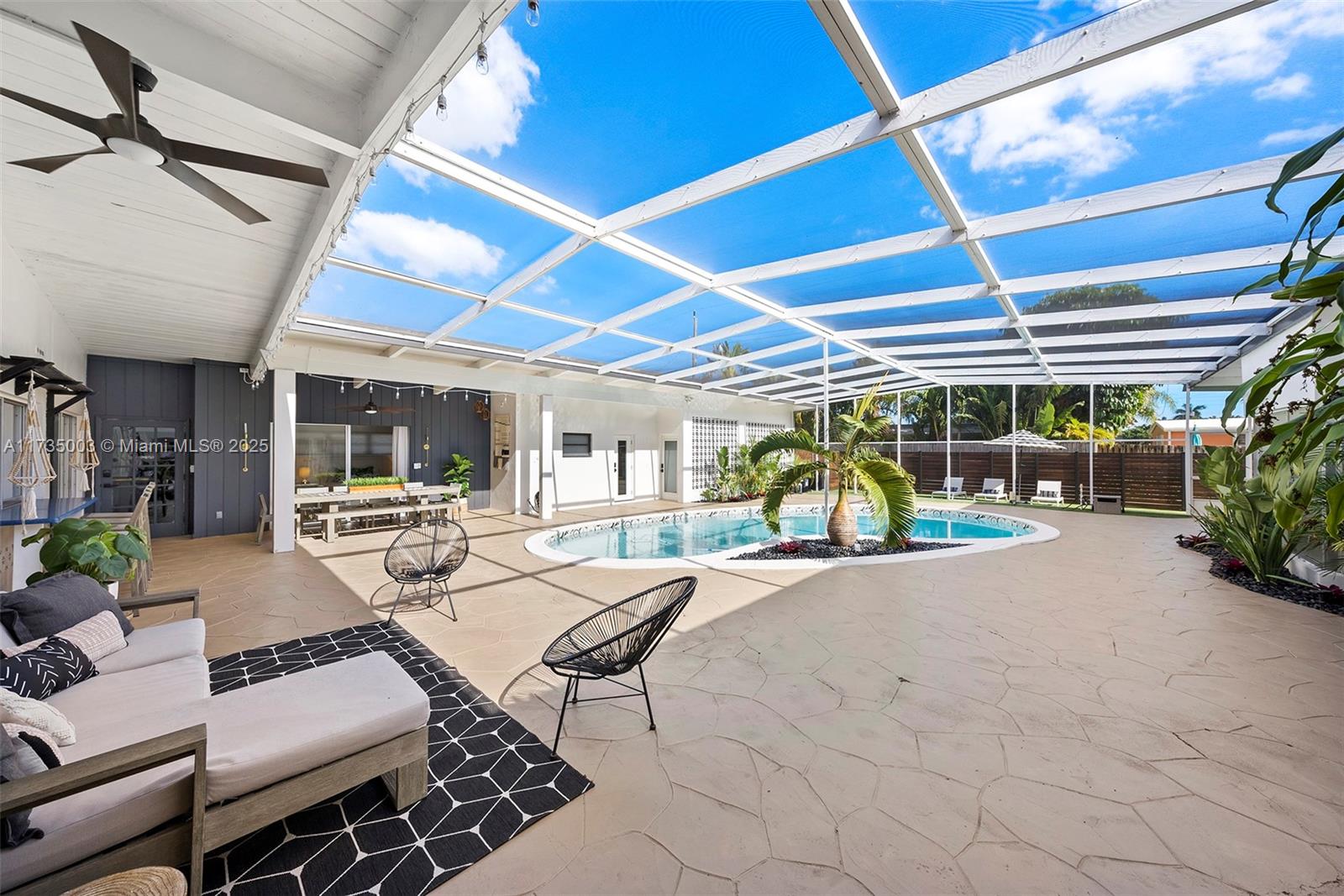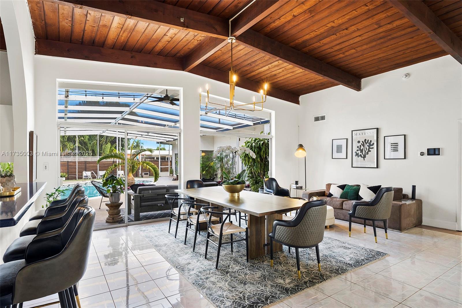 Welcome to this impeccable mid-century move-in ready modern gem in highly desirable Hollywood Hills. Every detail of this spacious home adds character and charm, and exudes sophistication, with impeccable attention to detail, creating a space that feels effortlessly luxurious. A bright, open layout features natural light, large windows, vaulted ceilings, and stylish finishes that embody mid-century design, blending timeless architecture with modern upgrades. Recent upgrades include two new AC units (2024) with updated ductwork, partial impact windows, a reinforced impact door, a saltwater heated pool, an outdoor shower, turf and a whole-house water softener with reverse osmosis filtration. This home offers style, function, and peace of mind in a prime South Florida location.