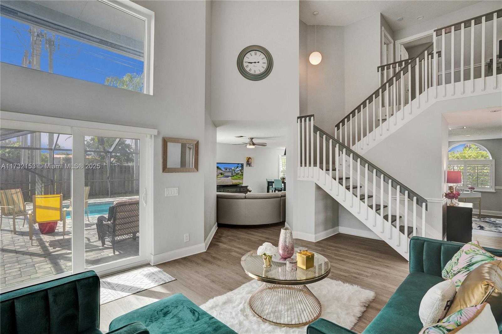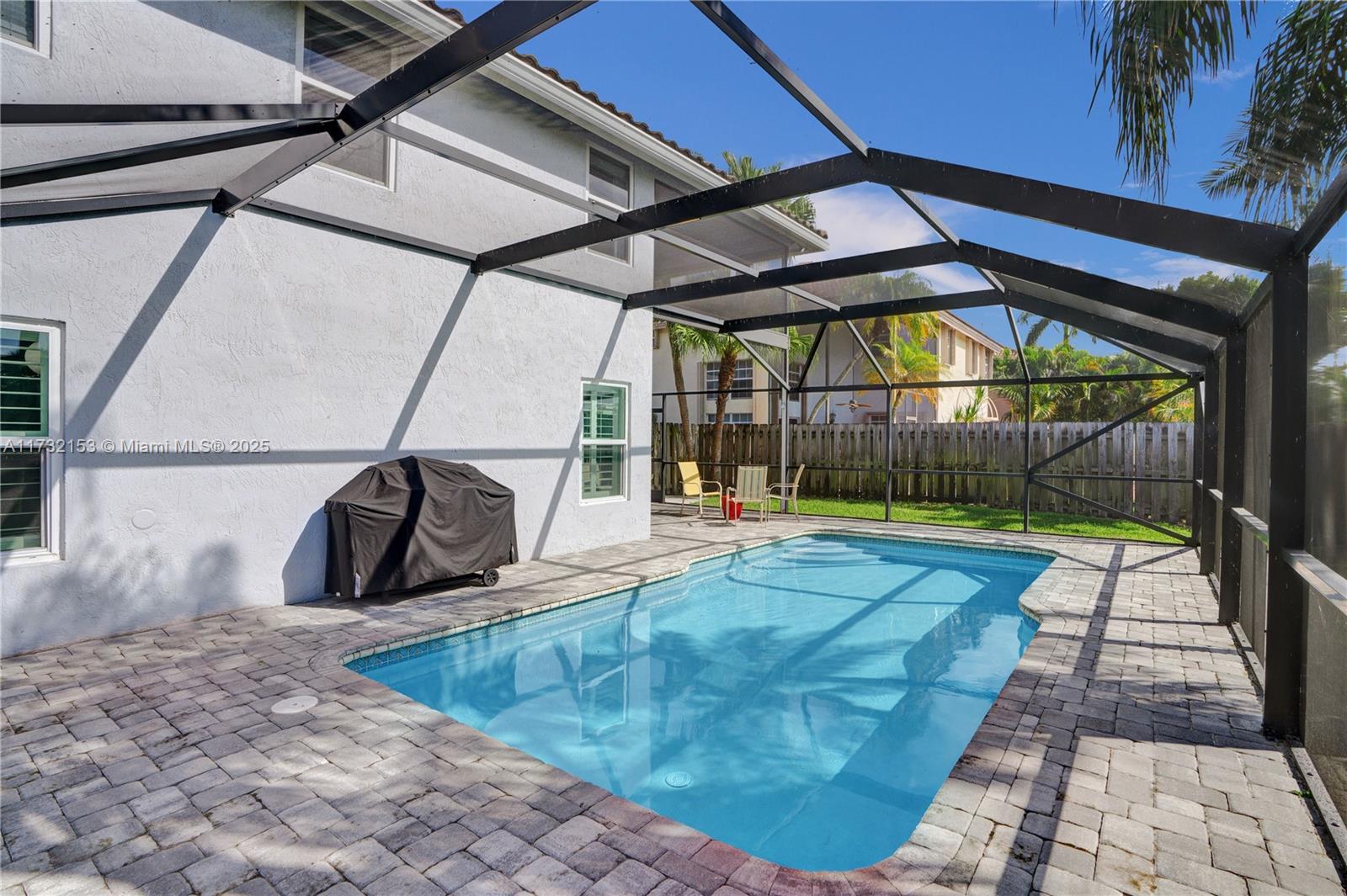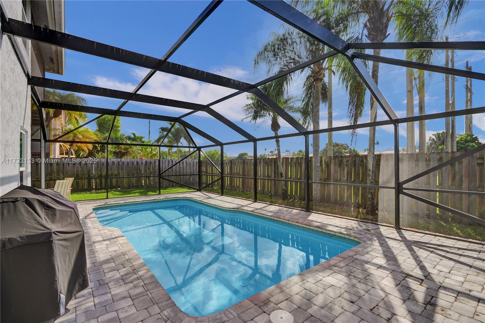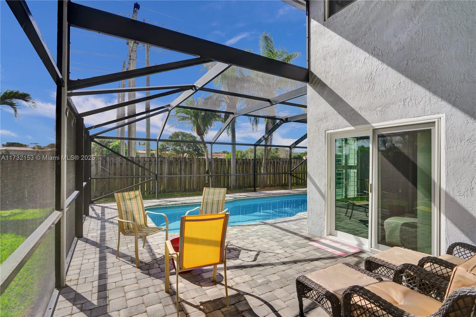 Nestled in the highly desirable Embassy Lakes community, this beautifully updated 4-bed, 2.5-bath two-story, 2-car garage home offers the perfect blend of comfort, style, and security. Step through double doors into a spacious layout featuring formal living and dining areas. The updated kitchen boasts stainless steel appliances, sleek quartz countertops, and ample cabinetry. Upstairs, you’ll find all four bedrooms, along with a versatile bonus space. The primary suite features luxury finishes, double sinks, a jetted soaking tub, and a separate shower. Relax in the screen-enclosed pool area, perfect for year-round enjoyment, with a fully fenced backyard for added privacy. Located minutes from top-rated schools, parks, and shopping, this home offers the very best of Cooper City living.
