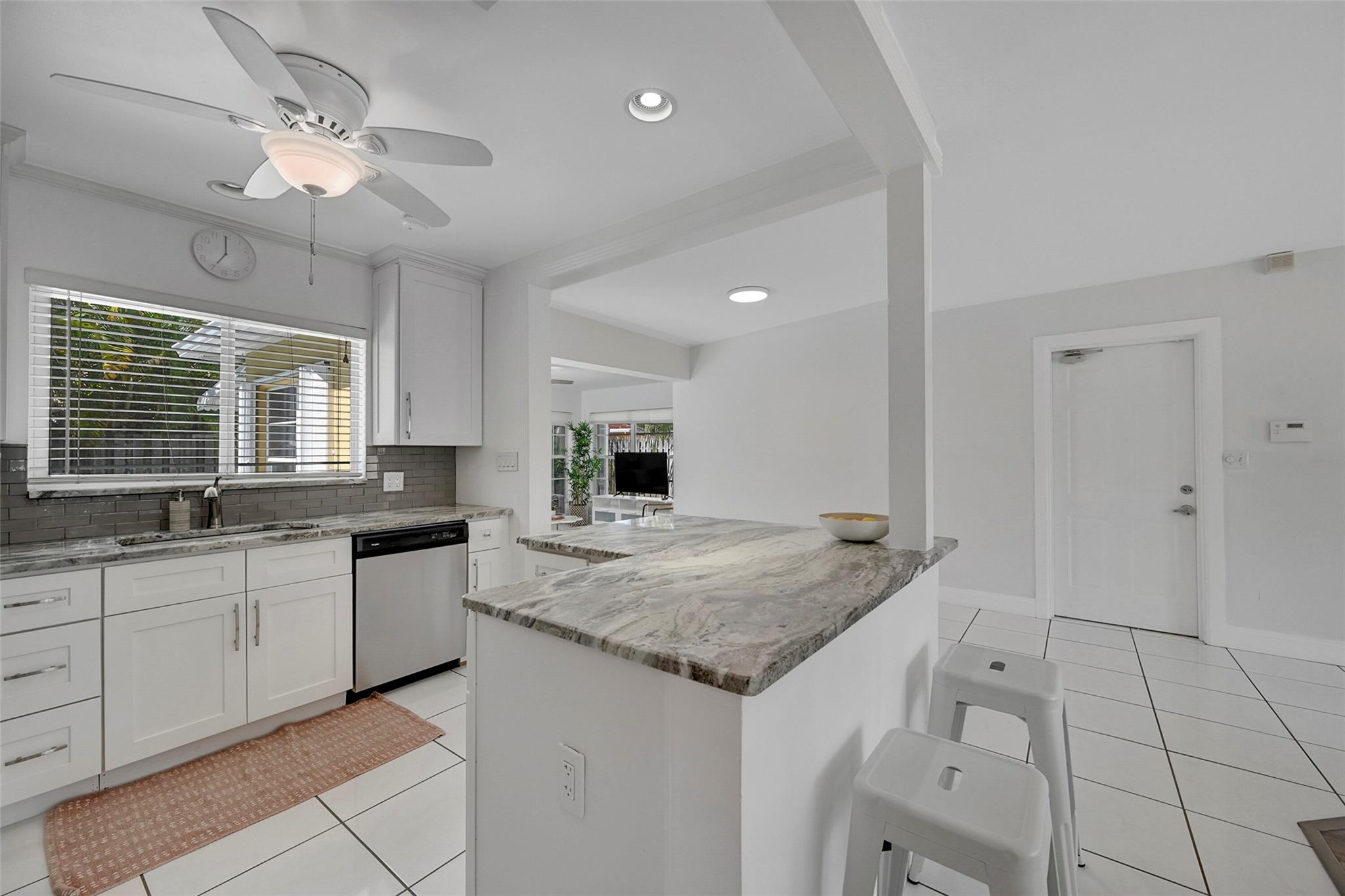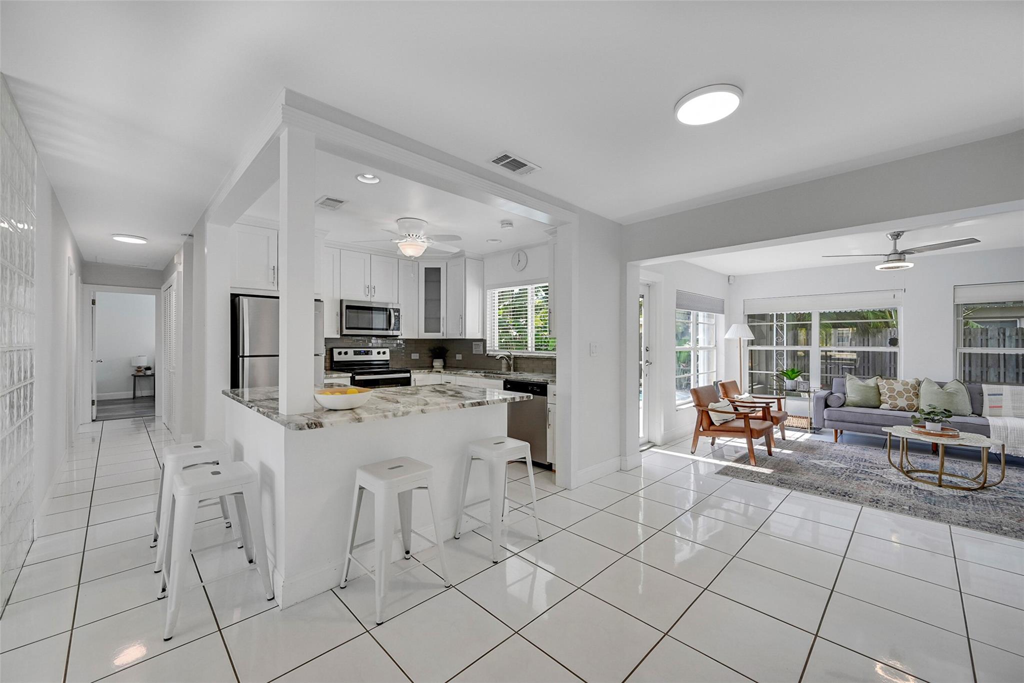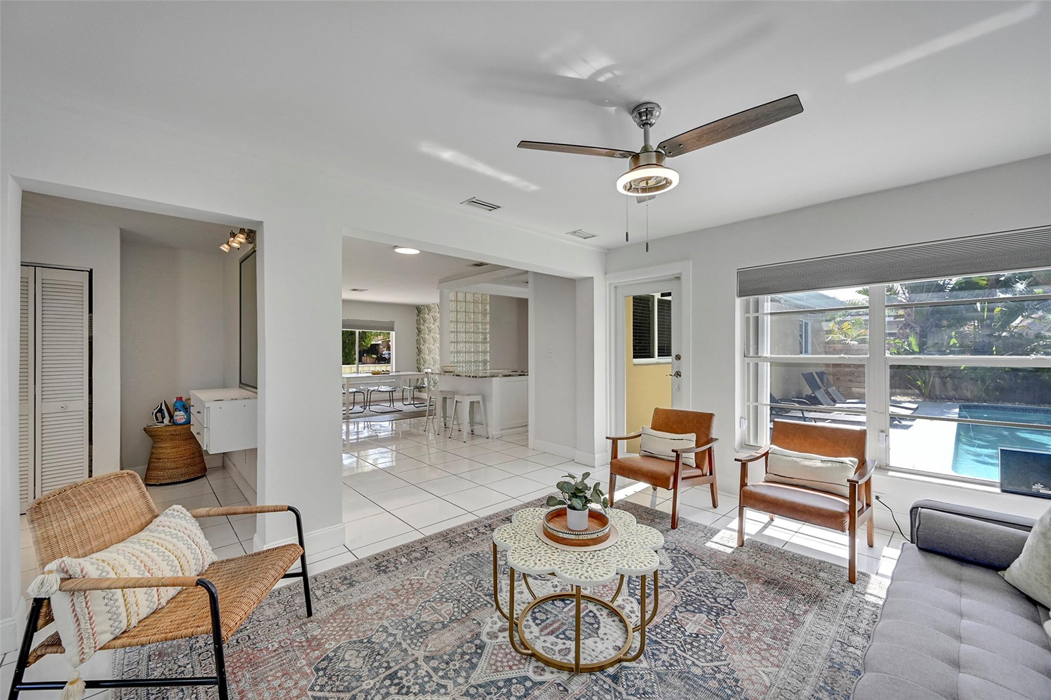 Updated east side Pompano Beach 3 bedrooms, 2 baths home with a garage and an oversized pool. Hurricane impact protection throughout. New a/c, both interior and exterior electric panels updated, new sprinkler system, and has an active Airbnb license. Open kitchen with white cabinetry, granite counters, and new stainless steel appliances. 2 family rooms for entertaining, large interior laundry room with plenty of room for storage and huge circular driveway. Plenty of room to park a boat or RV. Furnished. Seller will put on new roof or credit buyer.