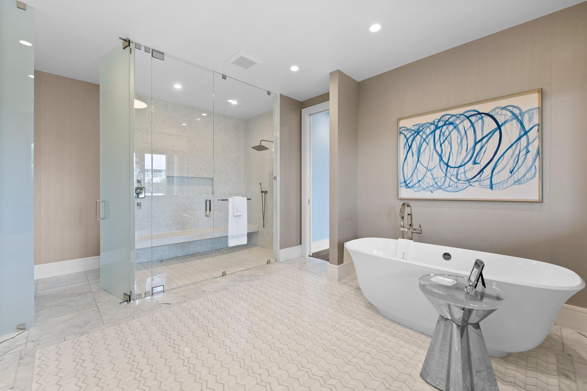 Experience stunning panoramic intracoastal water views from most every room in this home! A brilliant collaboration of architect Bob Tuthill, builder JL Lavallee and interior designer William Peacock this residence features volume ceilings, state of the art gourmet kitchen with Thermador appliances, floor to ceiling windows, huge open balcony overlooking the pool and waterway, gorgeous custom bar for entertaining, 240 square foot walk-in closet in primary bedroom, marble floors, Sonos sound system, laundry room on each floor, triple spilt AC system, 22' deep by 60' wide dock, tranquil pool and jacuzzi, lush landscaping, golf cart parking space and more!