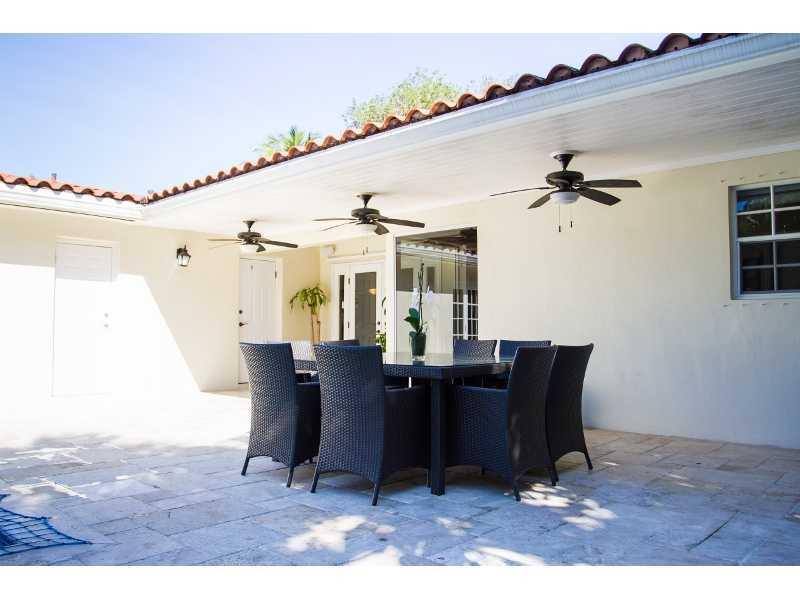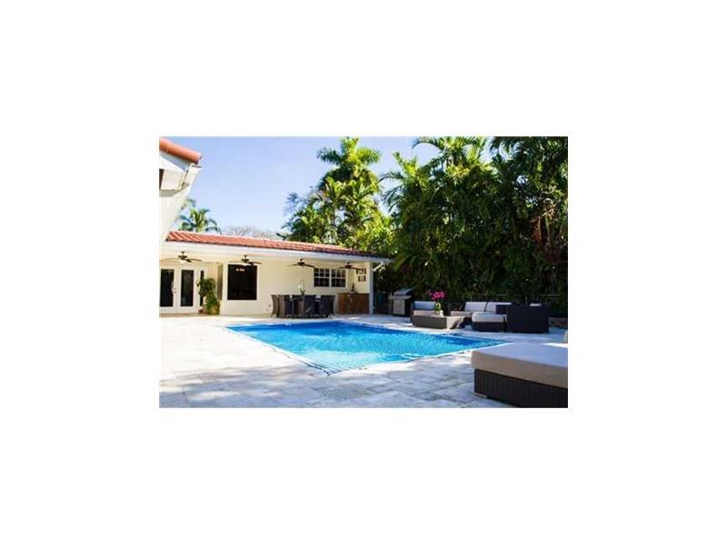 Prime South Gables Location. New pool & decking finished w/ Travertine marble in French pattern. Double door entry, great open floor plan, updated kitchen w/ wood cabinets, stainless steel appliances & wine cooler. Master has walk-in closet, French doors & bath opening to pool/patio. Ceiling fans & Hunter Douglas shades throughout, organized closets in bdrms, recessed lighting, Impact windows/shutters, finished driveway/walkway, 4 terrace ceiling fans, covered porch, landscaping offers privacy & elegance.