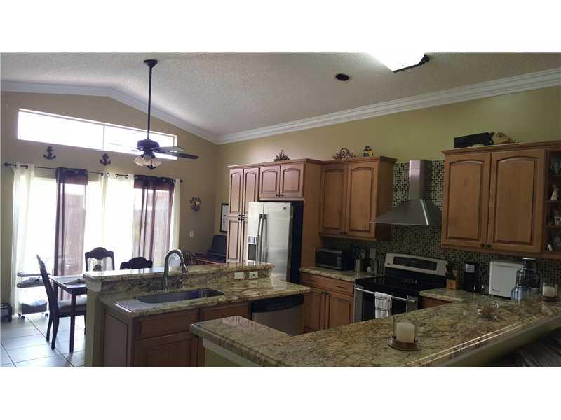 Beautifully kept Rose model. Many upgrades including custom/extended kitchen with granite and wood cabinets / SS appliances. Tile in common areas, crown molding, new wood lam. in master bedrm with large walk-in closet. Upgraded bathrooms. Located by the c ul-de-sac. Great family oriented neighborhood