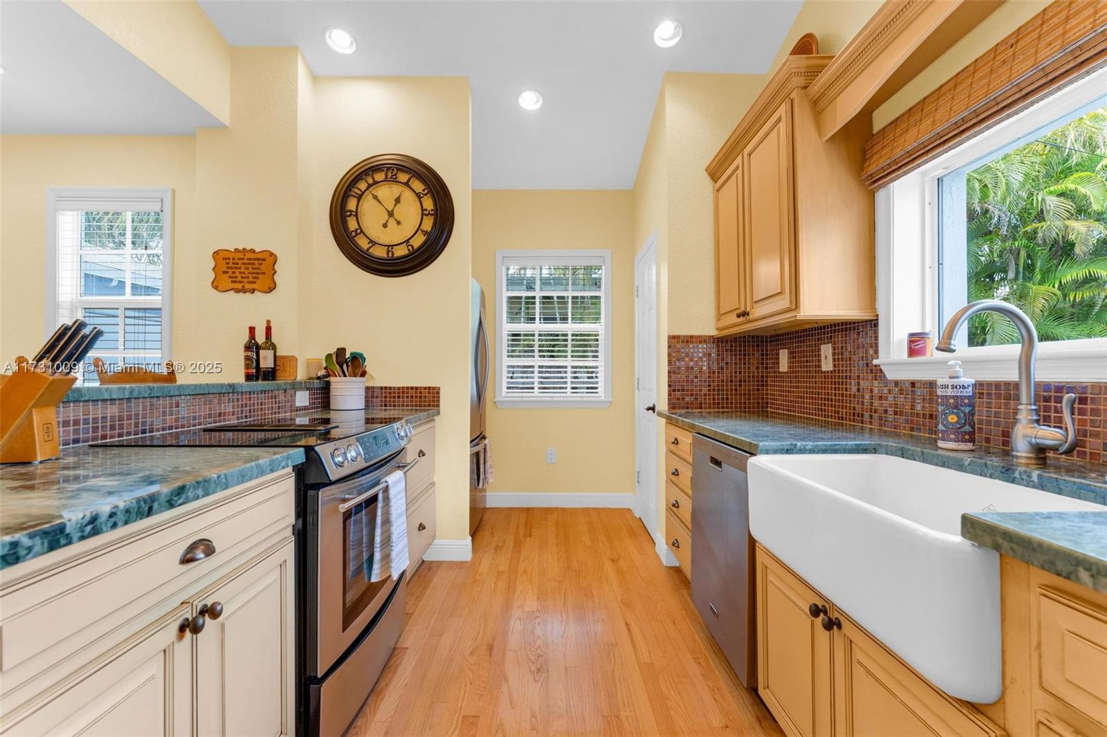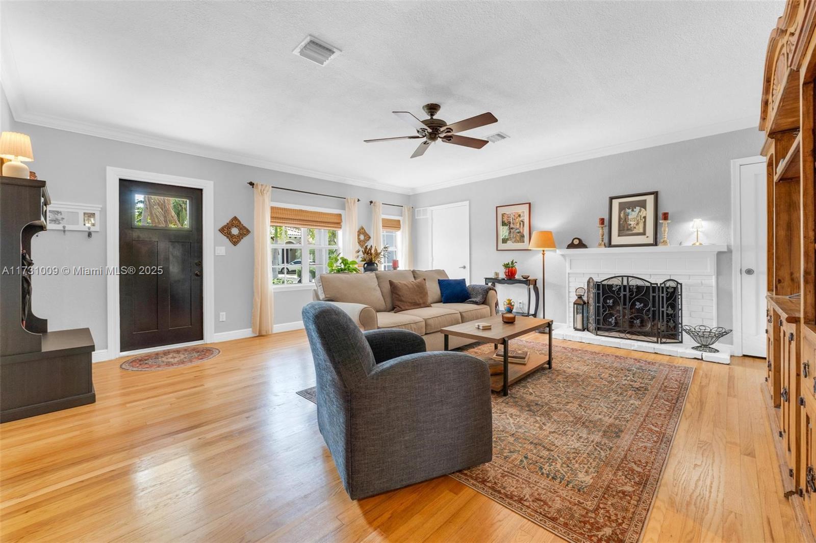 Welcome to this stunning 4-bedroom, 3-bathroom home! The main bedroom features an en suite bathroom for added convenience. You'll love the knockdown ceilings & walls, as well as the colonial style impact windows that add charm & character to the home. The Thomasville Tuscany kitchen cabinets w/ marble countertops are a chef's dream & the farmhouse sink from Shaws adds a touch of elegance. Step inside & be greeted by vaulted ceilings, hardwood floors throughout & a cozy wood-burning fireplace. The home has all new electrical & plumbing. The front roof was replaced in 2021, while the back roof was done in 2006. Roof straps provide added security, and the AC units were replaced in 2019. The hot water heater is from 2014. Located close to the famous Hollywood Beach and Broadwalk