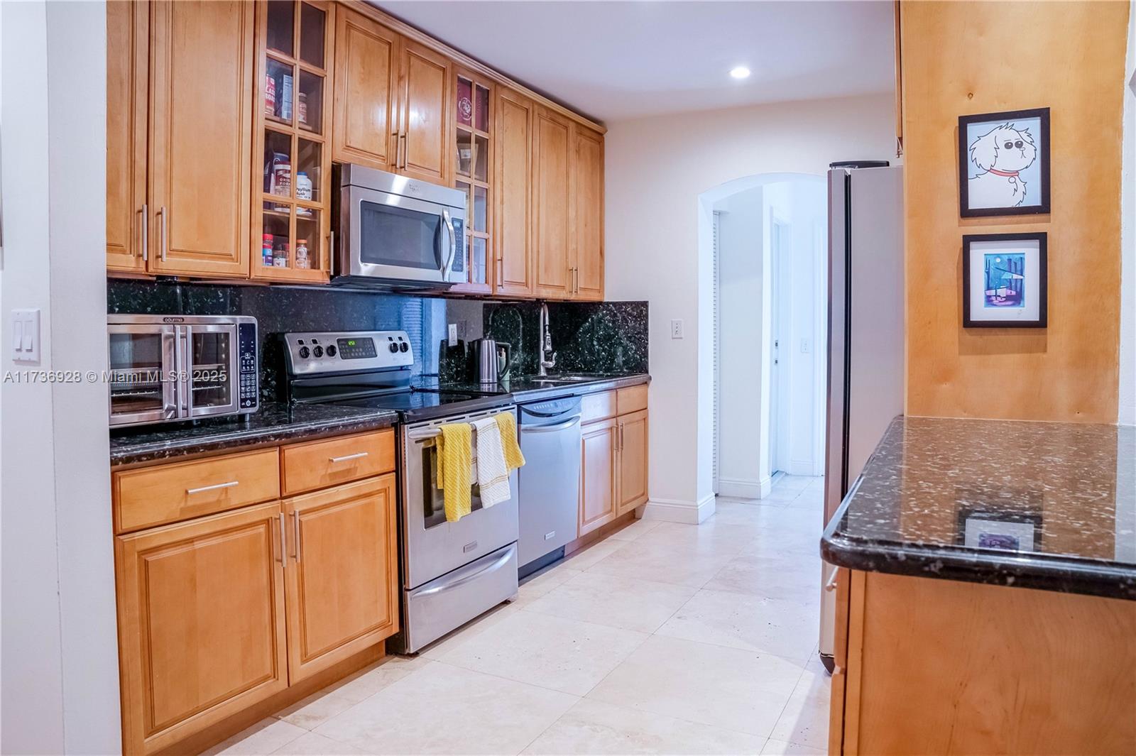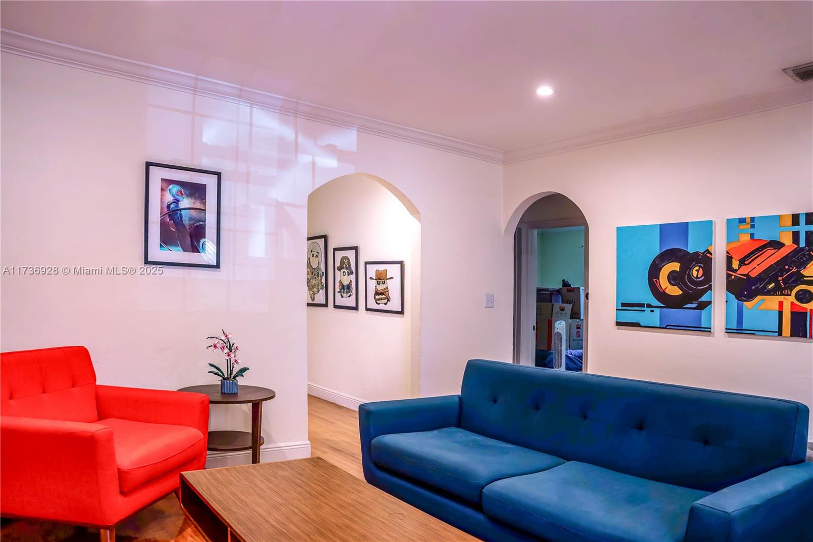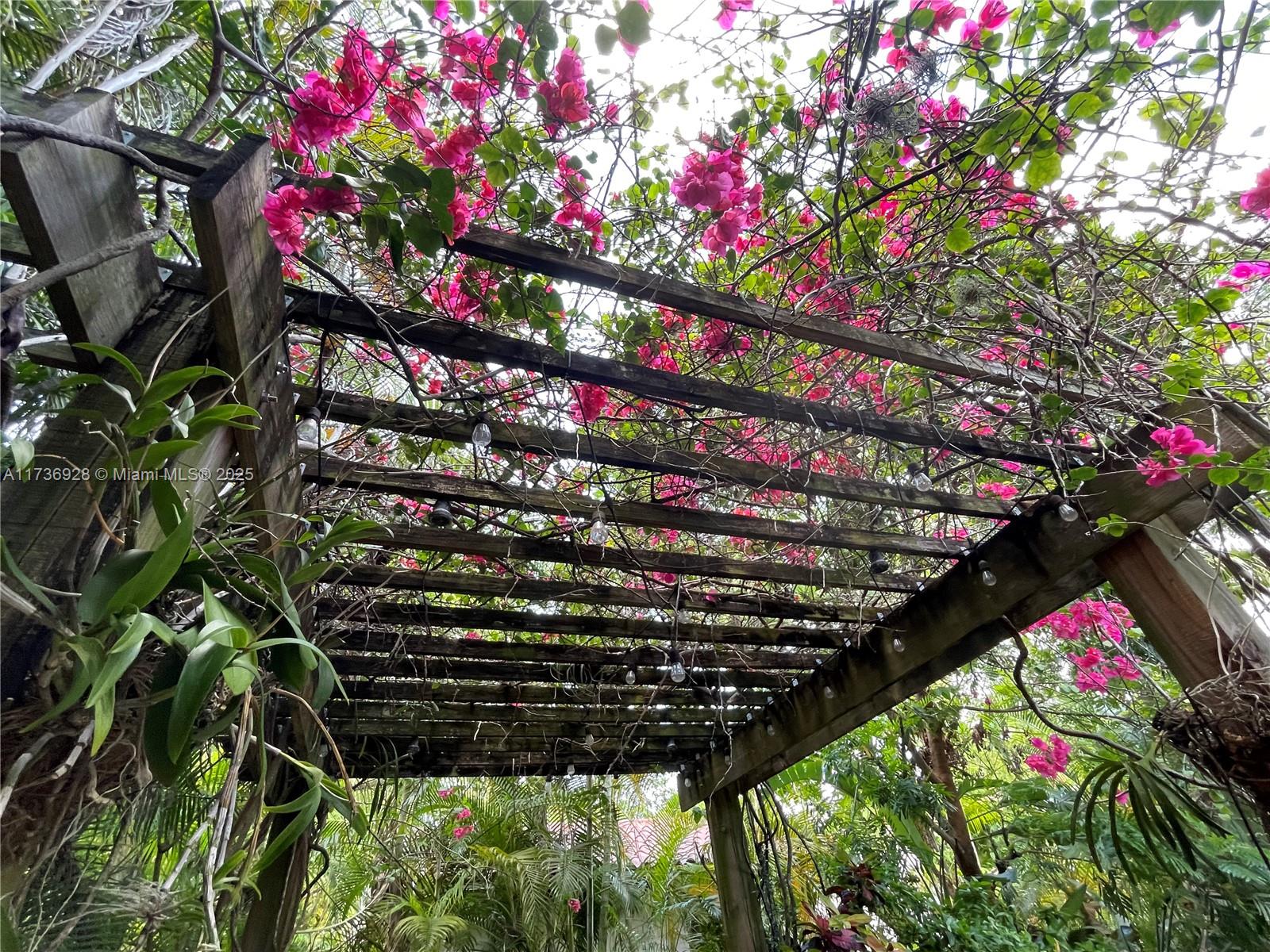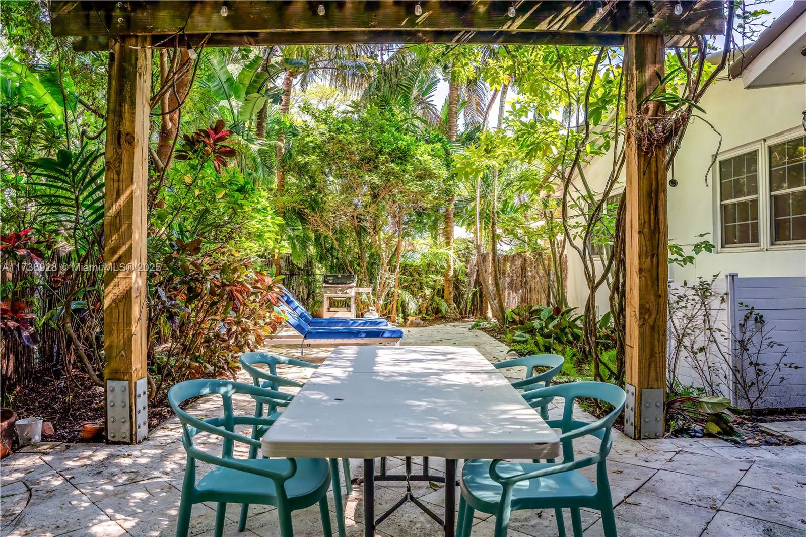 Step through this charming bougainvillea-draped entry and instantly feel transported to a lush retreat. This classic Mediterranean-inspired home boasts timeless curb appeal with its white stucco exterior and barrel-tile roof. While inside you’ll discover a bright, open-concept living space perfect for entertaining. The updated kitchen features granite counter tops, warm wood cabinetry, and a convenient pass-through to the dining area—ideal for hosting lively gatherings. Large windows flood the interior with natural light and offer tranquil views of the lush foliage outside. Outside, where a pergola-shaded patio invites you to dine alfresco surrounded by tropical greenery. Whether you’re lounging in the garden or with friends and family, this home delivers the ultimate Florida lifestyle.