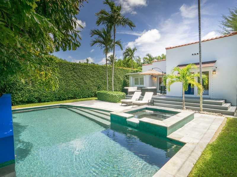 Blocks from the white sand beaches & minutes to Sobe & Lincoln Road. This completely updated gated 3BD/2BA 1-story pool home is oozing w/ charm w/ all of today's modern conveniences: stainless steel appliances, gas stove, mosaic tiled bathrooms, wood floo rs, central A/C, sound system, sprinkler, outdoor lighting, spectacular heated saltwater pool w/ hot tub & waterfall. High vaulted ceilings, lush landscaping & more!