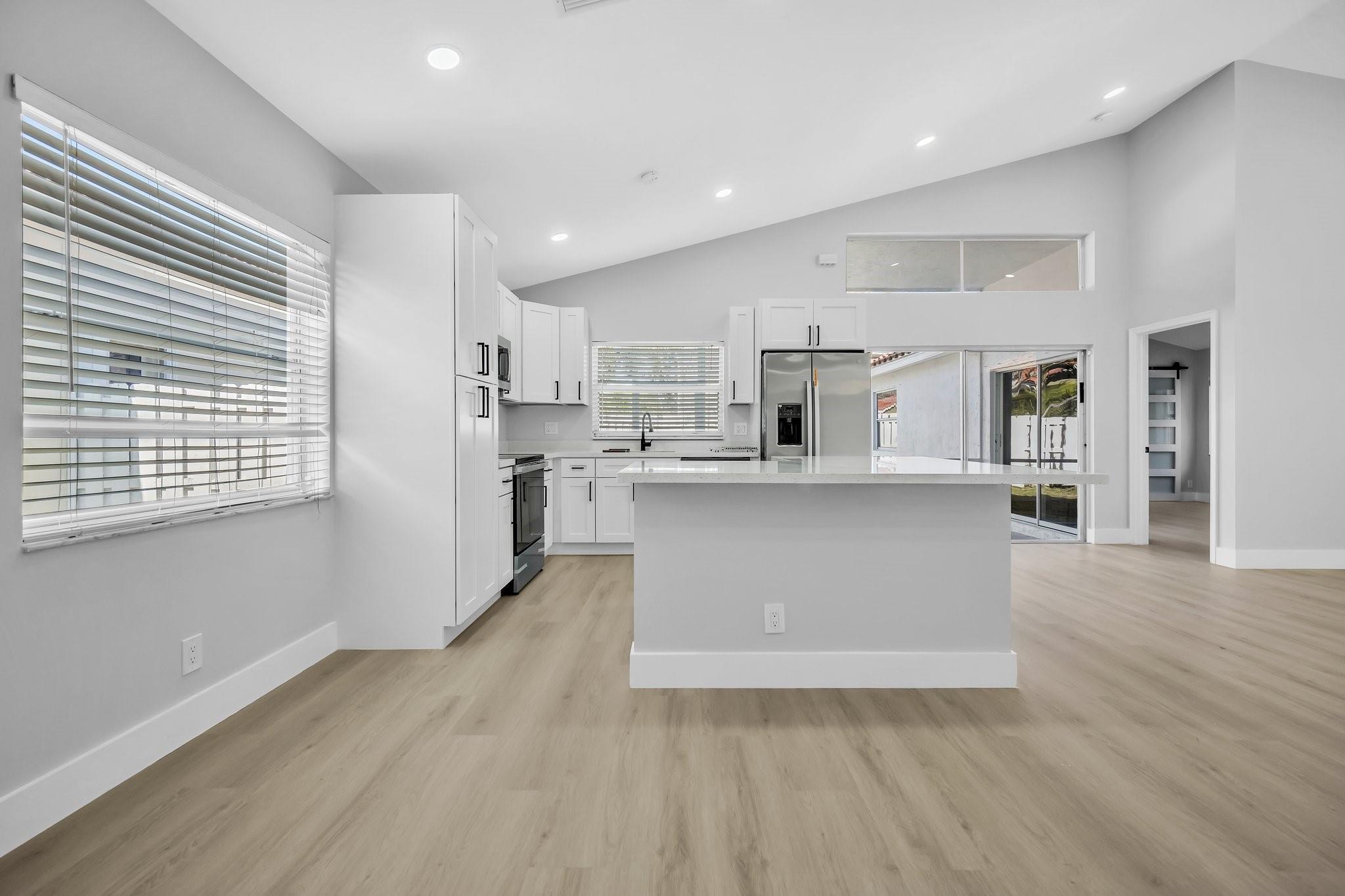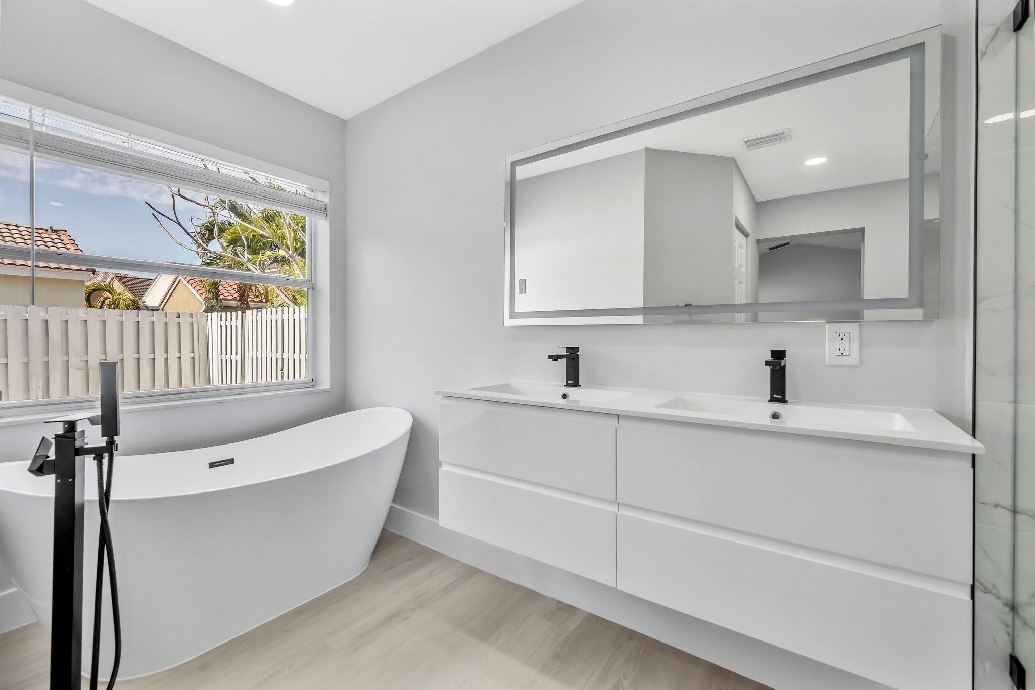 A spectacular 3 bedrooms 2 bathrooms single family home in a desirable gated community of North Lakes, in Weston, Florida, surrounded by A+ schools, multiple parks, and shopping areas. State of the art open floor plan kitchen that integrates the living room and dining room, with brand new kitchen cabinets, quartz countertop, and stainless steel appliances. The modern bathtub and the frameless glass shower doors brings a new touch to this amazing master bathroom. This property is a MUST SEE in person and it won't last in the market.