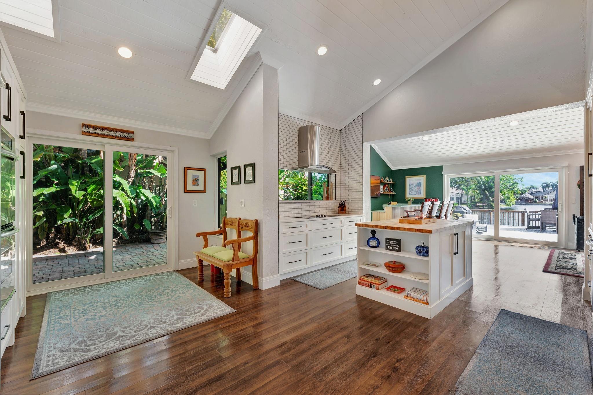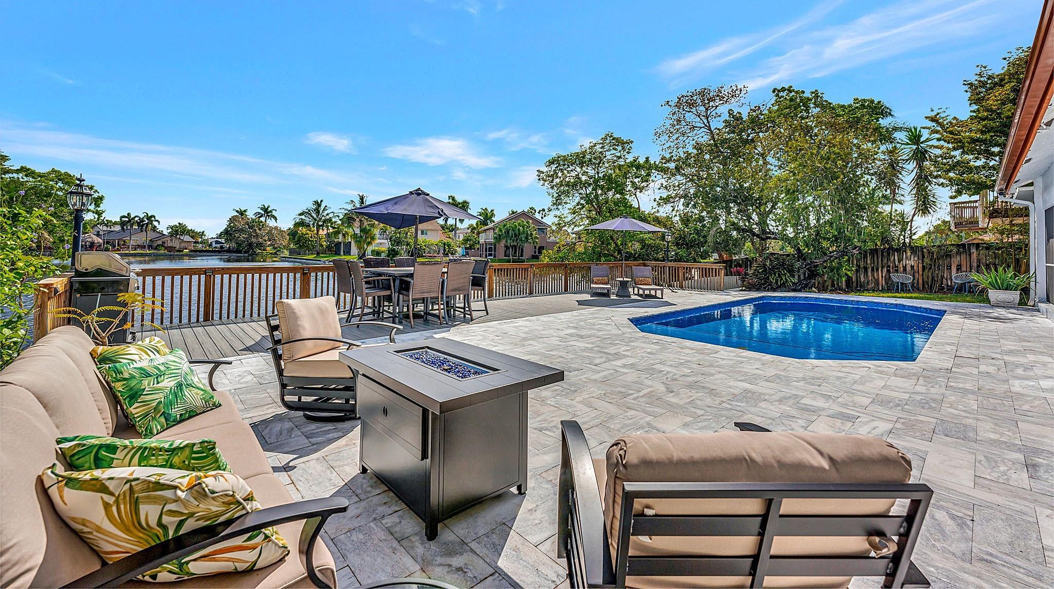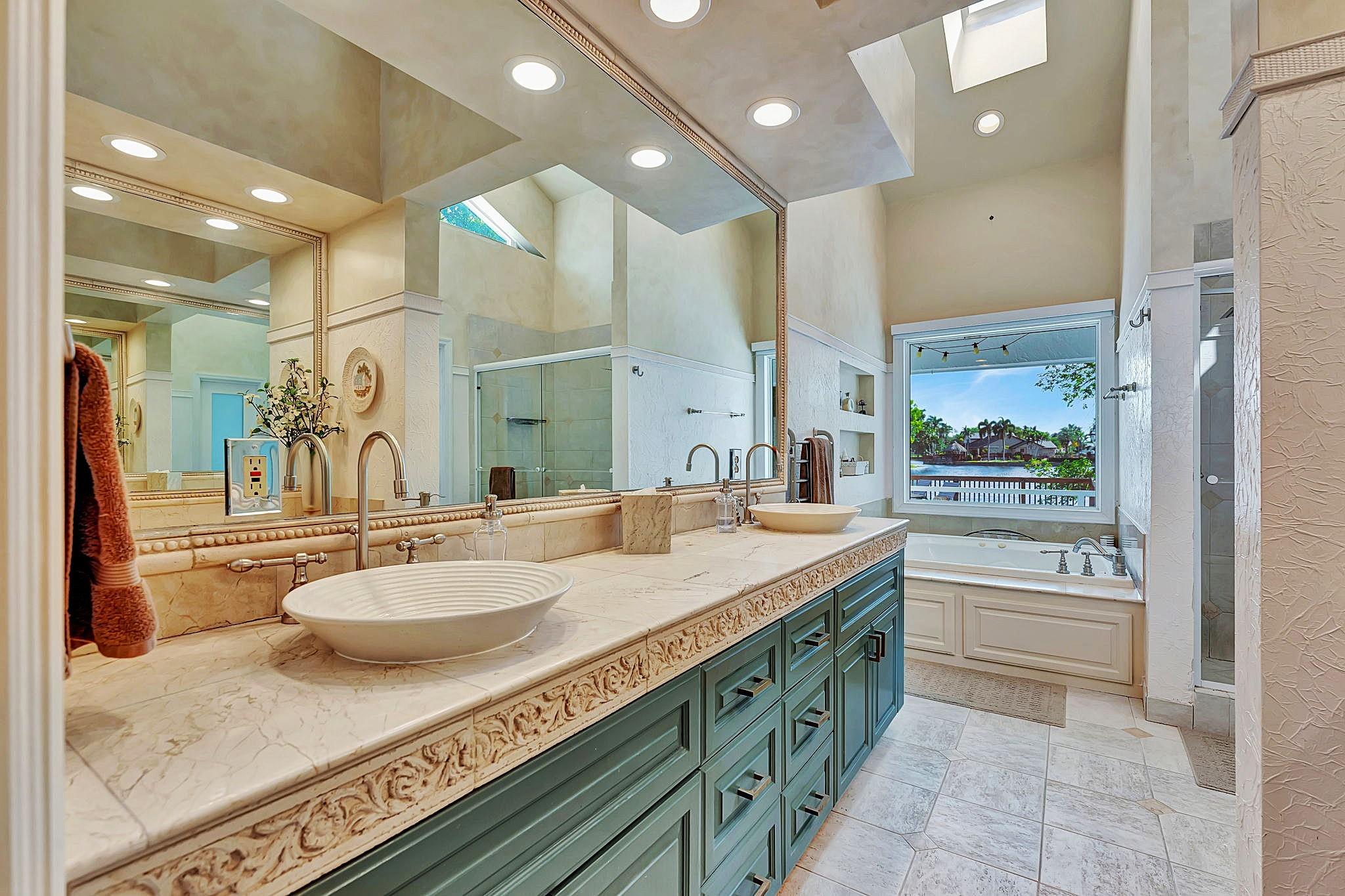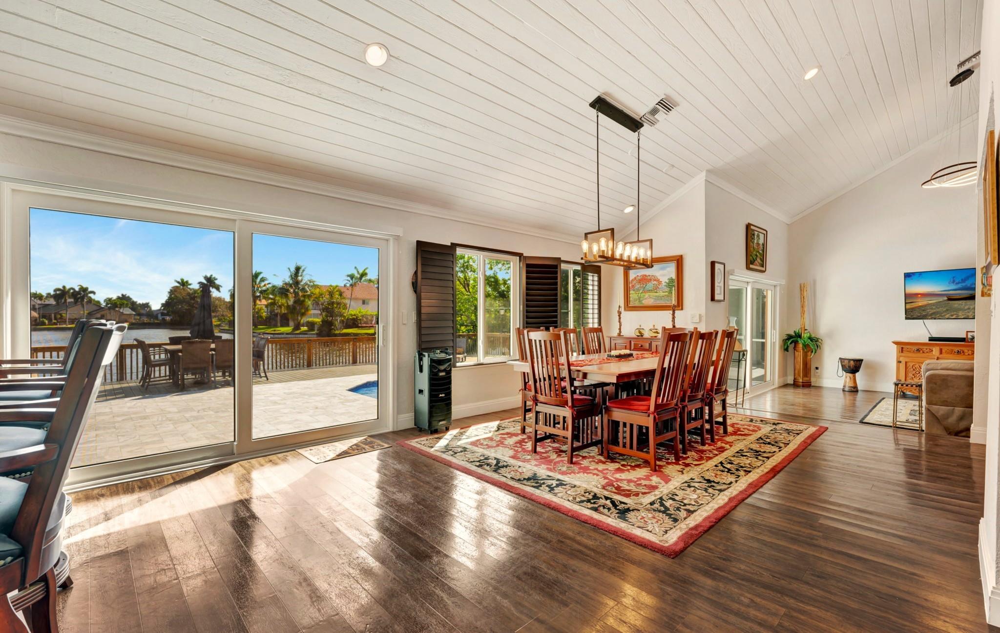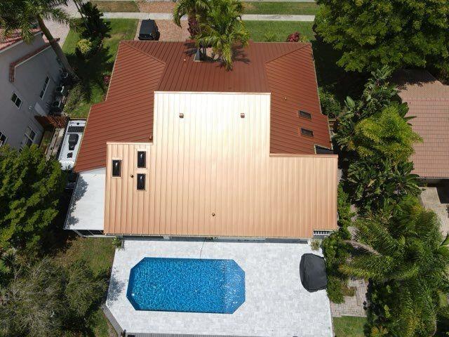 NEWLY PRICED Mediterranean-style home in Jacaranda Cay! Featuring a brand new metal roof, double pane high impact windows/doors/sliders, hard wood floors, beautiful heated pool, TREX deck overlooking beautiful views of the canal, outdoor marble pool pavers, skylights in kitchen and primary bath (all impact), new A/C, updated electrical panel, PVC sewer pipes, full house water filtration system, exterior recently painted, 2 car garage (also impact), and room for your boat/RV on side of the house (pavered). Everything done with permits! Come see this move in ready home and get ready for cul-de-sac living. Enjoy your lush landscaping, updated kitchen for entertaining, wet bar for all the parties you'll host, vaulted ceilings, and true outdoor living with built in BBQ and screened in lanai.
