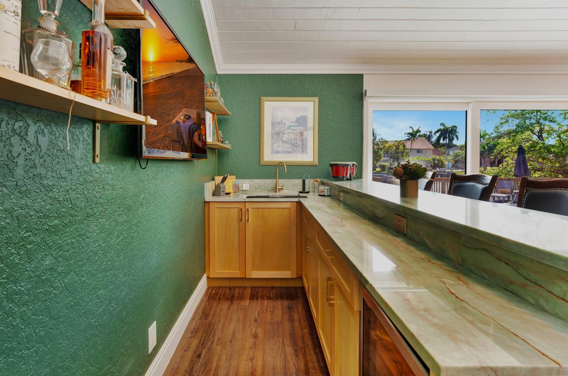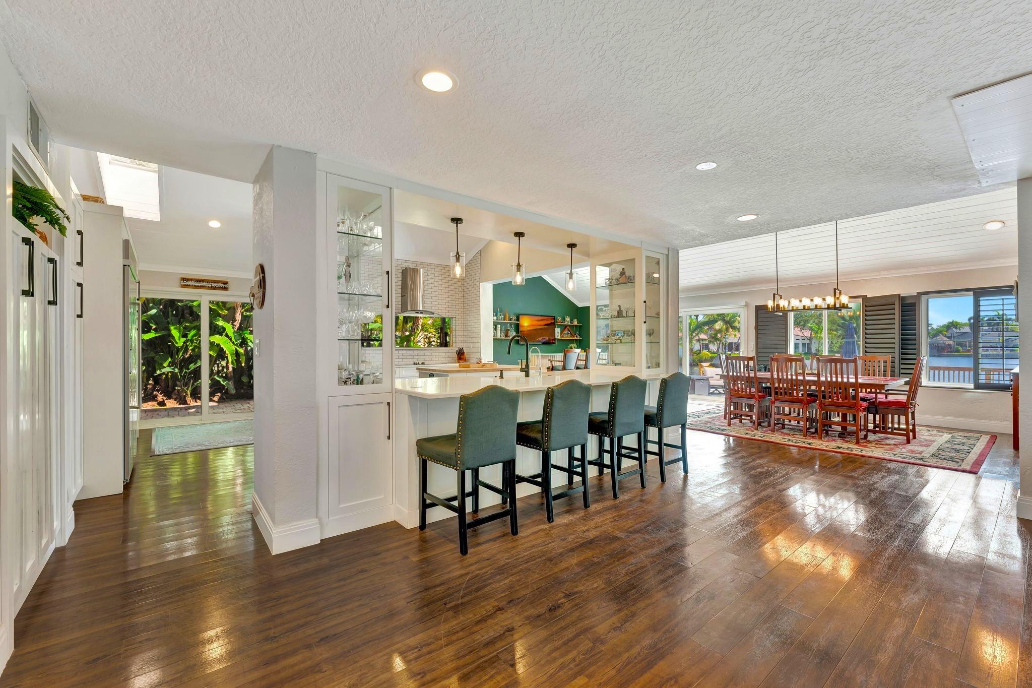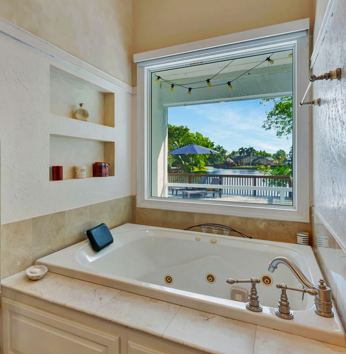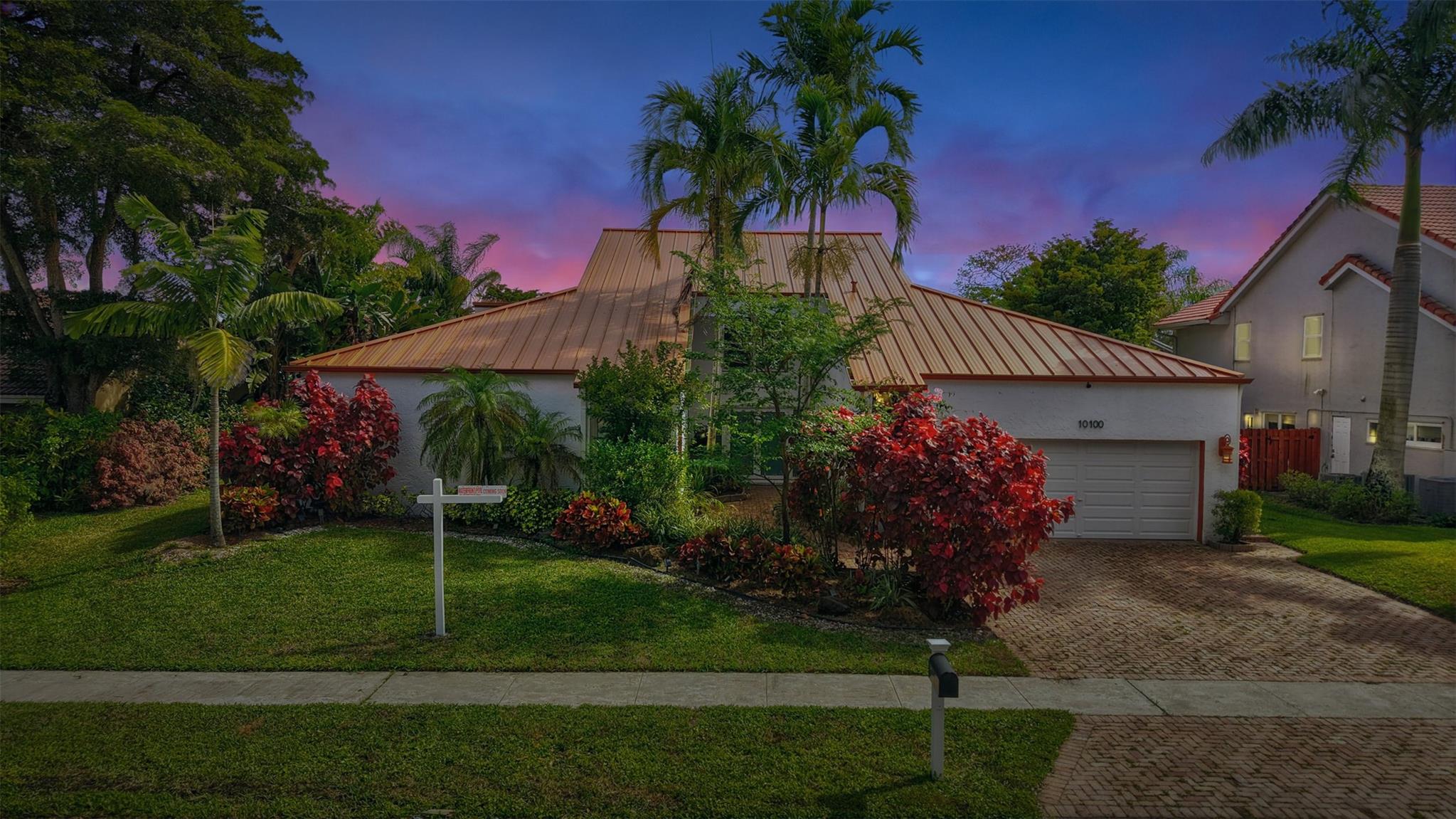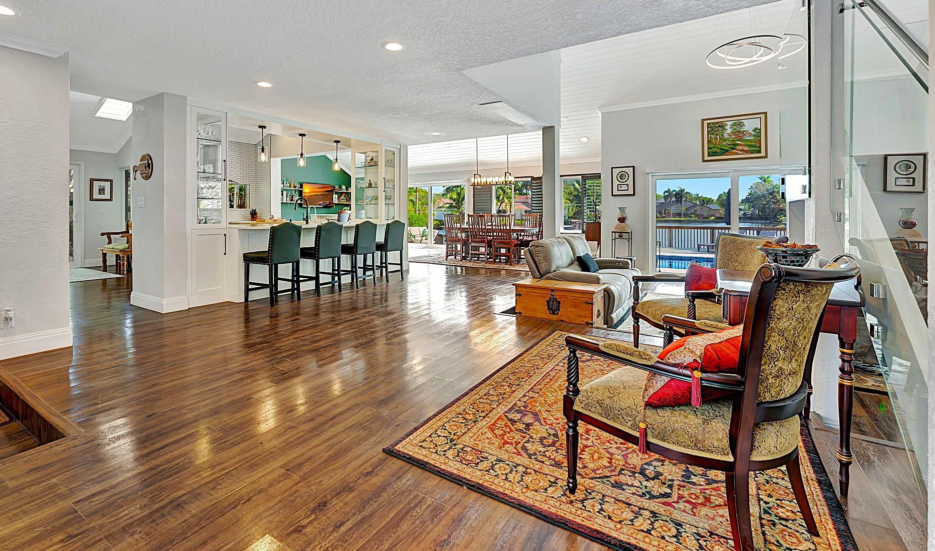 NEWLY PRICED Mediterranean-style home in Jacaranda Cay! Featuring a brand new metal roof, double pane high impact windows/doors/sliders, hard wood floors, beautiful heated pool, TREX deck overlooking beautiful views of the canal, outdoor marble pool pavers, skylights in kitchen and primary bath (all impact), new A/C, updated electrical panel, PVC sewer pipes, full house water filtration system, exterior recently painted, 2 car garage (also impact), and room for your boat/RV on side of the house (pavered). Everything done with permits! Come see this move in ready home and get ready for cul-de-sac living. Enjoy your lush landscaping, updated kitchen for entertaining, wet bar for all the parties you'll host, vaulted ceilings, and true outdoor living with built in BBQ and screened in lanai.