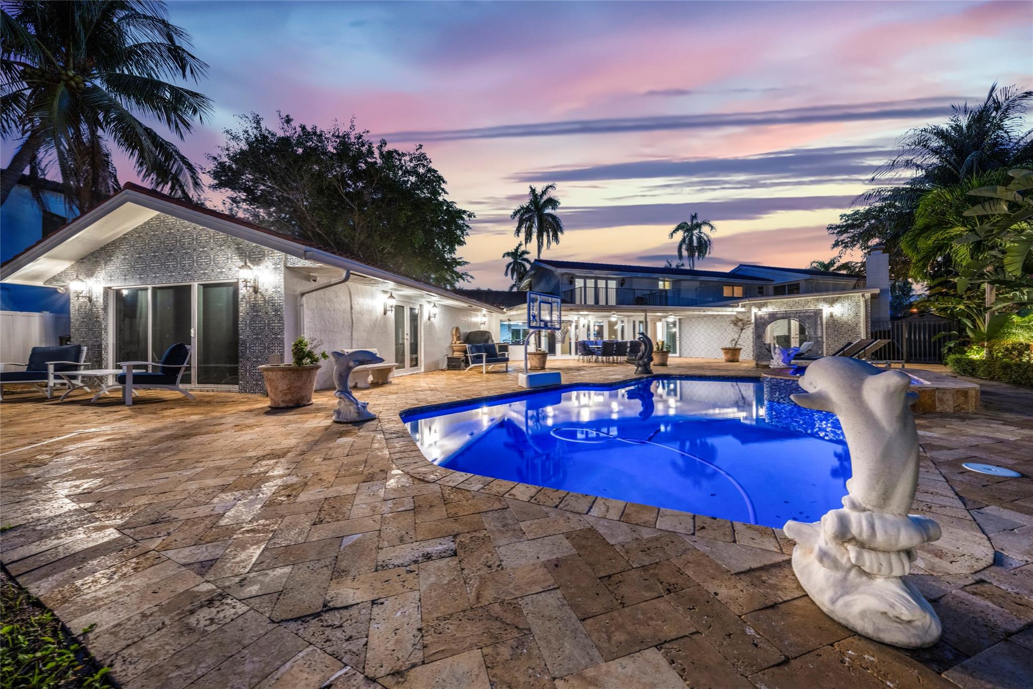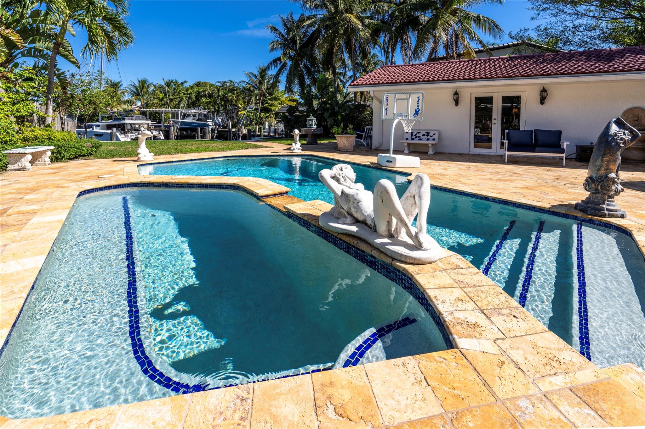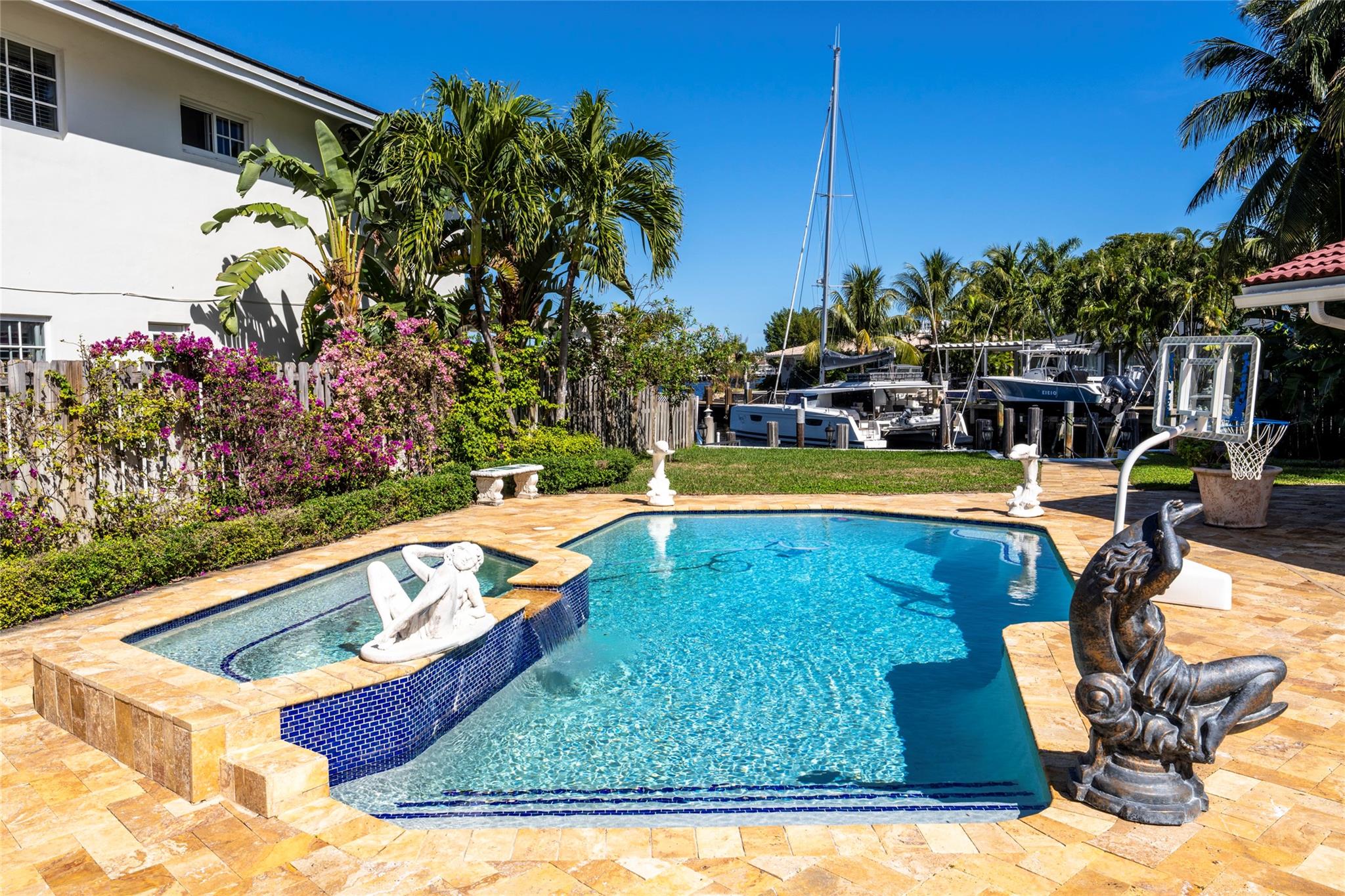 Discover the pinnacle of waterfront luxury in sought-after Santa Barbara Shores! This 4-bedroom, 4-bath home offers an oversized den, a 2-car garage, and stunning marble floors that exude elegance. The expansive primary suite boasts walk-in closets and a spa-like bath fit for a five-star retreat. Boater's paradise with DIRECT OCEAN ACCESS WITH NO FIXED BRIDGES! Minutes from the Hillsboro Inlet. Step into a Mediterranean-inspired backyard, with a sparkling pool, spa, lush landscaping, and a private 55FT dock. Designed for effortless entertaining, this home features a spacious floor plan, formal dining room, a fireplace, and a chic wet bar. With impact windows and doors, plus a prime location near the beach, shopping, dining, and the airport, this is the ultimate South Florida dream home!