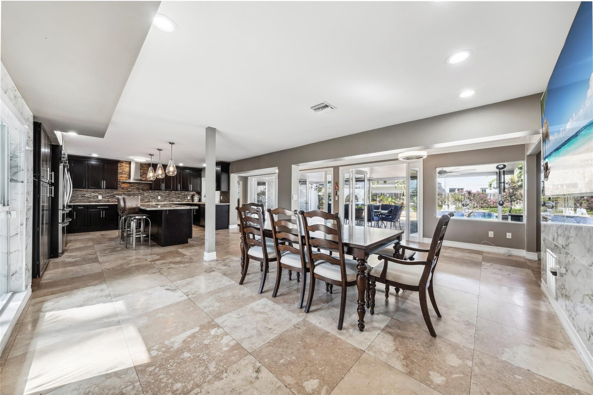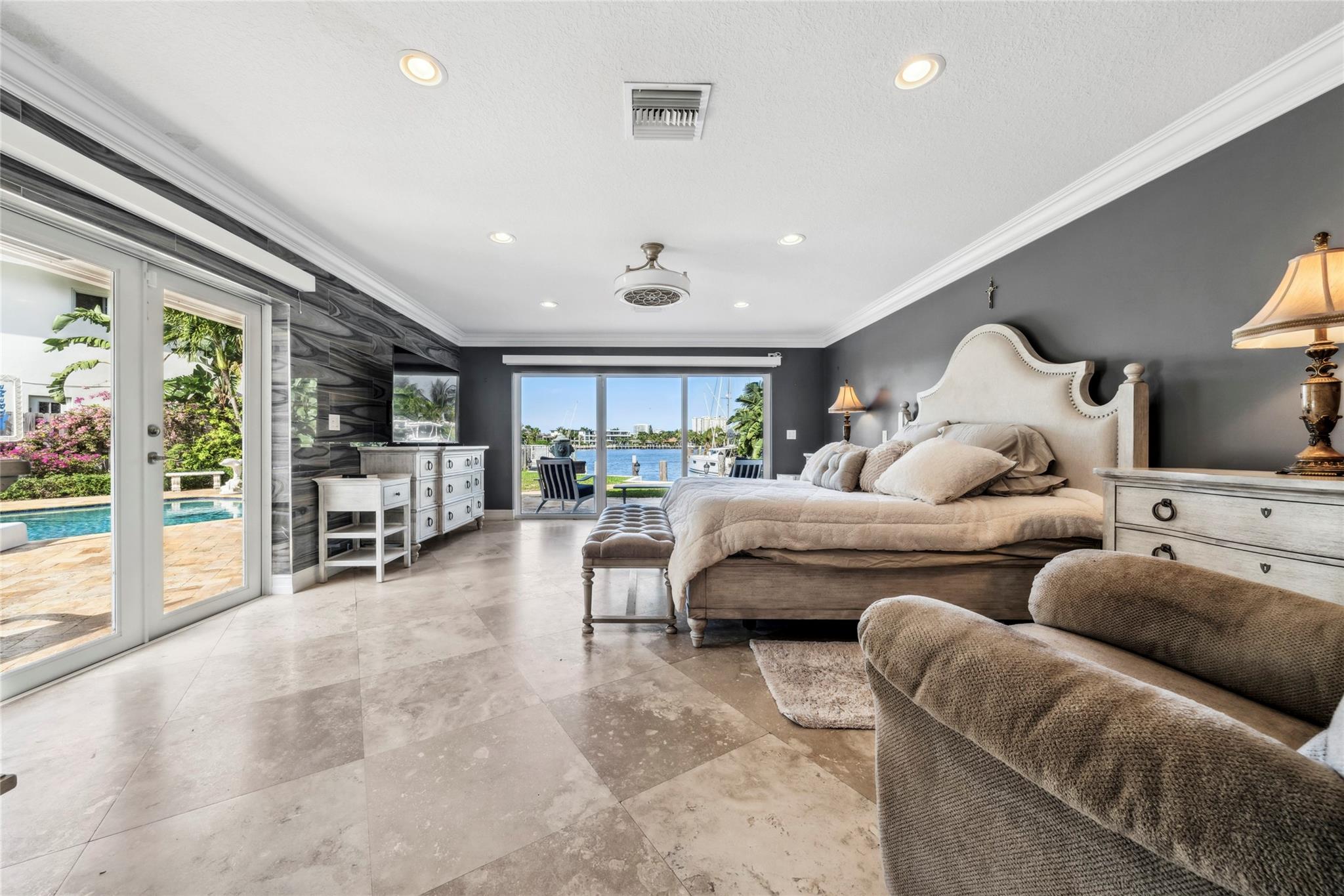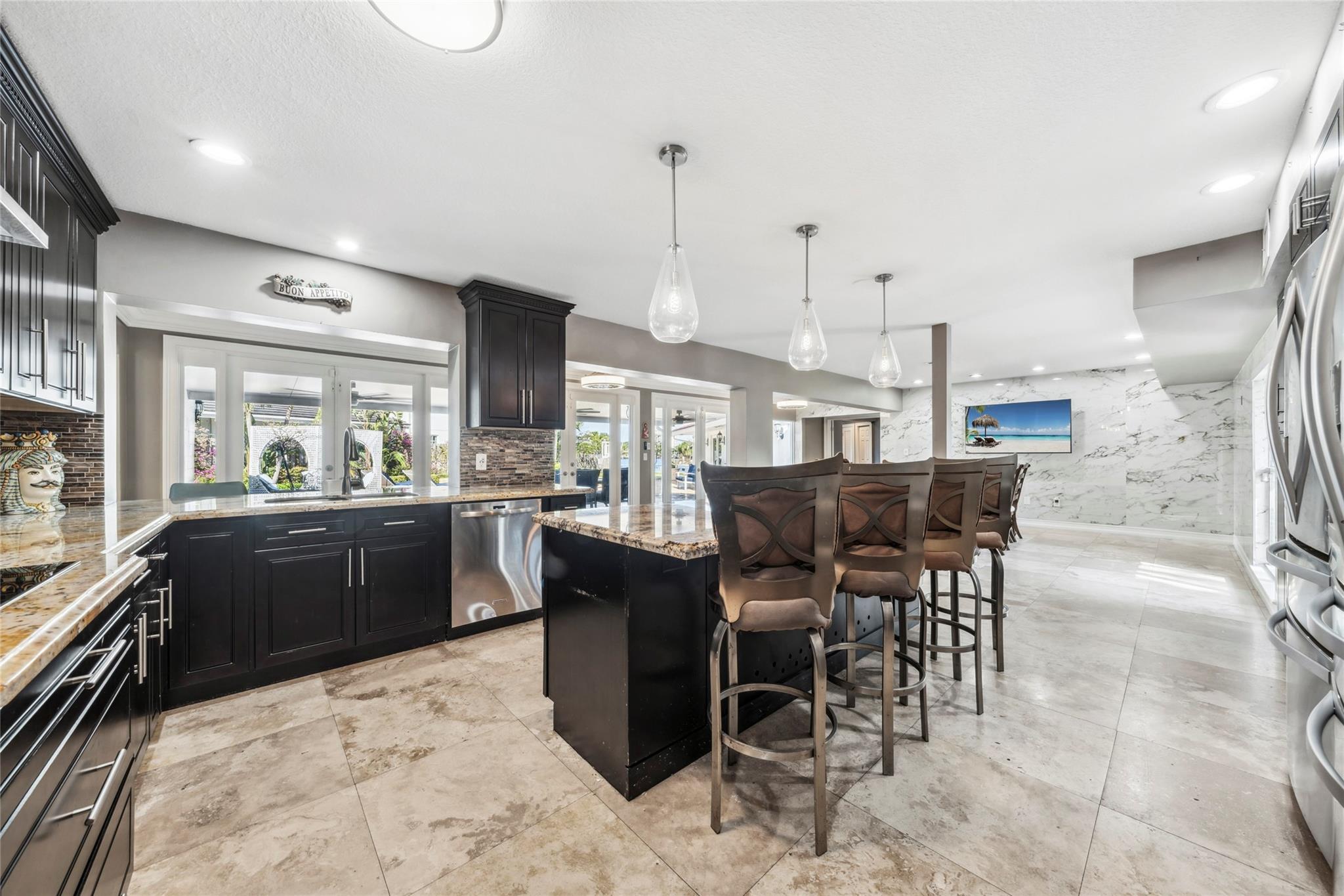 Discover the pinnacle of waterfront luxury in sought-after Santa Barbara Shores! This 4-bedroom, 4-bath home offers an oversized den, a 2-car garage, and stunning marble floors that exude elegance. The expansive primary suite boasts walk-in closets and a spa-like bath fit for a five-star retreat. Boater's paradise with DIRECT OCEAN ACCESS WITH NO FIXED BRIDGES! Minutes from the Hillsboro Inlet. Step into a Mediterranean-inspired backyard, with a sparkling pool, spa, lush landscaping, and a private 55FT dock. Designed for effortless entertaining, this home features a spacious floor plan, formal dining room, a fireplace, and a chic wet bar. With impact windows and doors, plus a prime location near the beach, shopping, dining, and the airport, this is the ultimate South Florida dream home!