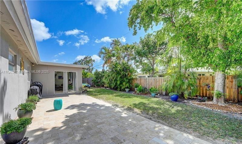 Welcome to this beautifully maintained 3-bedroom, 2-bathroom home in the highly sought-after Lyons Park neighborhood. Featuring an open-concept kitchen with modern white cabinetry. Enjoy indoor-outdoor living with a fenced backyard, a brand-new travertine deck, and lush tropical fruit trees, perfect for entertaining or relaxing in your own private oasis. Inside, you'll find tile flooring throughout and plenty of natural light. This home offers easy access to shopping, dining, and the beach. No HOA and no rental restrictions make it a great opportunity for both homeowners and investors!
