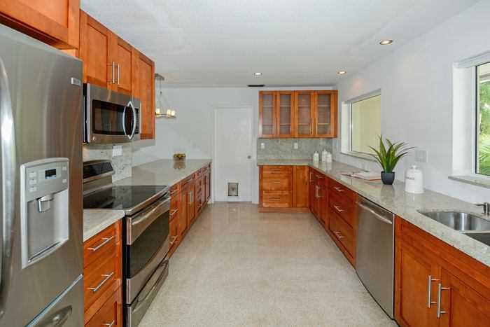 Boater's... Come see this beautiful & well maintained home w/ 75' of dock space, ocean access & no fixed bridge's! This home boasts new state of the art kitchen & baths including GE profile stainless appliances, soft touch closing draws, pullouts & high e nd granite. Enjoy the huge outside deck, BOSE Life Style unit & surround sound speakers, impact doors & windows, newer roof, salt water pool system, desending pool waterfall & heater, security system, knockdown ceilings, paver circular driveway & patio.