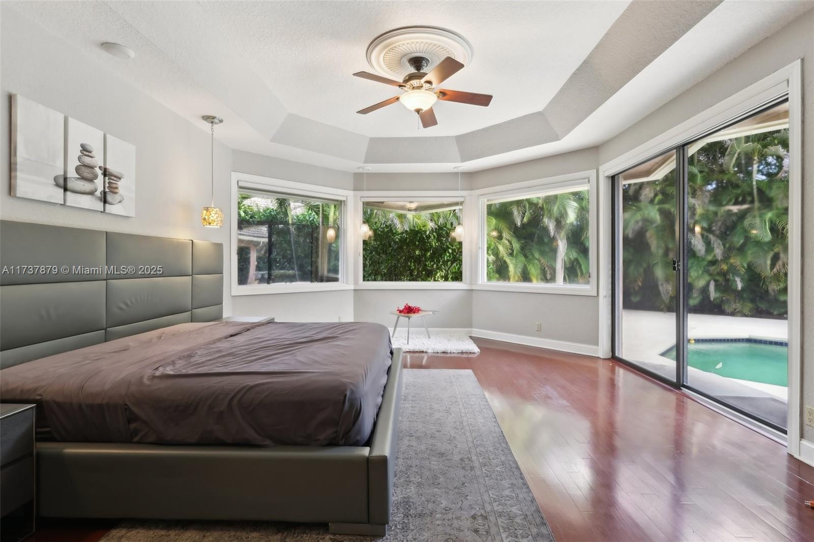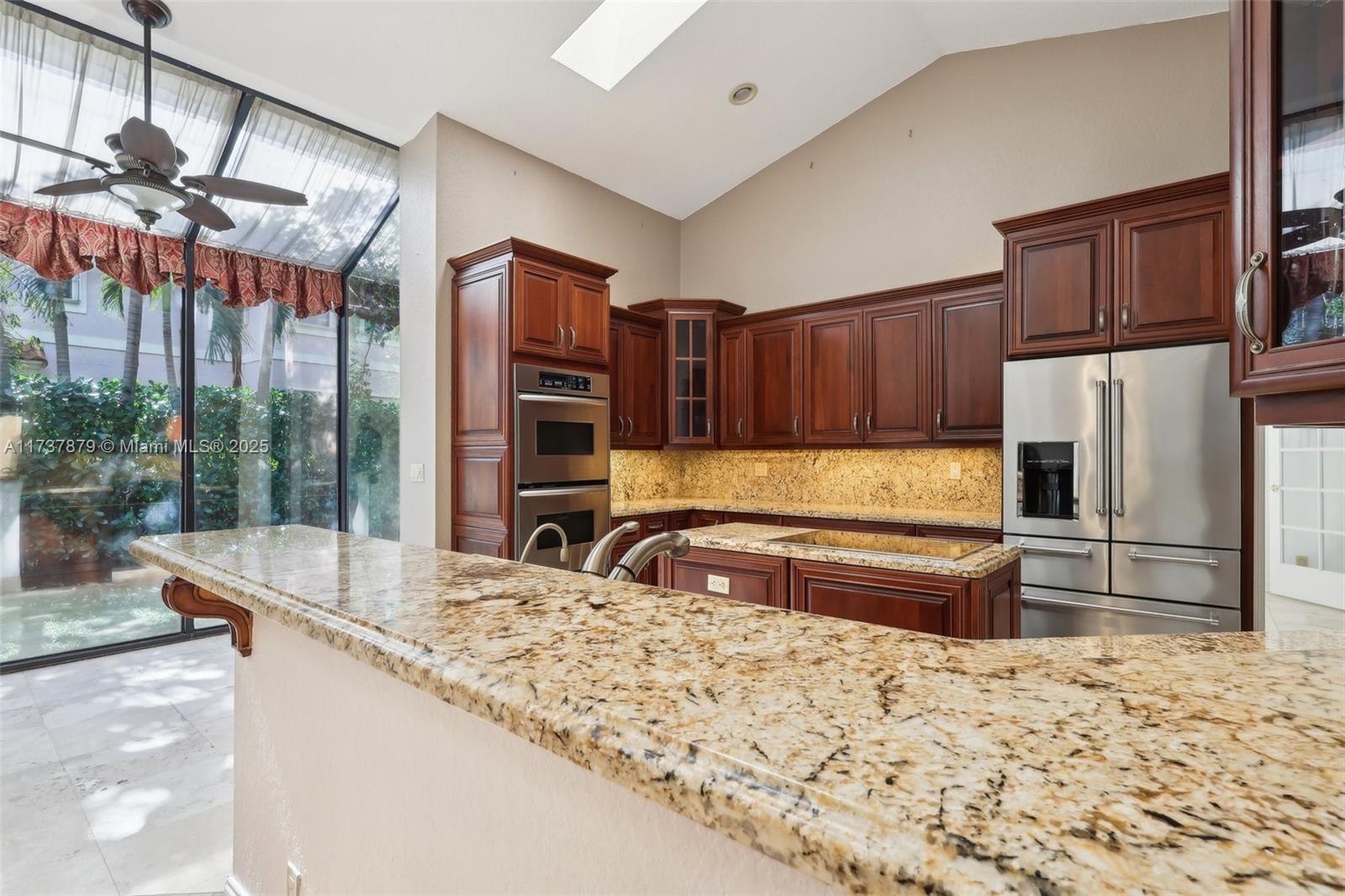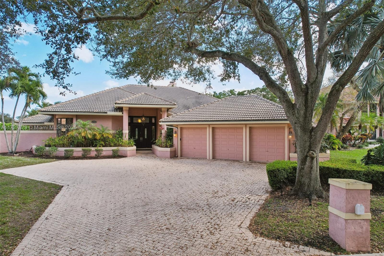 NEW PRICE SAVE 100K+!! Beautiful custom built 5/4.5/3 home in Estates section of Eagle Trace secure gated community! This fabulous neighborhood full of lovely mature landscape borders a picturesque golf course. Enter this spacious open plan with high vaulted ceilings, travertine & hardwood floors plus a limestone fireplace! Formal dining room w/ French doors. Awesome kitchen with granite counters and a glass-enclosed breakfast nook. Huge master suite has 2 walk-in closets and luxurious bathroom with dual shower plus large tub & bidet. 2nd bedroom on this side of split plan perfect for nursery or office. Wet bar with window great for entertaining. Private oasis has heated pool & spa, outdoor shower and backs up to golf course. New A/C & electric panels. 5100+ total SF! Make an offer today!