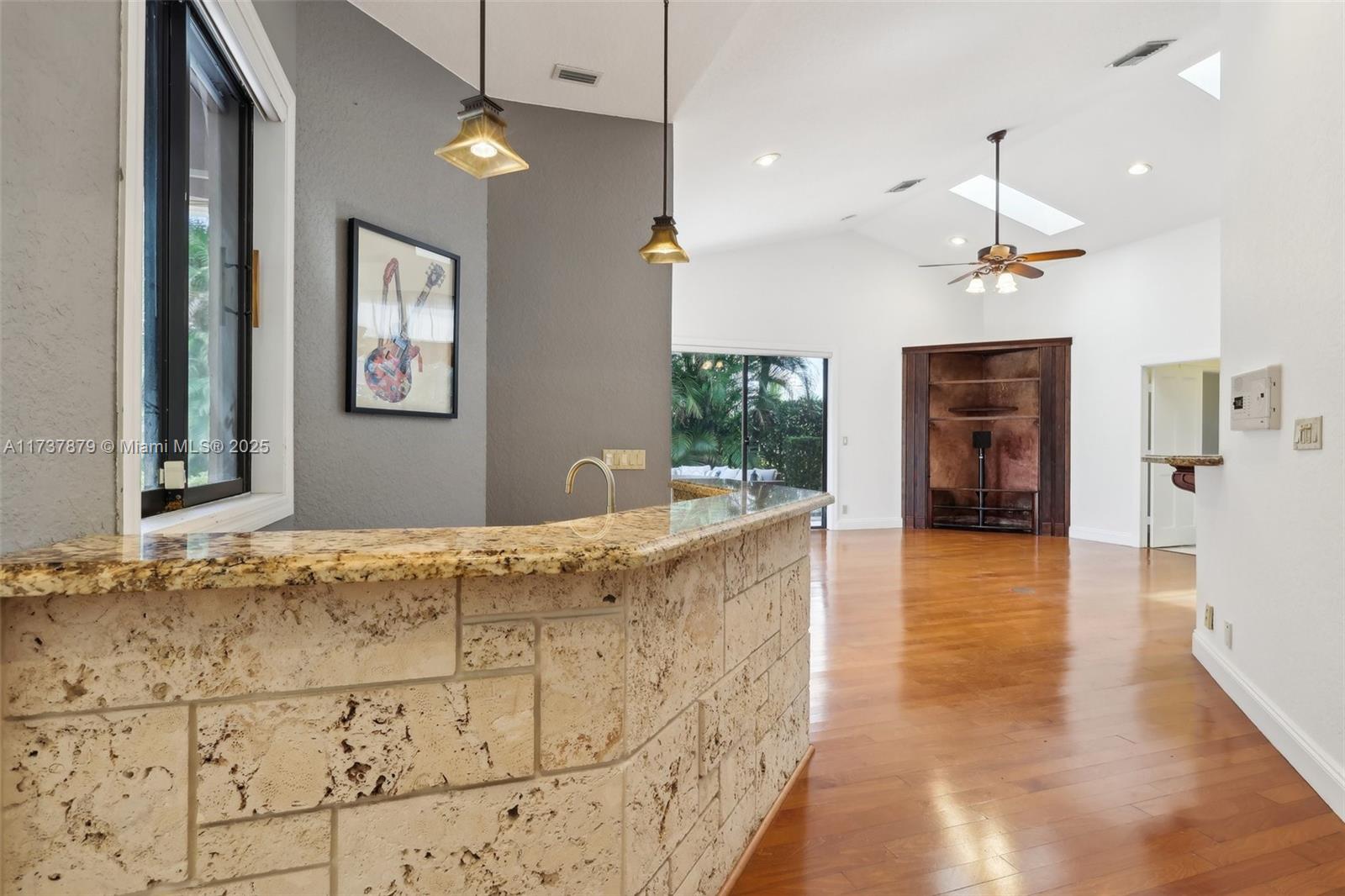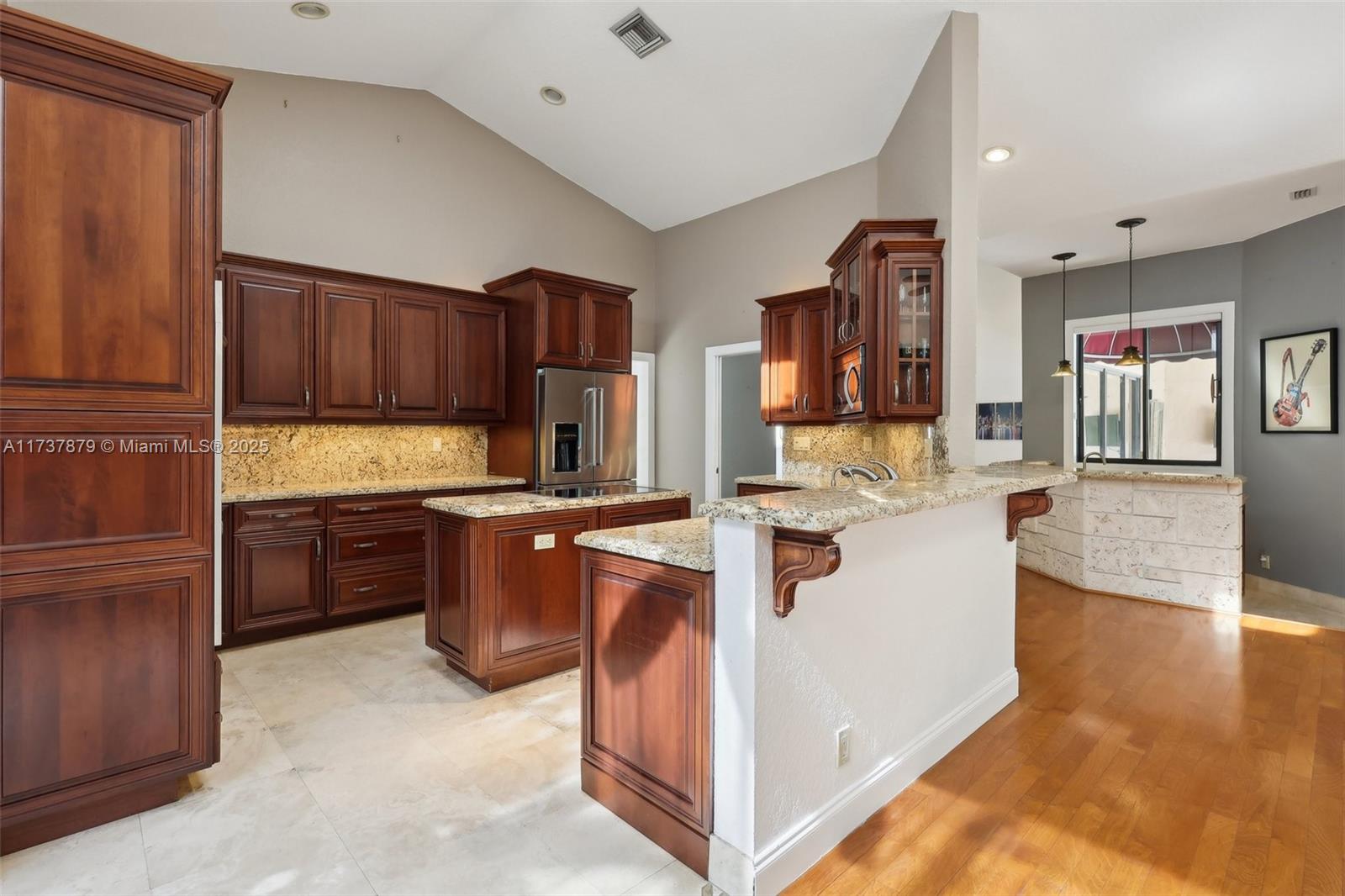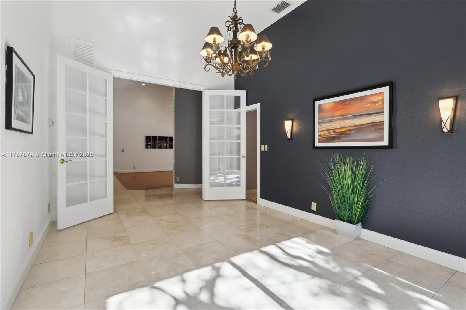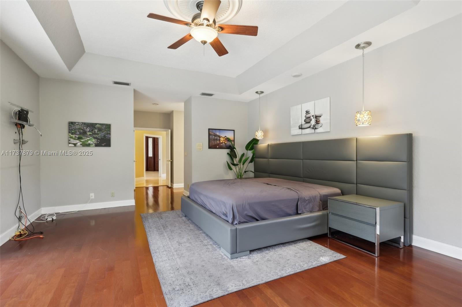 NEW PRICE SAVE 100K+!! Beautiful custom built 5/4.5/3 home in Estates section of Eagle Trace secure gated community! This fabulous neighborhood full of lovely mature landscape borders a picturesque golf course. Enter this spacious open plan with high vaulted ceilings, travertine & hardwood floors plus a limestone fireplace! Formal dining room w/ French doors. Awesome kitchen with granite counters and a glass-enclosed breakfast nook. Huge master suite has 2 walk-in closets and luxurious bathroom with dual shower plus large tub & bidet. 2nd bedroom on this side of split plan perfect for nursery or office. Wet bar with window great for entertaining. Private oasis has heated pool & spa, outdoor shower and backs up to golf course. New A/C & electric panels. 5100+ total SF! Make an offer today!
