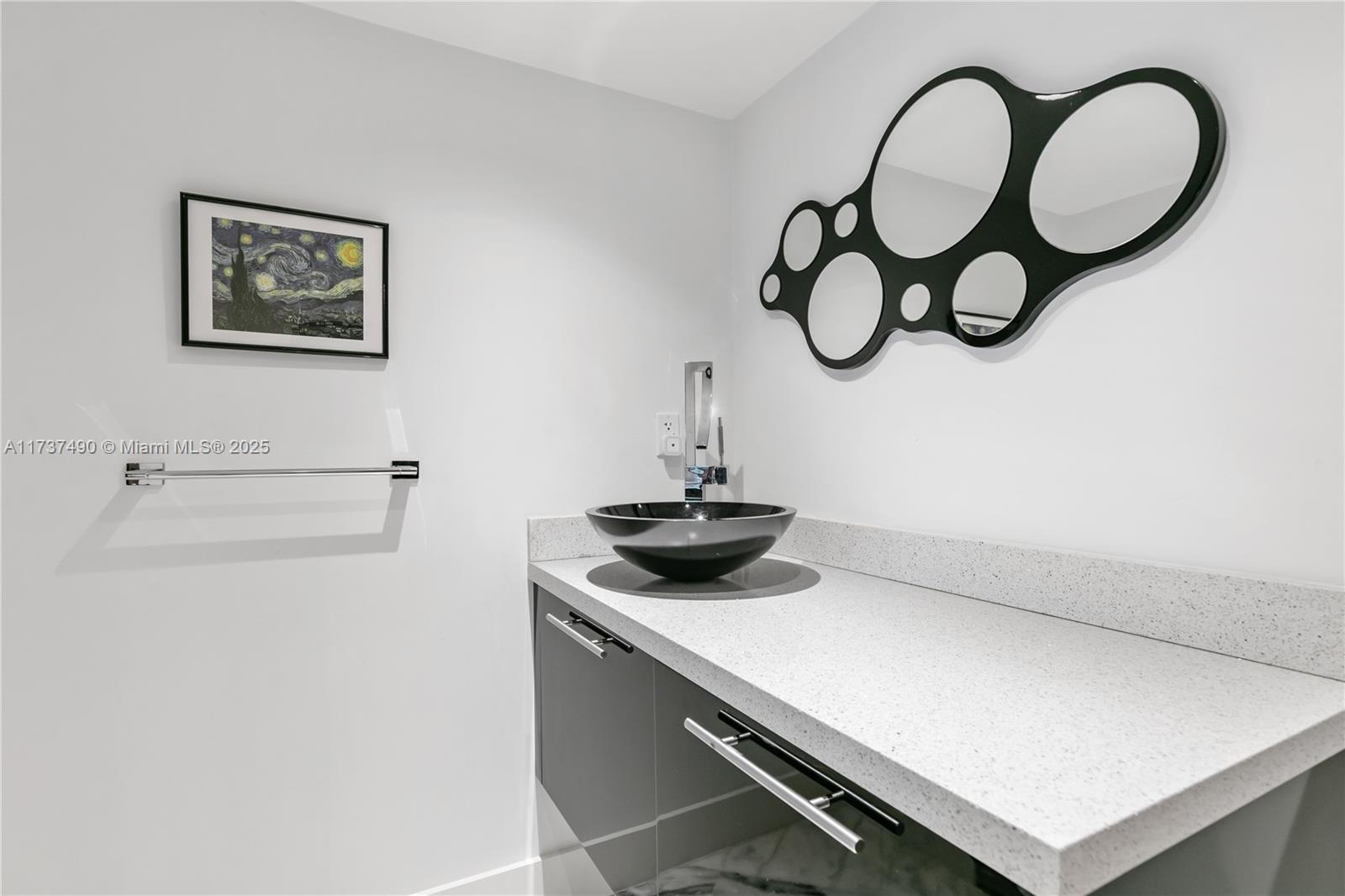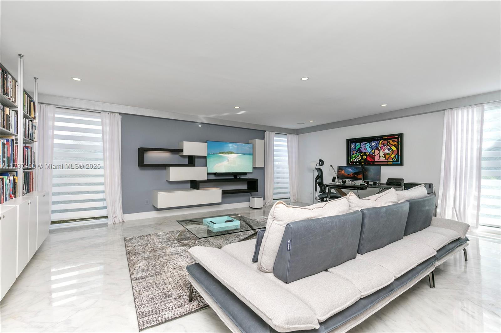 Located in Bay Harbor Islands, one of the most coveted neighborhoods in Miami, is this 5090sqft mid-century modern home rebuilt in 2009! This exquisite property has 4 large ensuite bedrooms, an expansive office and a spacious den. Other features include high ceilings, impact windows, natural woods, stone accents, smart home technology, surround sound, electric blinds, and redone electric & plumbing. The chef's kitchen has top-of-the-line Miele and Subzero appliances. The primary suite includes 3 closets, a spa-like bath with a multi jetted shower and a balcony. Paradise is in the backyard with a custom pool, jacuzzi, sun shelf, summer kitchen, pergola, pool bath, lush landscaping & a butterfly garden. Amazing location: walk to the beach, cafes, shopping, A+ schools, tennis & parks. NO HOA