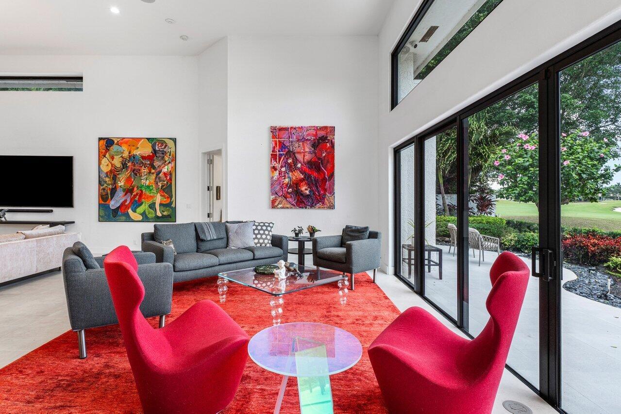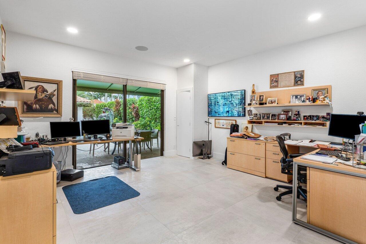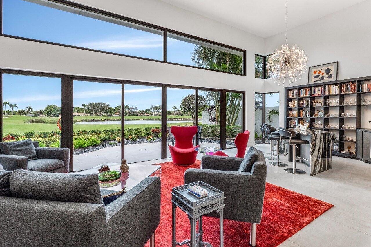 Discover this exquisite one-story courtyard home in the desirable Royal Palm Cove in The Polo Club of Boca Raton. This elegant recently renovated home boasts 4 bedrooms and 4 baths. The main house includes 3 bedrooms and 3 baths and the private guest house features its own bedroom, bath, and kitchenette.Spacious open floor plan with 4,020 sq. ft. under air, a large 2-car garage with space for a golf cart, and breathtaking lake and golf course views! Enhanced with hurricane impact windows and doors, a new roof in 2018, and a full house generator (2020) with a 500- gallon tank. Additional highlights include a Sonos built-in sound system, a summer kitchen, and a Lucid car charger. Golf cart is also available for sale.