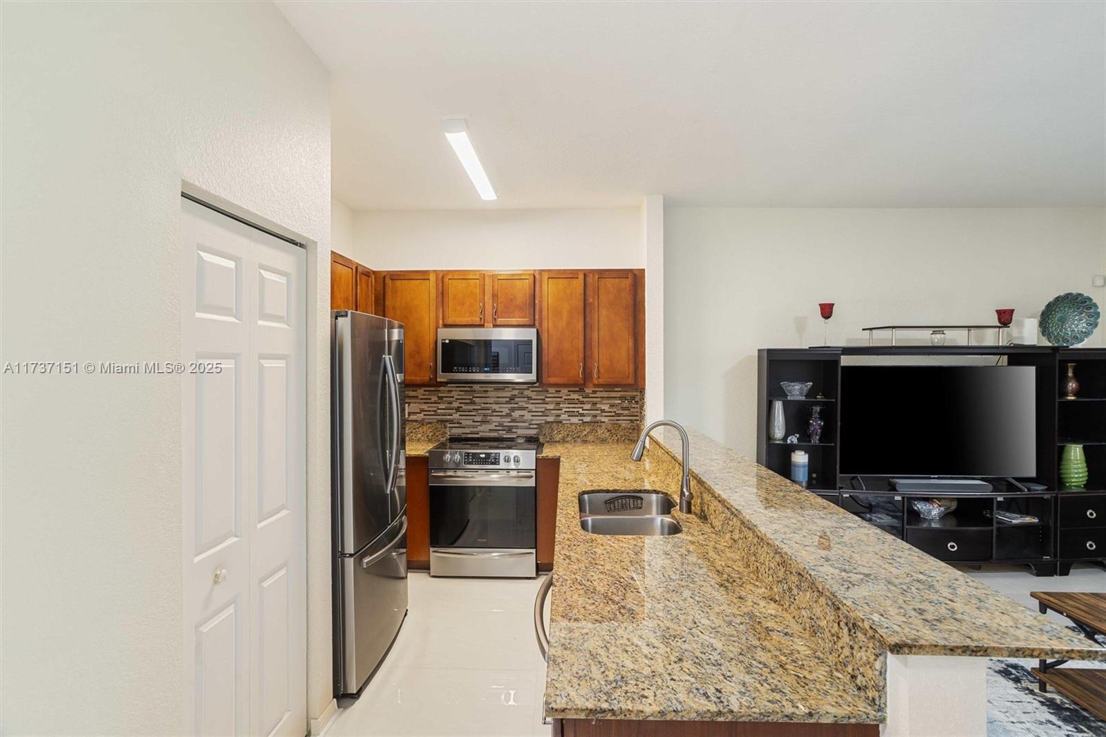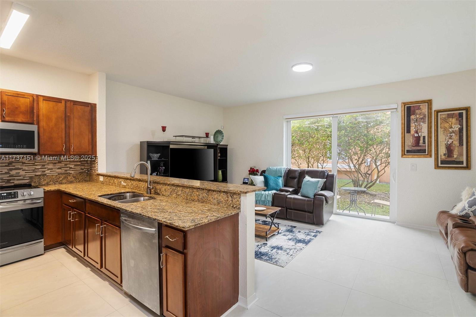 Welcome to this stunning 3-bedroom, 2.5-bathroom townhome in the heart of Miramar! Boasts modern updates throughout, including bathrooms, washer/dryer, A/C, blinds, 30inch porcelain tile floors & high ceilings. Kitchen includes updated cabinets, granite countertops, & stainless appliances. Through the kitchen you will find two pantry closets, family room, half bath, & slider to back patio. Upstairs, owner's suite with tray ceiling & walk-in closet. Down the hall, 2nd full bath, 2 guest bedrooms, & washer/dryer. Enjoy the peace of mind that comes with hurricane impact windows & hurricane rated doors. Lots of NEW goodies! Ready for you to move right in! Near the Hard Rock Stadium, Home of the Dolphins, parks & restaurants. I-75, I-95 & Florida Turnpike. You do not want to miss this one!