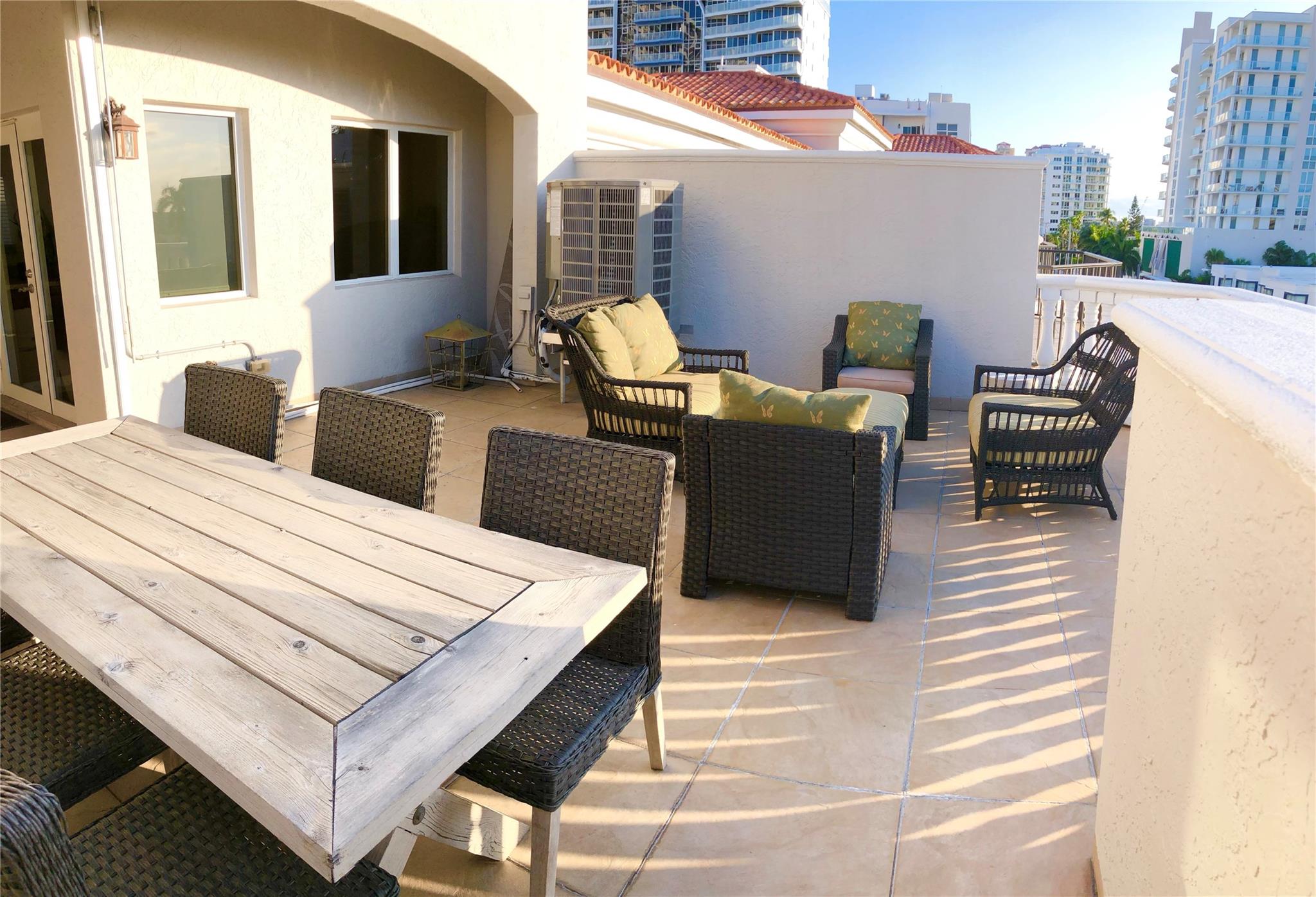 In the heart of bustling Ft. Lauderdale Beach (yet along a quieter street), this unique, rarely available townhome has several living spaces offer maximum flexibility for entertaining: an updated, open kitchen w/ a marble waterfall island, TV area, formal dining, large living room, front patio, large top floor flex space (use as third bedroom or whatever you can imagine) & a rooftop terrace great for catching amazing sunsets & starlit nights. A luxurious owners’ suite offers a walk-in closet, relaxing bath w/ dual sinks, whirlpool tub & a separate shower. Other features: 8 - 14 Ft. ceilings, impact windows & doors, newer A/C, appliances & W/H, 2 car garage, private elevator, storage room & laundry room. A small, gated community w/ fresh exterior paint & a community pool & hot tub.