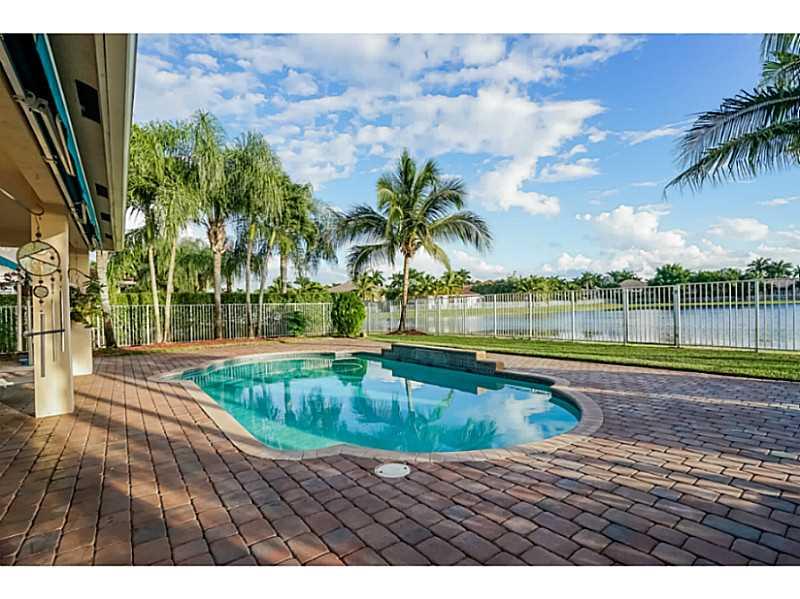 Waterfront HOME in Weston Hills. Gorgeous Nightingale Model with 7 Beds, MEDIA/OFFICE room & 5 Full baths. Automated home with CRESTON Technology. White kitchen with 42" cabinets. Tile on the 1st Floor, Hardwood on Stairs & 2nd Level. Master suite with si tting area and PRIVATE OFFICE. Versatile floor plan with 2 FULL Bed/Bath on 1st Floor.Pool overlooking long lake views 3 covered garages. Walking distance to park which has soccer, basketball and kid's playground.