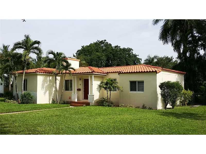 Well maintained home on Quiet Oak Tree lined Street close to Barry University. New Impact windows! Split four bedroom floor plan offers privacy. Kitchen completely remodeled with all new cabinets, granite counters and appliances. Separate laundry / pantry room conveniently located next to kitchen. Gorgeous hard wood floors just refinished. Wood burning fireplace. Paved parking in front and back. Two covered patios. Outdoor patio w/ BBQ. Security System w/ remote features. Fenced Yard,Shed, Fruit Trees