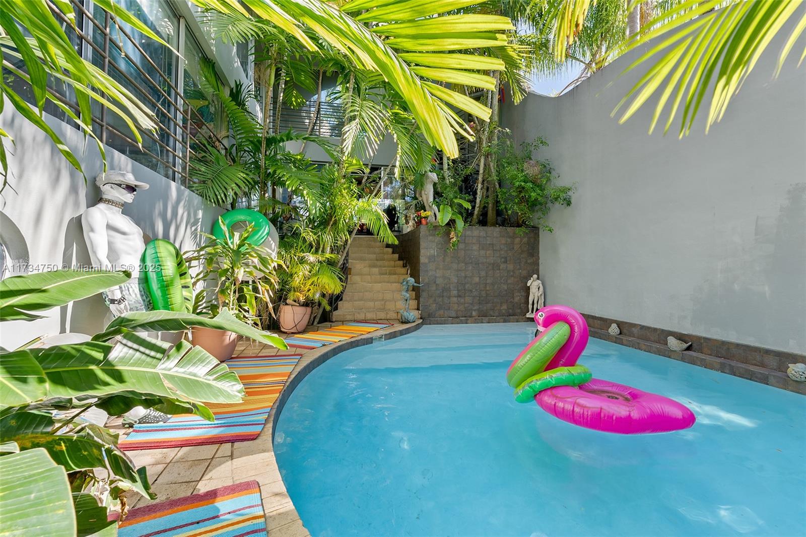 Sensational, walled & gated architectural masterpiece set within a lush botanical garden of exotic palms and native tropical greenery. Experience living in a designer published, structural work of art – aptly named “The Piano House”. Ultra-private, light-filled interior spaces offer dramatic high ceilings, floor-to-ceiling walls of glass and captivating water/pool/garden views. Major renovation including: an open European-style kitchen w/ top-of-the-line appliances, modern-style baths and beautiful flooring. Stunning, 3rd-level primary suite features expansive walk-in closet, separate sitting area/office and private terrace. Enjoy bay breezes and incredible outdoor living & entertaining on multiple shaded balconies, a unique rooftop deck and around the one-of-a-kind piano shaped pool.