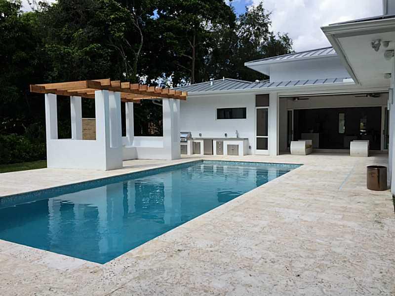 Modern luxury living at its best. Brand new 5 bed/5 bath custom green home designed around dramatic 16' ceiling great room & Porcelanosa kitchen with 15' waterfall island. Excellent layout including downstairs master suite with carrara marble bath, den or possible 6th bed, covered terrace w/ motorized mosquito screen, beautiful pool, summer kitchen & 3-car garage. Visser custom built closets & Sonos music system throughout. Lush 28,314 sq ft lot. Only one of two LEED certified homes in Pinecrest.
