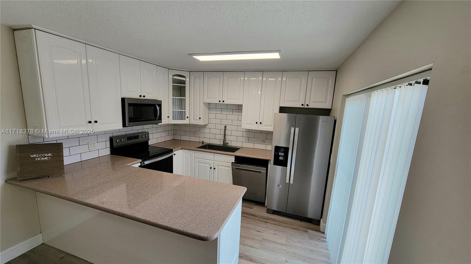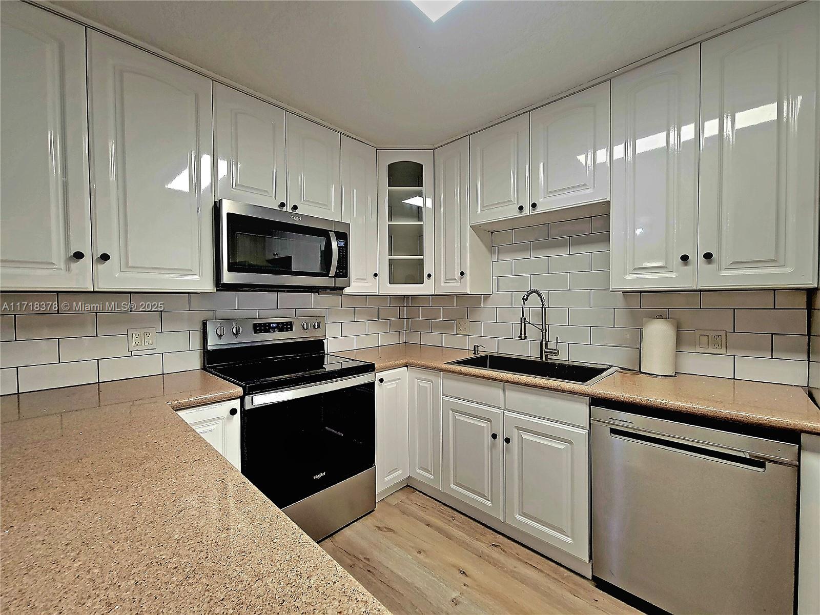 Nicely updated in Rock Creek 2 bed 2.5 bath home featuring a very spacious, light & bright floor plan w/extra room can be used as office/den/room, updated flooring throughout home with plenty of space. Kitchen has been updated as well as newer appliances. Home has 2 large bedrooms each w/private balconies & bathrooms, accordion hurricane shutters for protection and insurance, large private fenced courtyard perfect for entertaining. Located across from Camelot Gardens private community pool, which has extra guests parking. Well maintained community of Rock Creek offering many amenities: jogging/walking path, pools, pristine lakes, exercise room, tennis courts, kids play area, clubhouse & more! One of the most sought-after communities that has it all & close to everything with good schools!