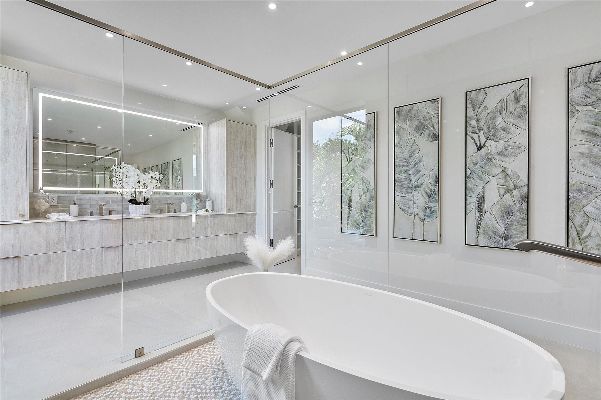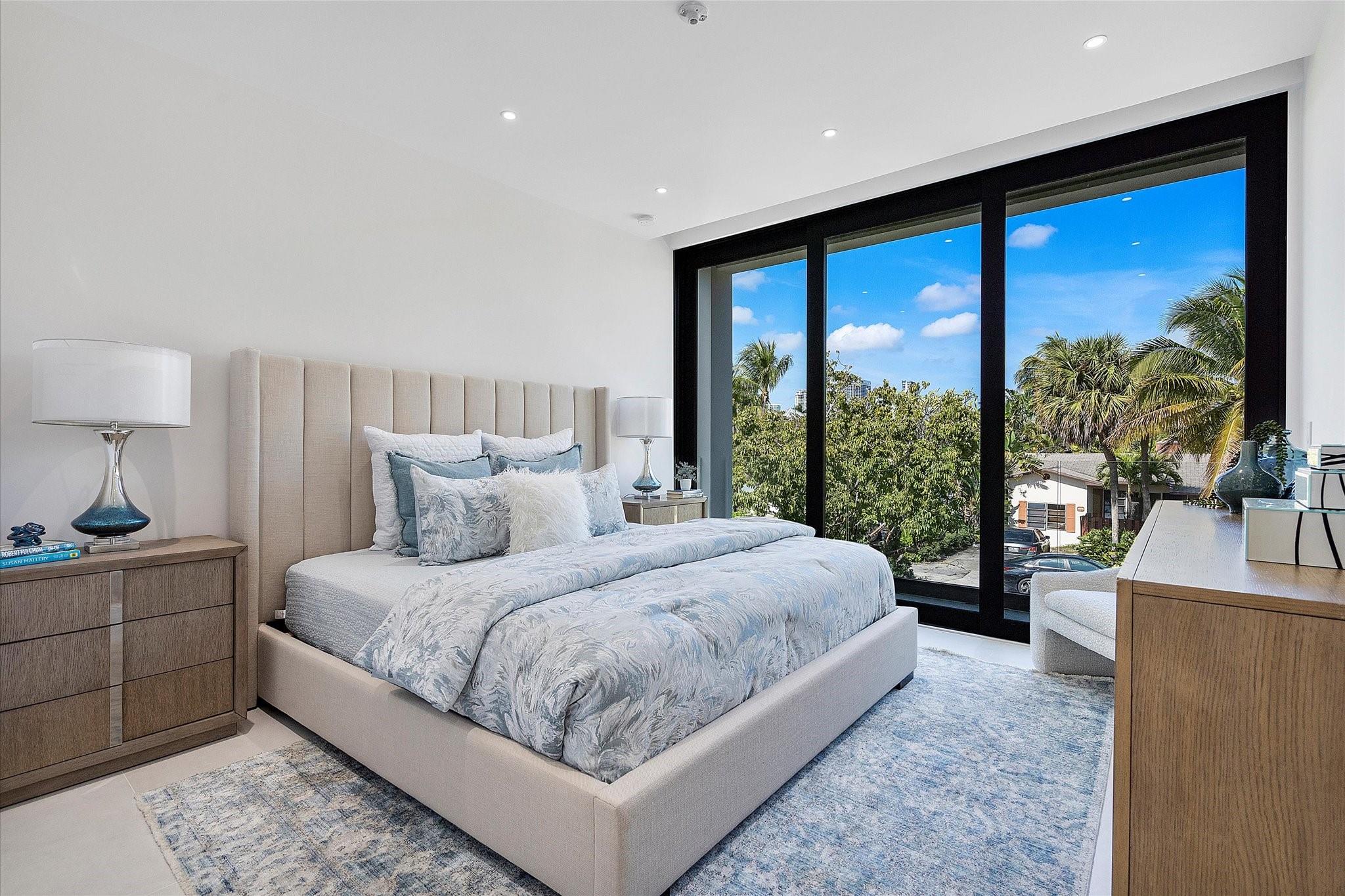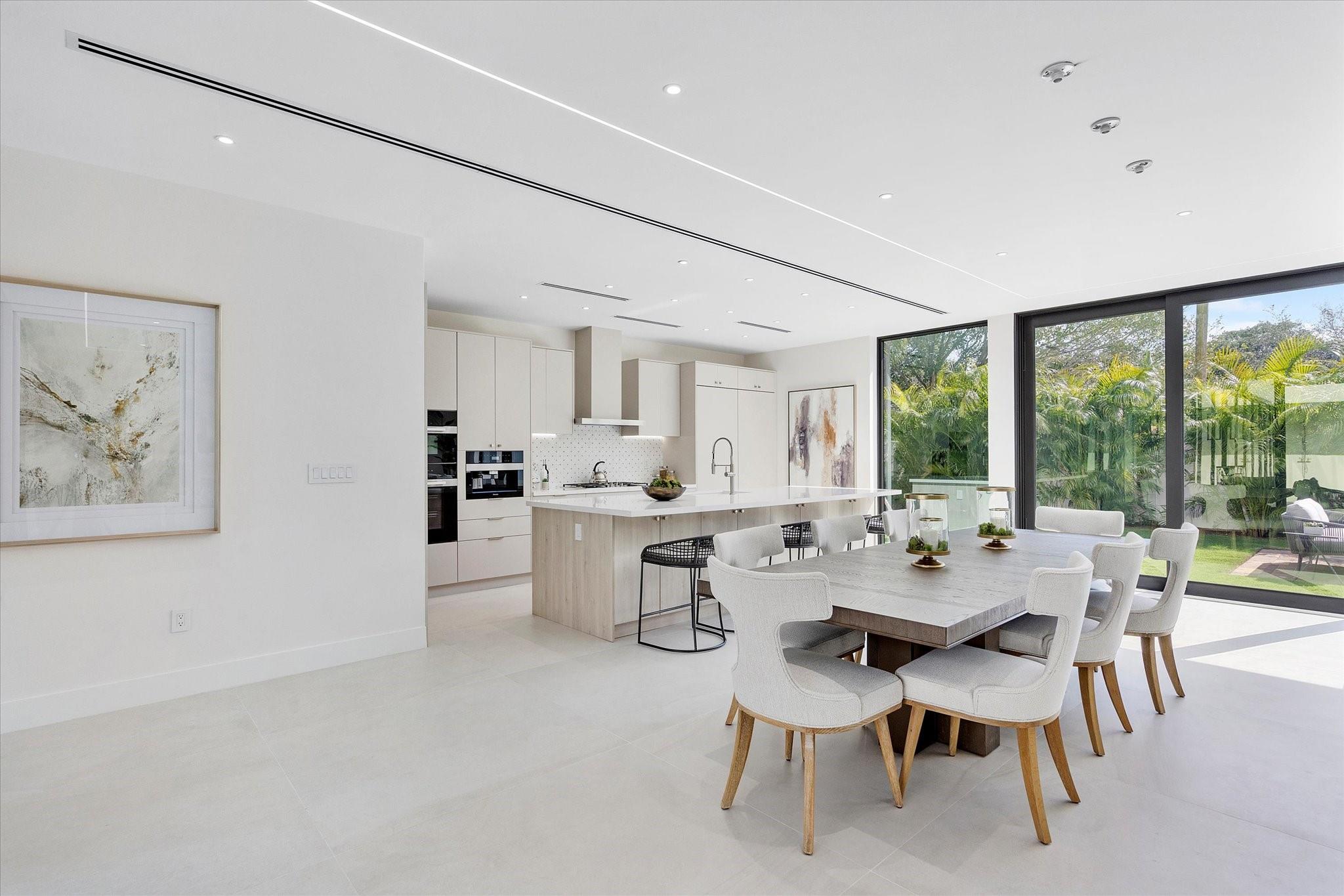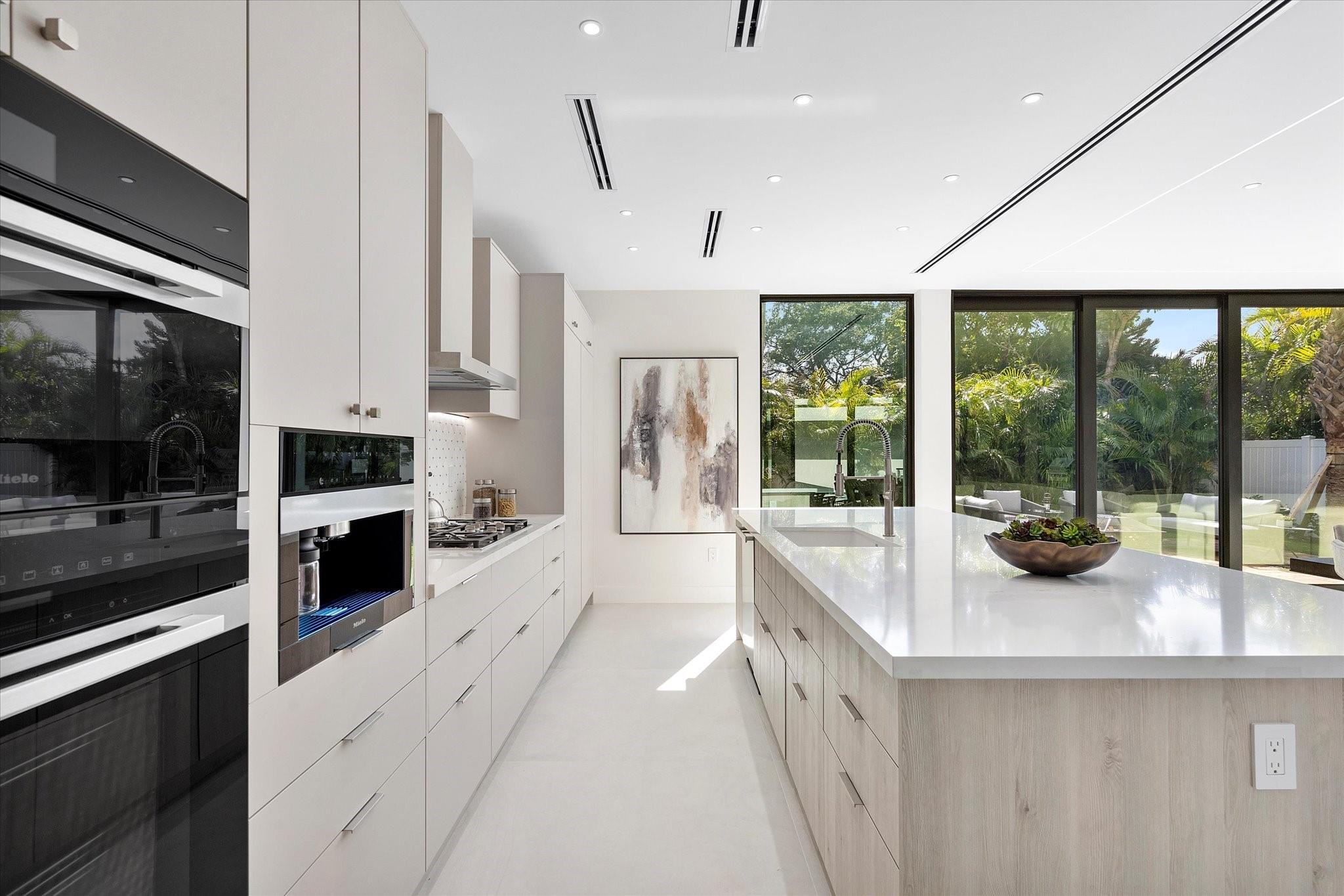 New construction architectural masterpiece in Rio Vista, Fort Lauderdale, where modern design meets luxury living. This 4,700 SF home showcases an innovative layout with a central pool as its focal point, surrounded by vast glass walls that blend indoor and outdoor spaces. The open floor plan is highlighted by a gourmet kitchen with high-end appliances and full smart home features including a built-in speaker system. Five bedrooms and five bathrooms provide ample space for family and guests. Unique elements include an accent wall along the atrium below the floating custom walnut staircase. Built with a solid concrete roof, this home offers exceptional durability and style. The expansive backyard is perfect for Florida's outdoor lifestyle. Just minutes from the beach and the vibrant LasOlas