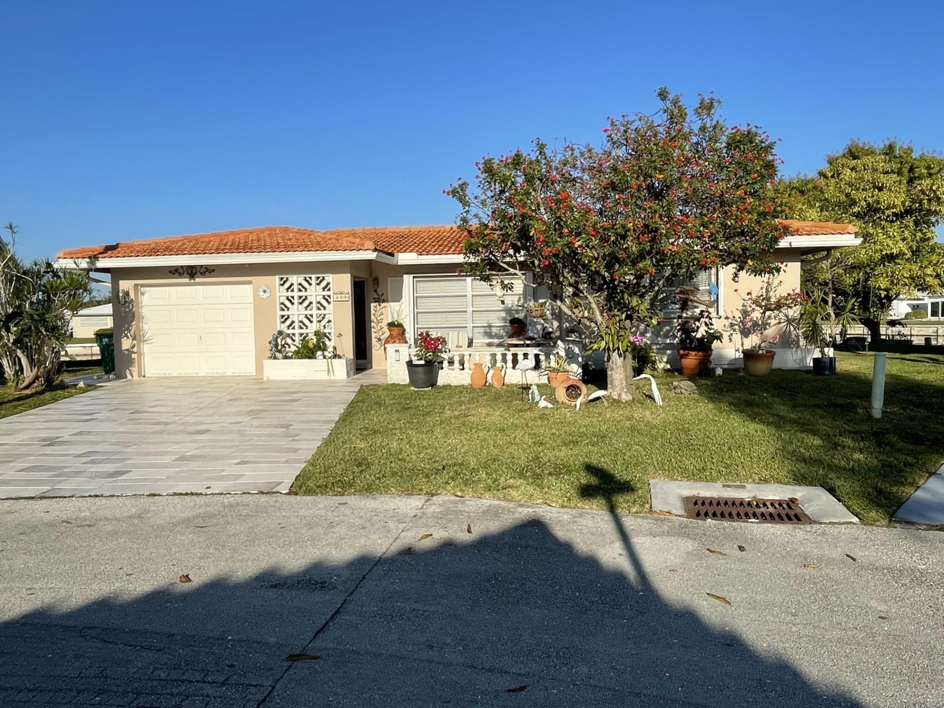 Stunning waterfront home in Mainlands of Tamarac. Experience the perfect blend of elegance and comfort in the beautifully updated waterfront home. Step into a spacious living room, followed by a separate dining area and a modern kitchen featuring granite countertops, stainless steel appliances and a cozy breakfast nook. The large master suite boasts a remodeled bathroom and the generous second bedroom also includes an updated bathroom. Enjoy breathtaking water views from the Florida room and backyard, perfect for relaxing or entertaining. Additional highlights are separate laundry room with a washing tub, oversized lot with fruit trees, hot tub and a shed, new roof (2019), newer a/c and water heater. Low HOA fee in a 55+ community. Fishing allowed. A true must see! Schedule showing today.