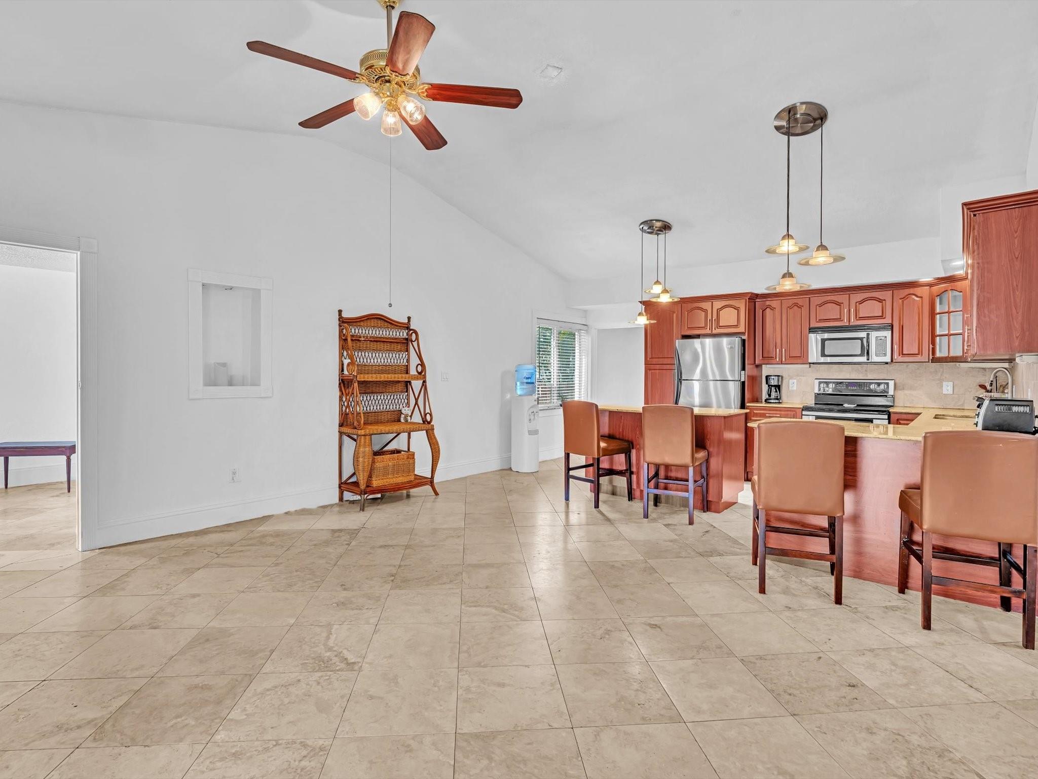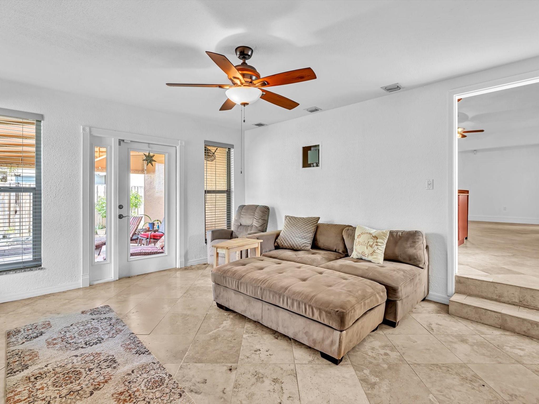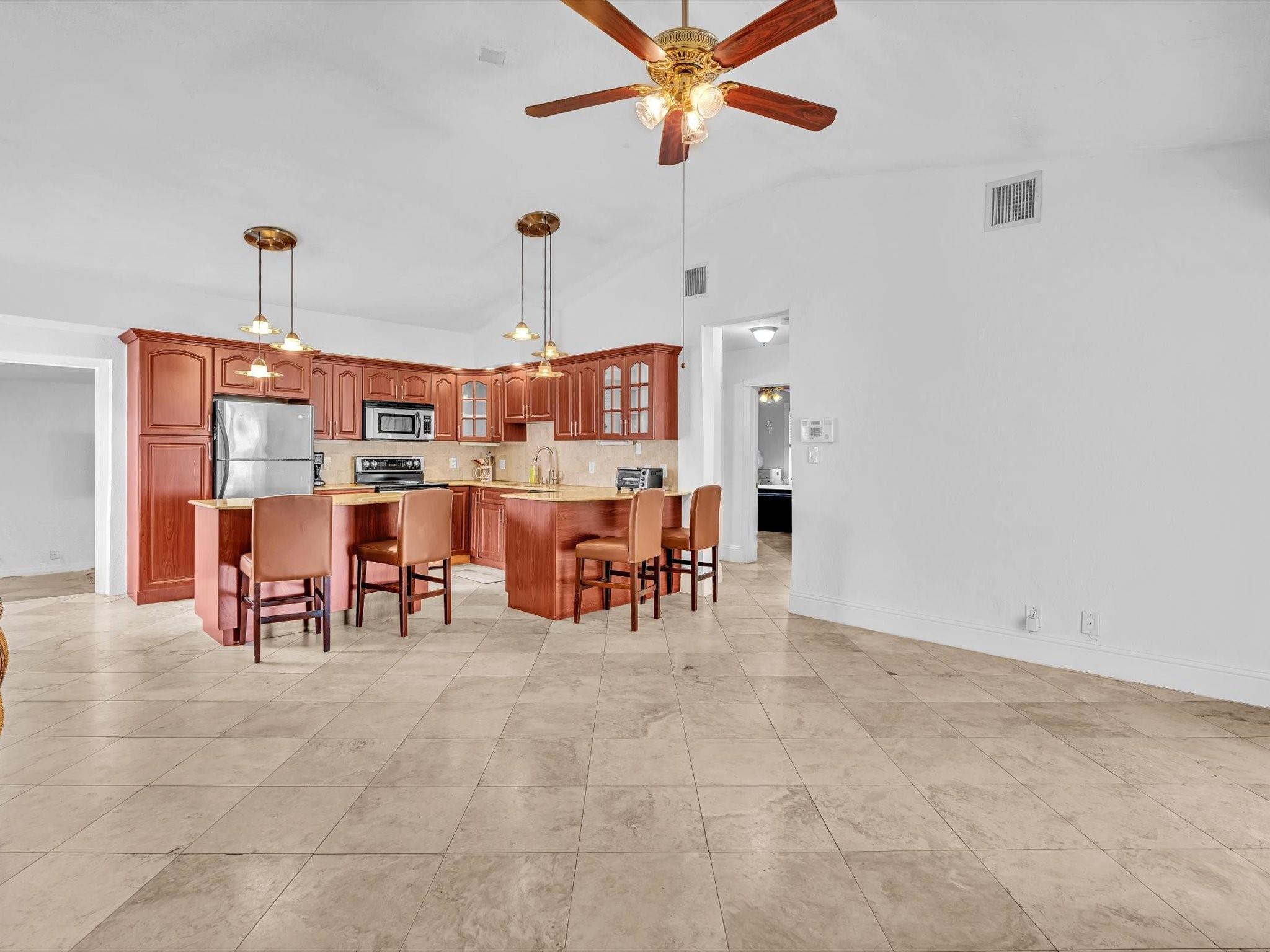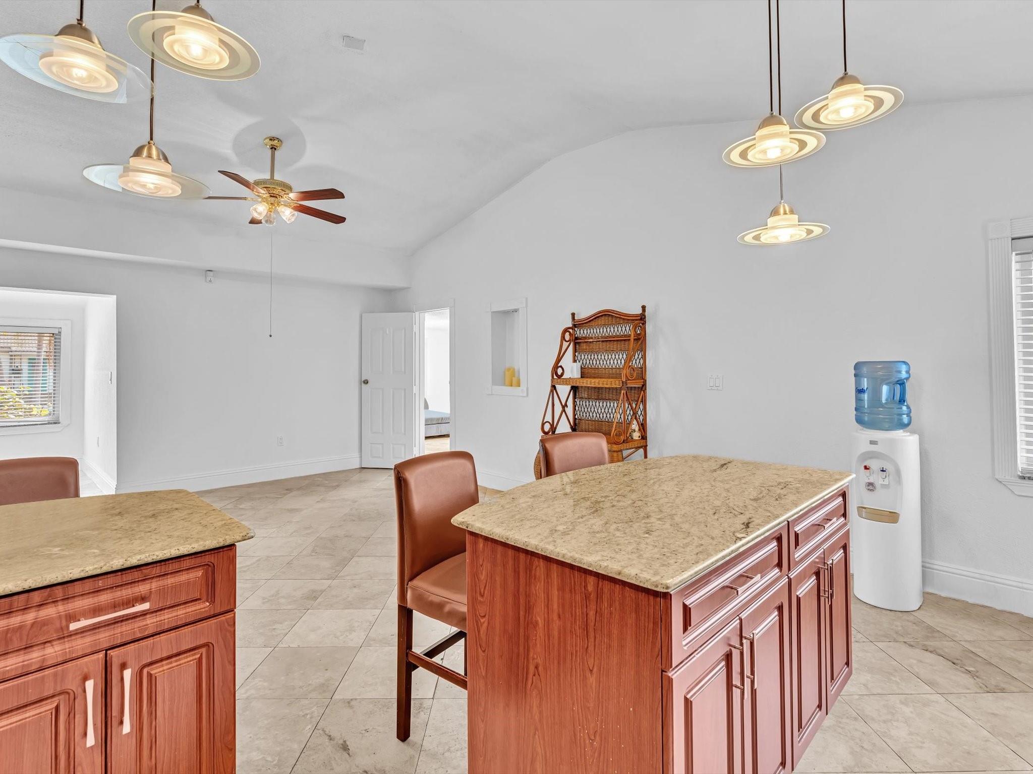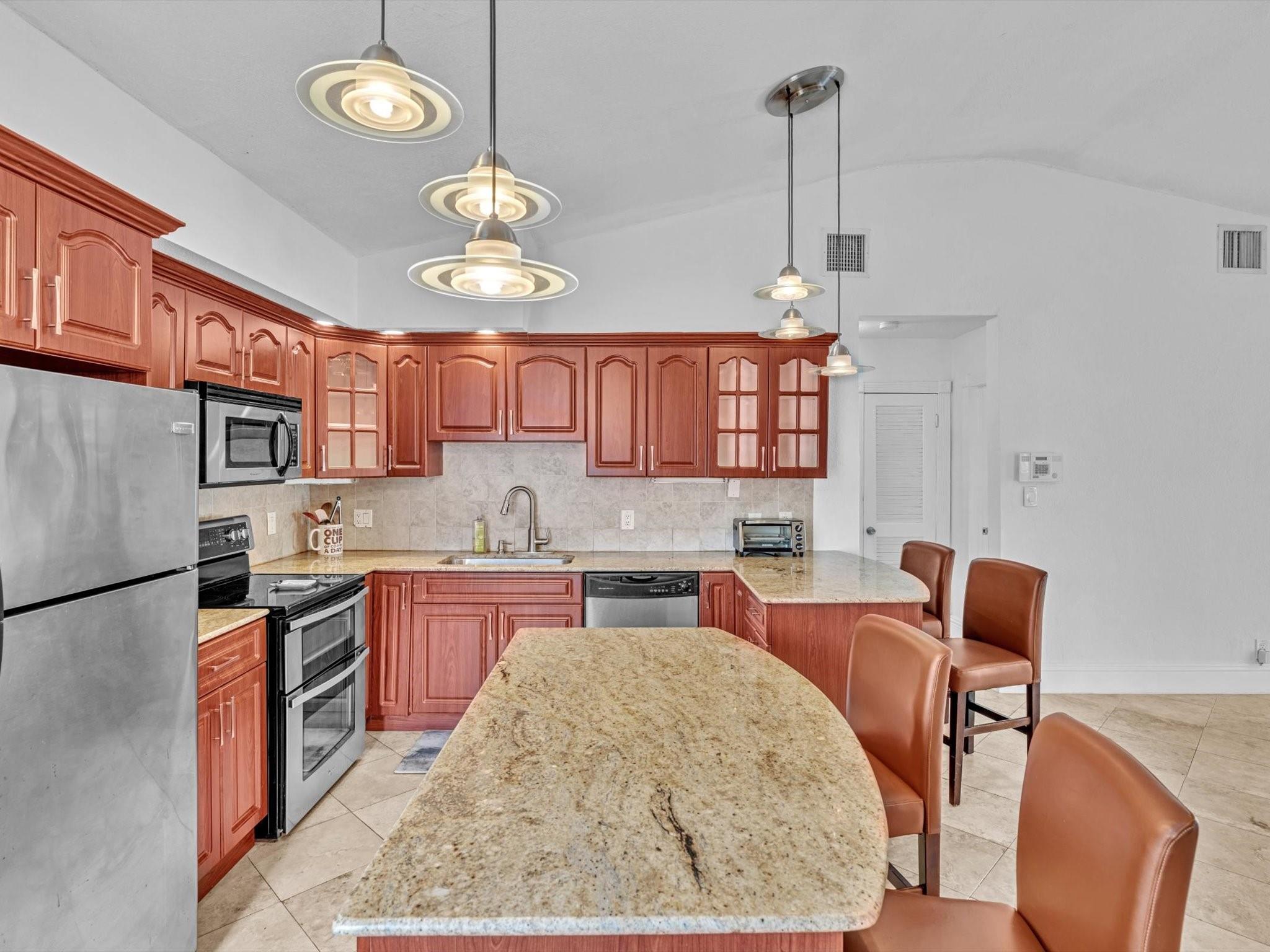 Just 2 miles from the beach, this meticulously maintained 3 bed/2 bath home offers amazing curb appeal in Hollywood East! Featuring a brand-new tiled roof, solar panels, hurricane windows & doors, & freshly painted exterior/2020 & interior/2022, blending style & sustainability. Bedroom en suite includes washer/dryer! Upgraded kitchen has two large islands/stainless steel appliances/granite countertops & provides ample prep space. The family room is flexible for use as an office/den/guest room/home theater. Enjoy travertine tiles, an encapsulated crawl space with dehumidifier, & new A/C with UV protection. With a rewilded fully landscaped yard, fencing for privacy & security, room for a pool, covered patio, & outdoor bolted shed, this home has been meticulously maintained, & is a must see!