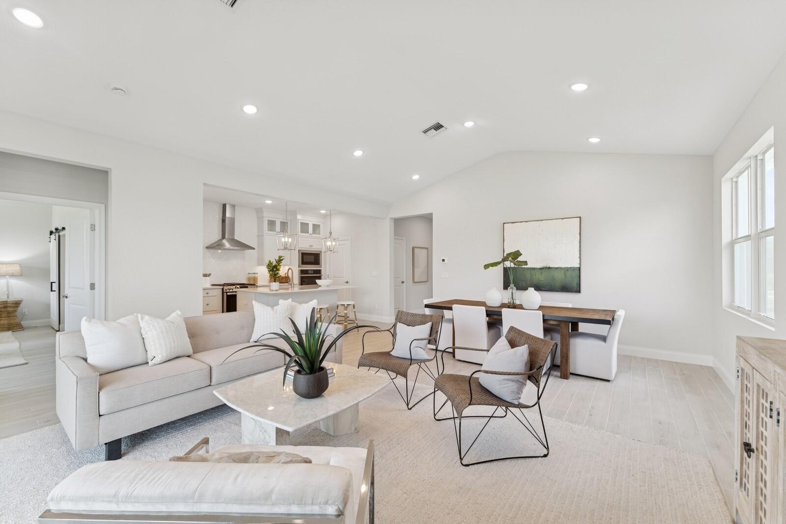 This home is a thoughtfully designed single-story home featuring 3 bedrooms, 2 bathrooms, and a 2-car garage. The kitchen showcases the Classic Look with stacked upper cabinets, large center island, pendant lights and a walk in pantry. The great room and dining area are open concept, perfect for entertaining. The elegant primary suite includes a frameless shower enclosure and a walk-in closet. This home seamlessly blends elegance with functionality.