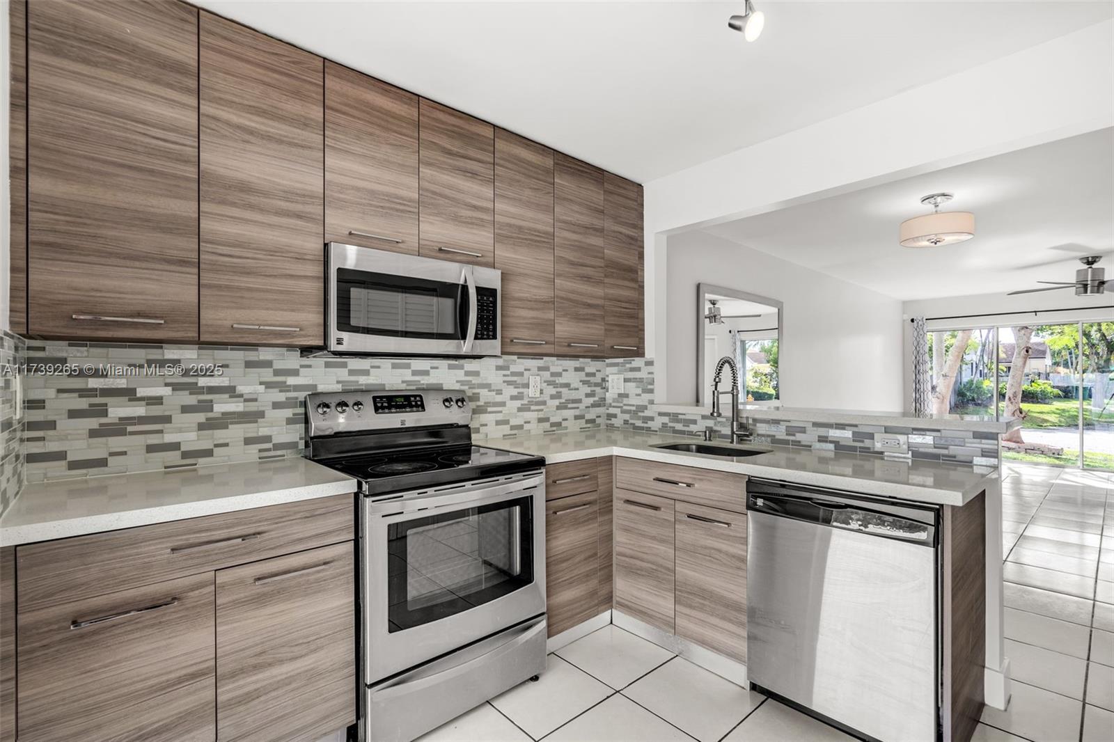 This charming 2-bedroom, 2-bathroom home is located in a peaceful cul-de-sac with minimal traffic, offering a serene and private living experience. The property boasts a spacious yard and side yard for additional parking. It features a recently renovated kitchen and bathrooms, with an AC unit and fence both about 2 years old, and hurricane shutters for added comfort and protection. The home is situated in a well-maintained community with a low monthly association fee of only $74. Thoughtfully cared for, this home is perfect for anyone looking for a comfortable and secure place to live. Conveniently located next to the Turnpike, Old Cutler, and US1, it offers easy access to major roads while maintaining a peaceful, quiet atmosphere.