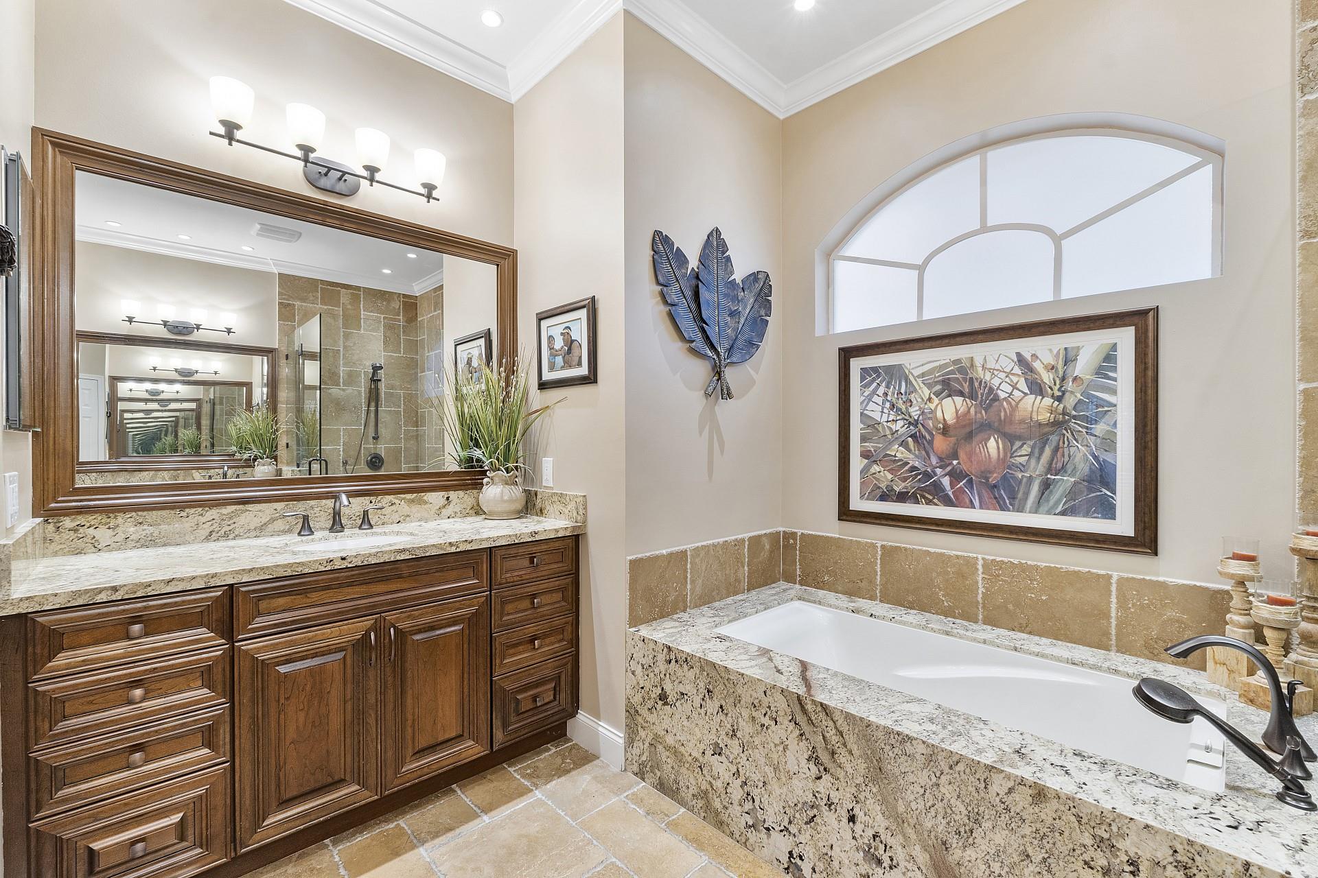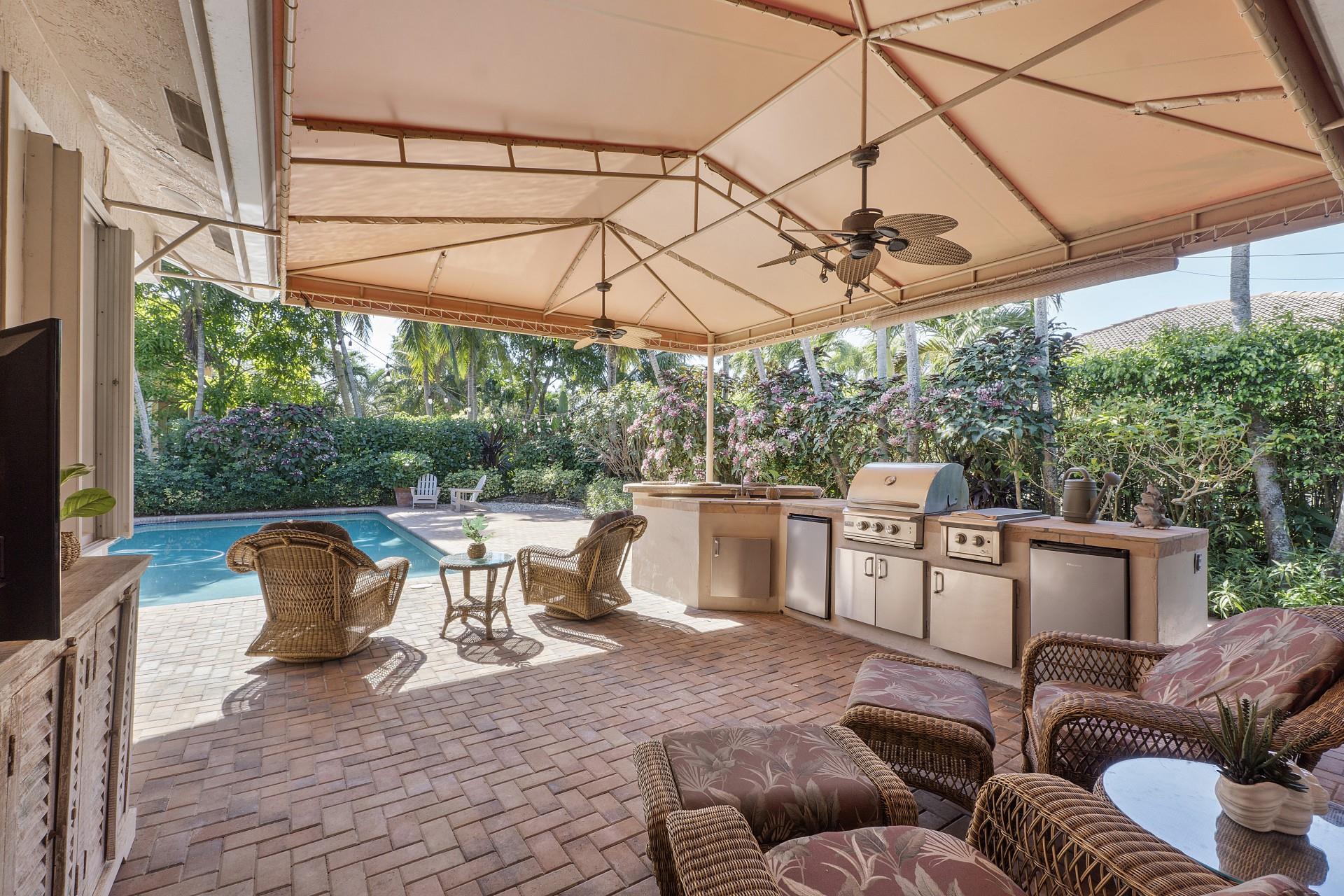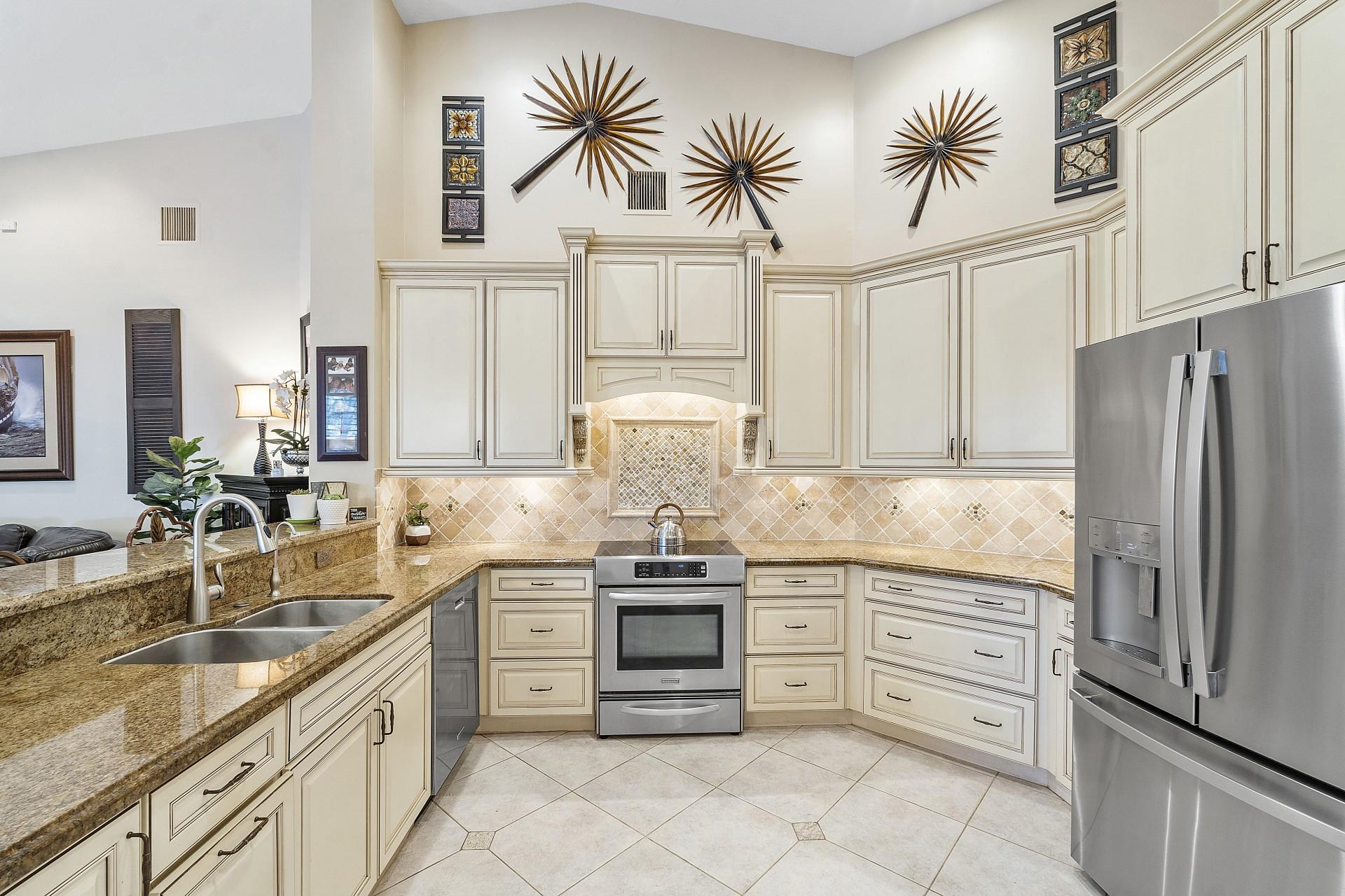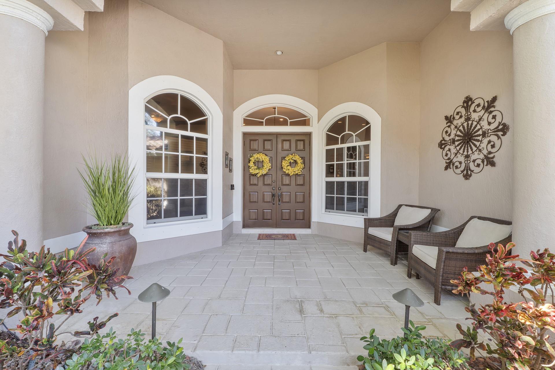 GORGEOUS Indoors & Outdoors-WELCOMING! This 5/3 home, on Quiet Cul-De-Sac - SURROUNDED by PRIVATE Lush LANDSCAPE w/Lighting/Pathways/ Fenced/Fully covered, Custom Outdoor Kitchen/Bar Seats/Cafe Lights/ Multiple Lounge spaces. Indoor Vaulted Ceilings/Plantation Shutters; Open Concept Granite Kitchen/Den/Breakfast Nook = Relaxed Entertainment! Indoor Built-In Features: Multi-Custom Solid Wood Display/Storage; Office-Library w/Multi Screen space. 6th ROOM ADDITION-Den/Movie/Surround Sound w/ 20ft. U-Shaped, Leather Reclining Sect.; Master Bed.-Dual Closet/ Spacious Dual Master Bath/Water Closet. ADDED VALUE: 3 Car Garage/Gym Mirrors/Mini-Split; Salt Pool/Solar Heat/Tot Fence; Accord. Shutters/Port. Gen./Home Sec. & Cameras; Sonos Sound Sys.; Roof(2017); Main A/C(2023); Water Heater(2024).